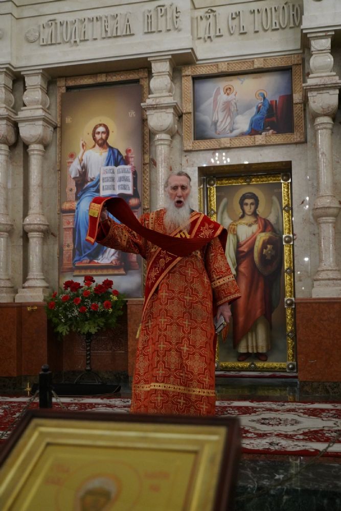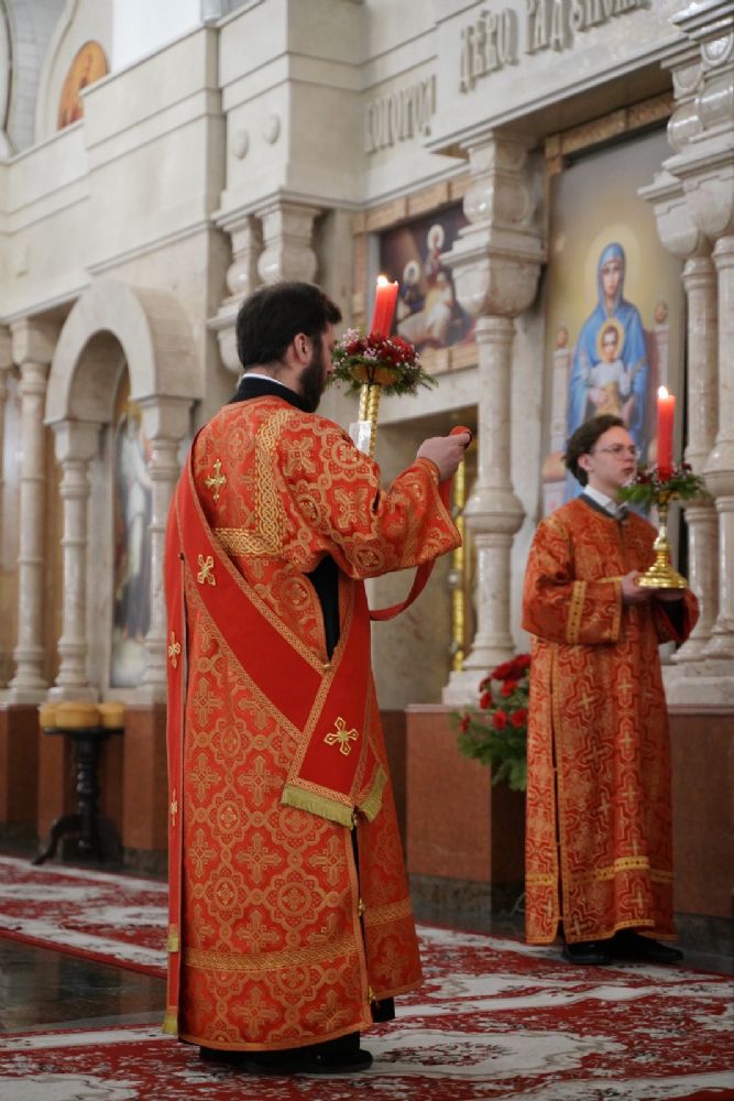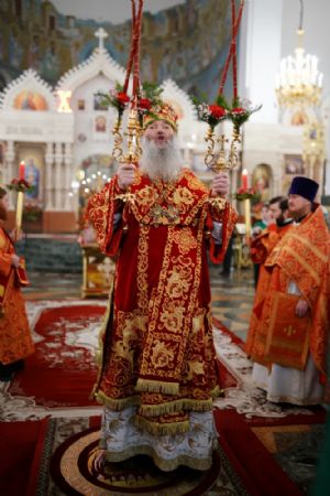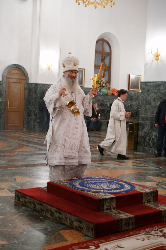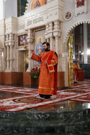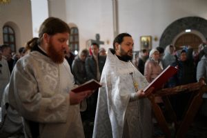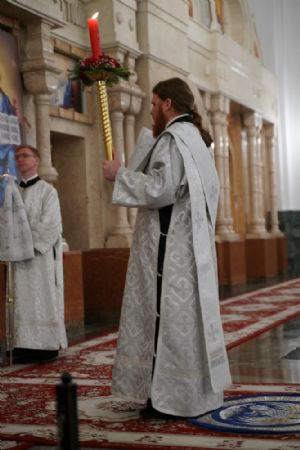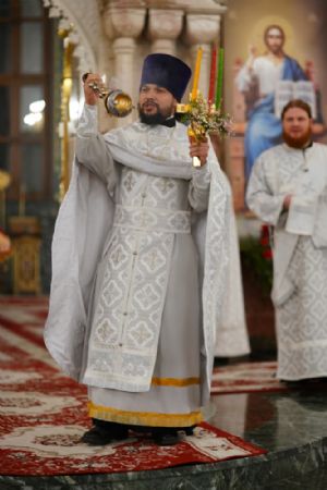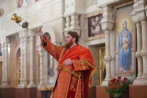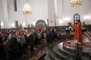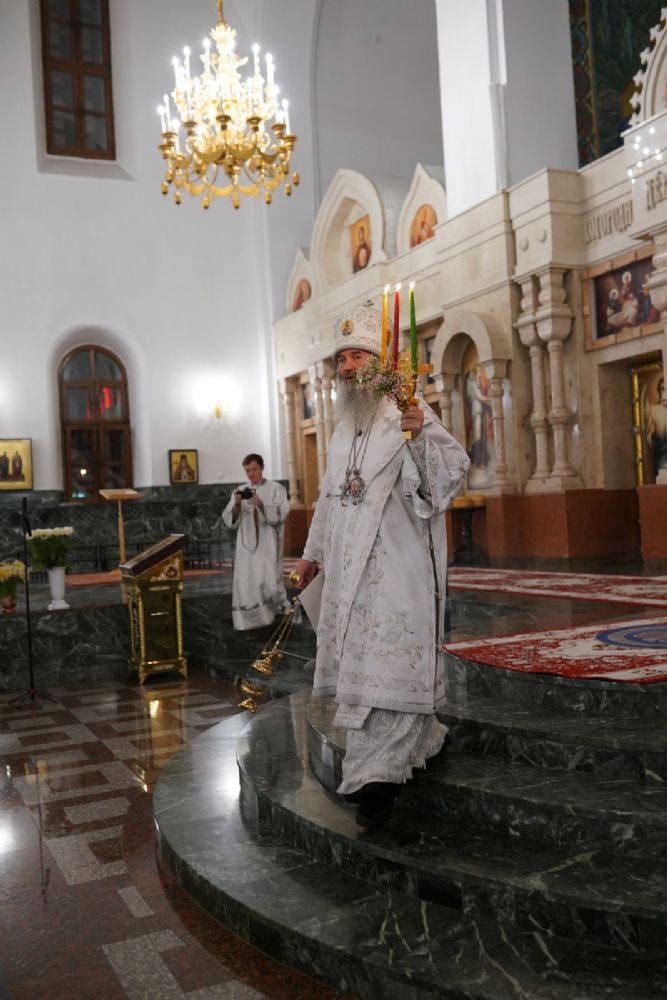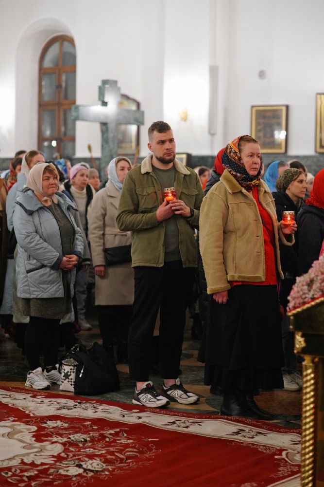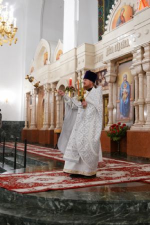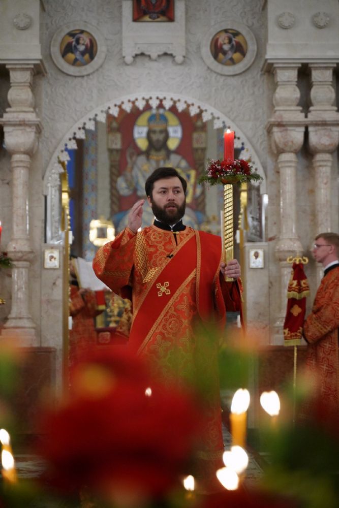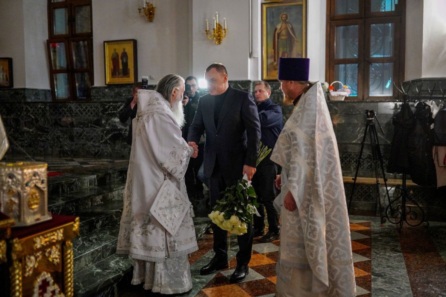 Владыке сослужили ключарь собора протоиерей Сергий Поглазов, клирики собора и протодиакон Михаил Козловский. Богослужебные песнопения исполняли старший и младший составы детско-юношеского хора «Благовест» под управлением регентов Татьяны Черновой и Надежды Поздеевой. Часть песнопений звучала в исполнении хора священно- и церковнослужителей под управлением иерея Евгения Самойлова.