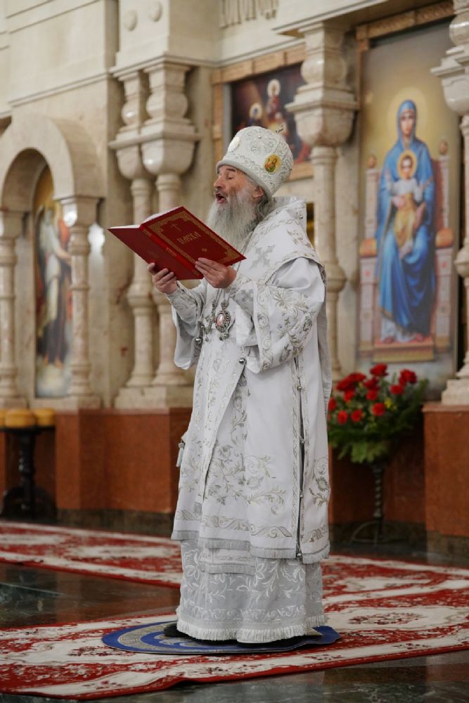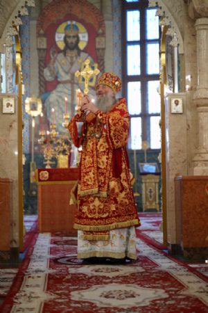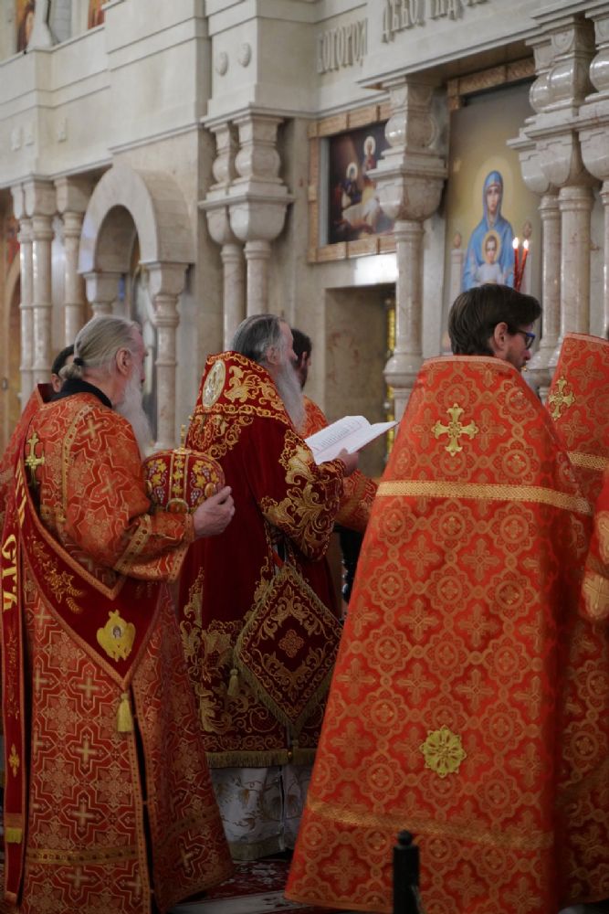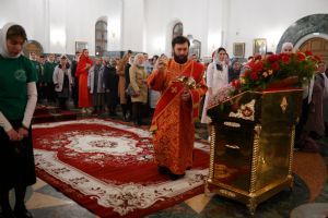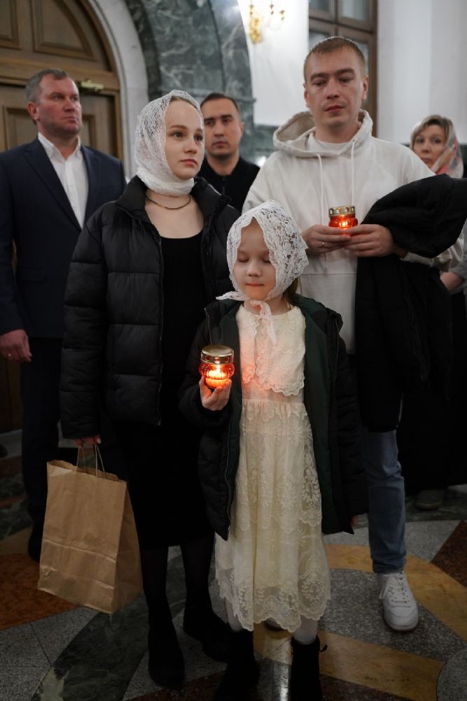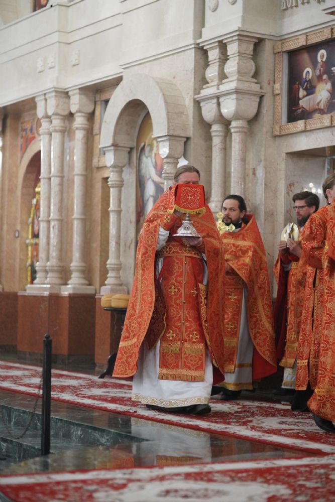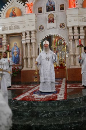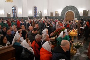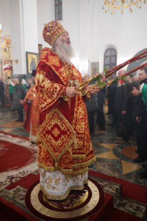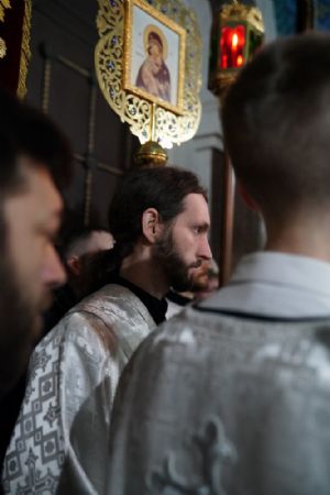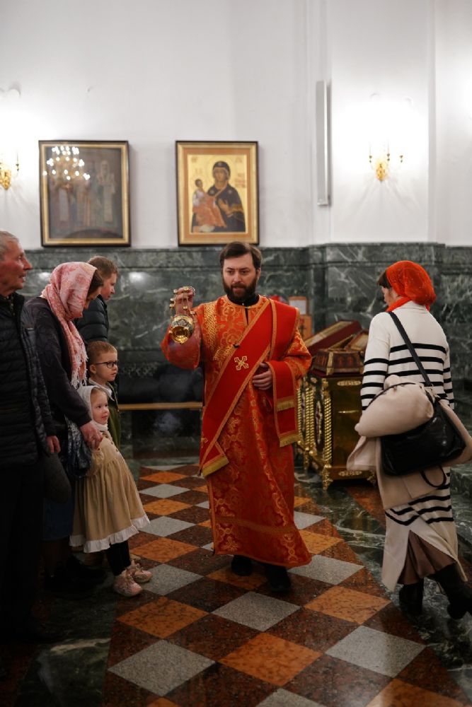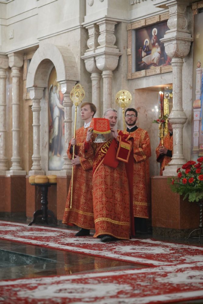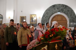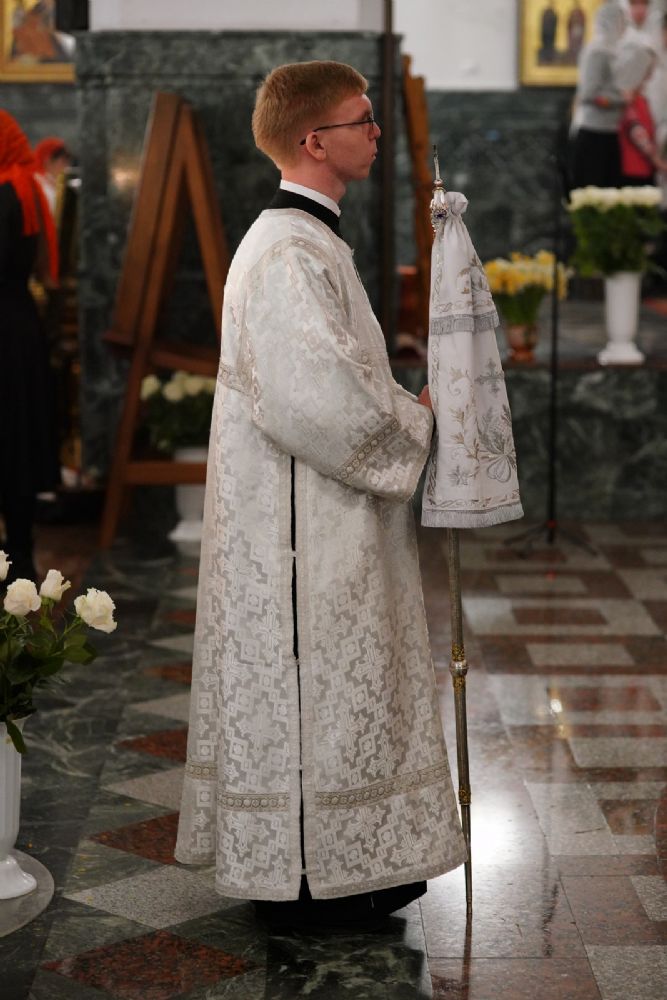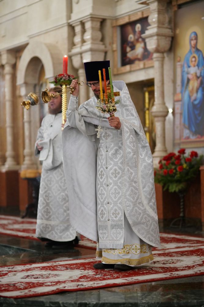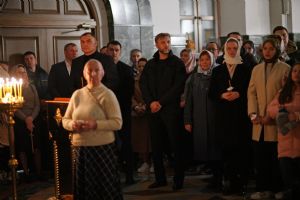Владыке сослужили ключарь собора протоиерей Сергий Поглазов, клирики собора и протодиакон Михаил Козловский. Богослужебные песнопения исполняли старший и младший составы детско-юношеского хора «Благовест» под управлением регентов Татьяны Черновой и Надежды Поздеевой. Часть песнопений звучала в исполнении хора священно- и церковнослужителей под управлением иерея Евгения Самойлова.