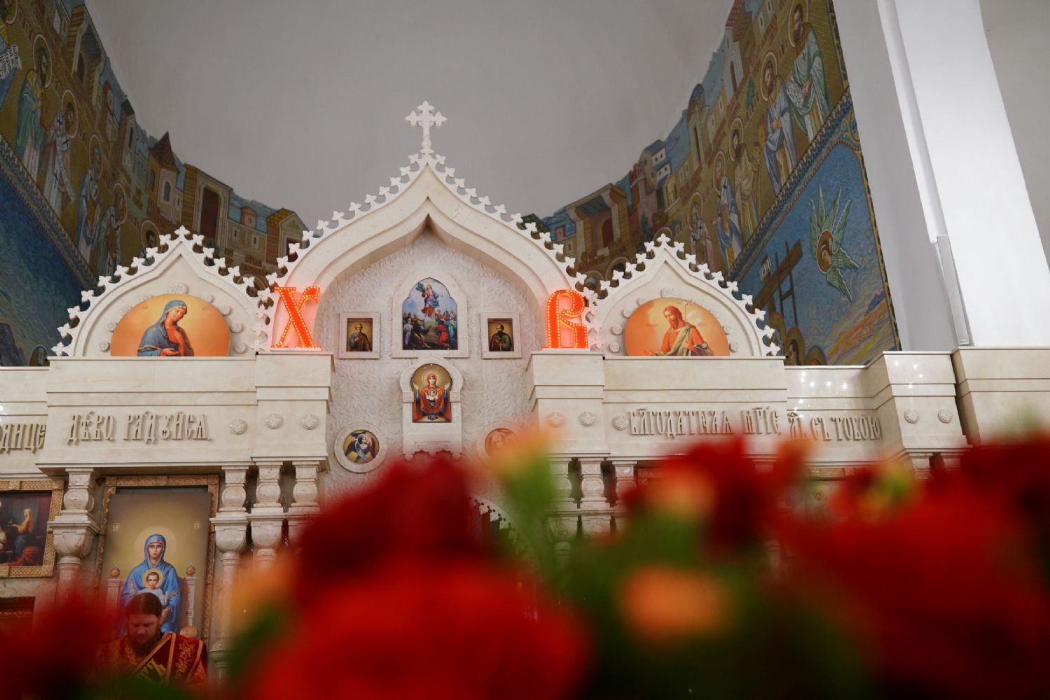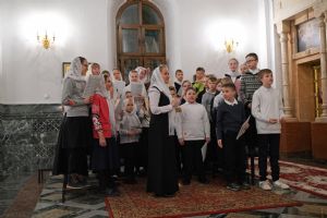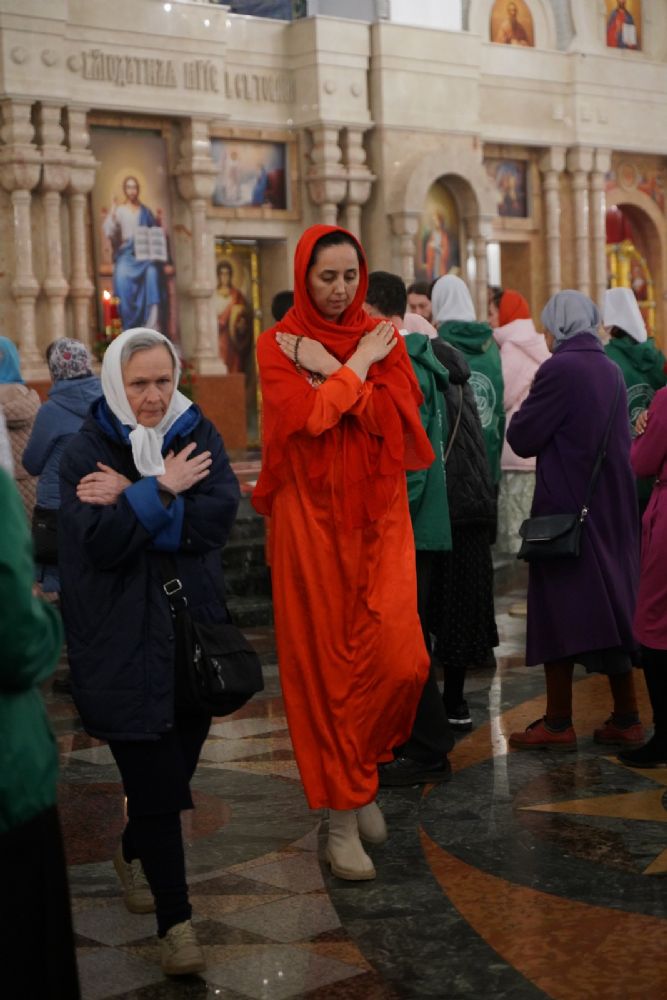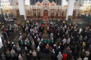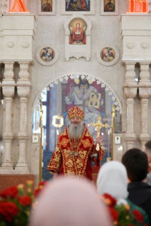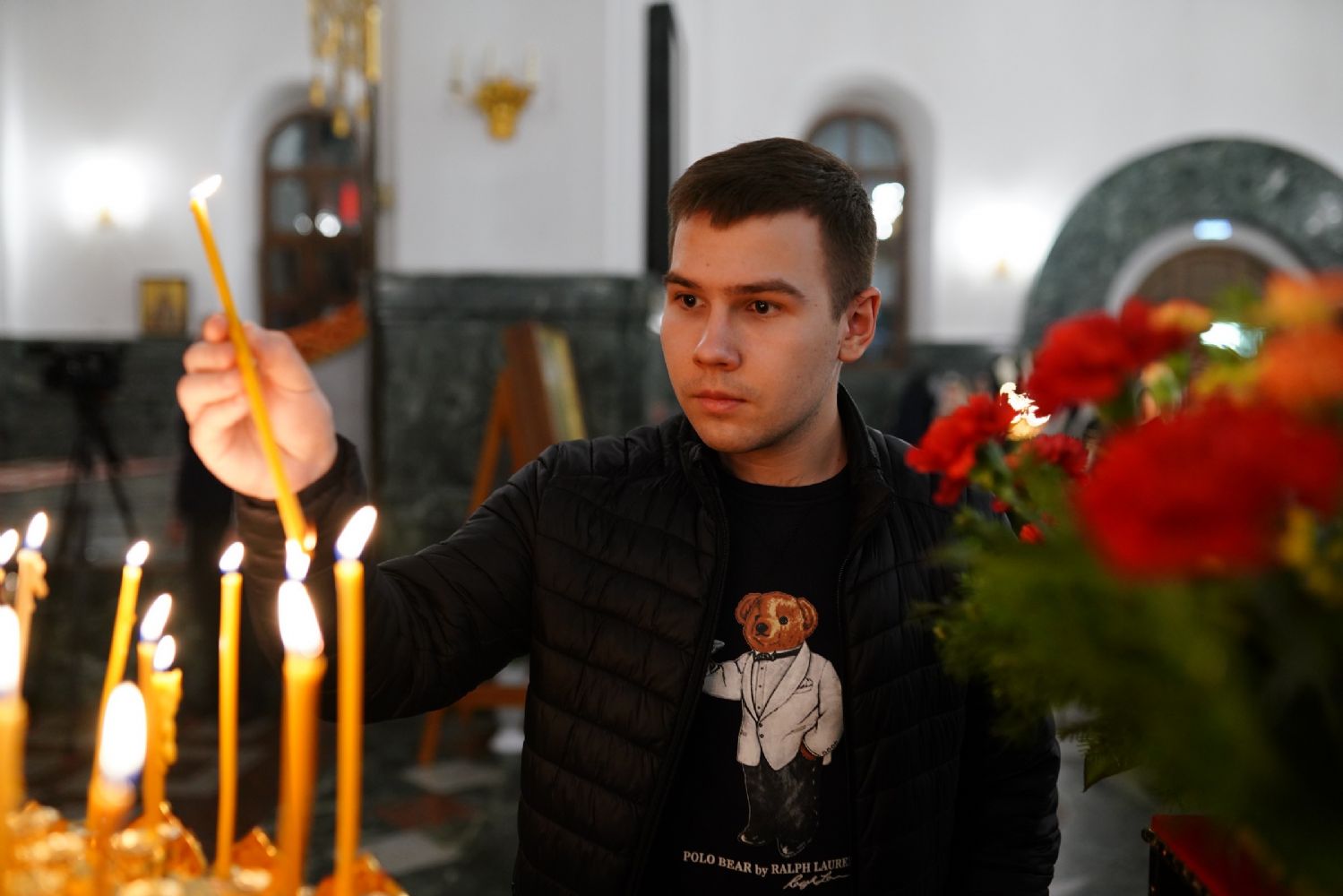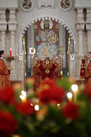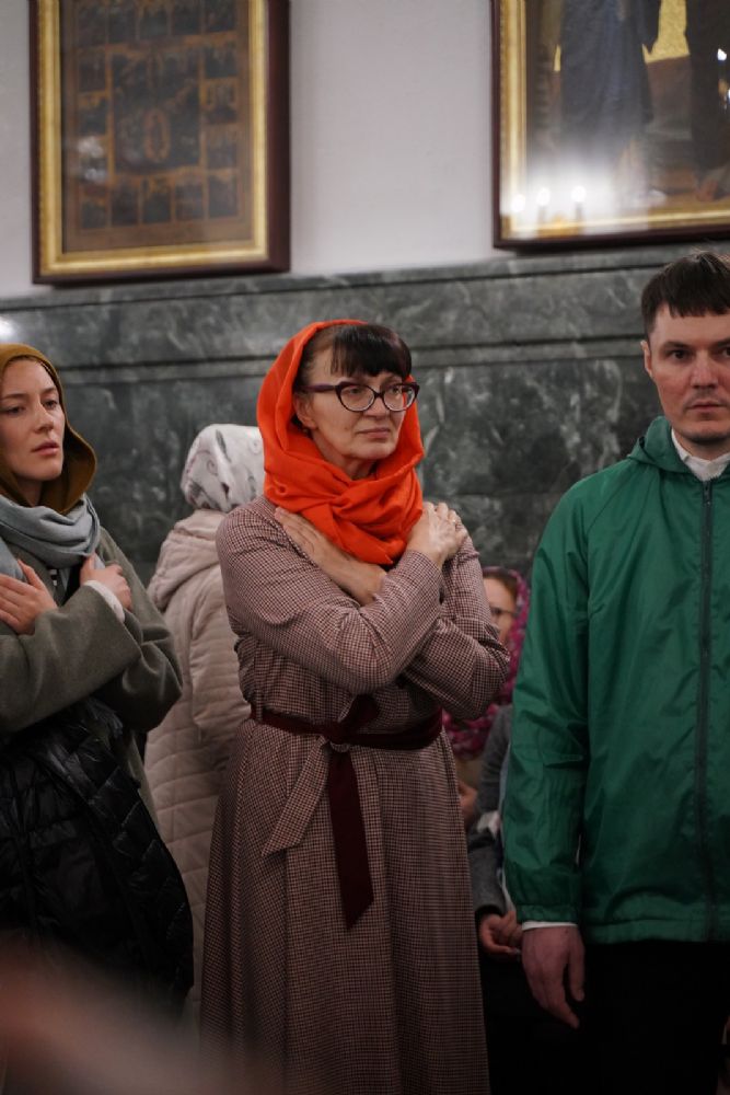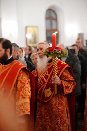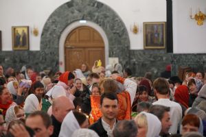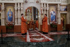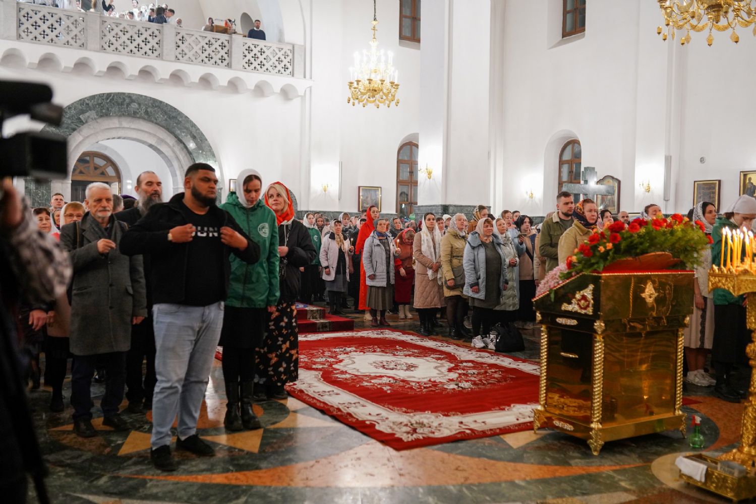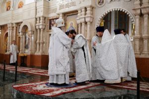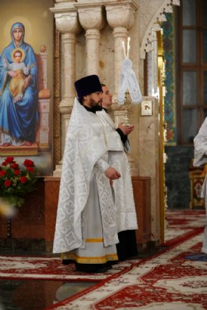 Владыке сослужили ключарь собора протоиерей Сергий Поглазов, клирики собора и протодиакон Михаил Козловский. Богослужебные песнопения исполняли старший и младший составы детско-юношеского хора «Благовест» под управлением регентов Татьяны Черновой и Надежды Поздеевой. Часть песнопений звучала в исполнении хора священно- и церковнослужителей под управлением иерея Евгения Самойлова.