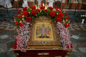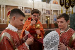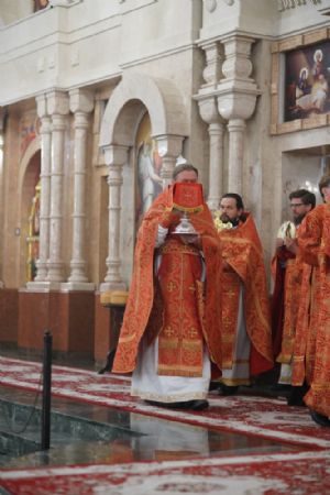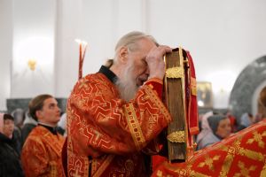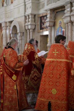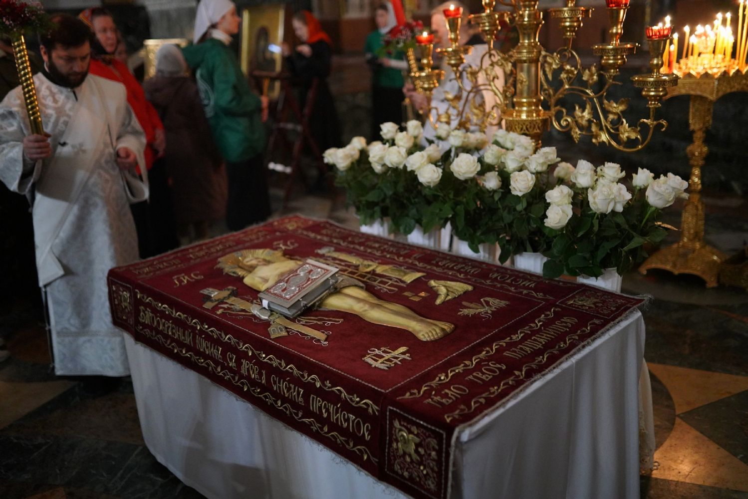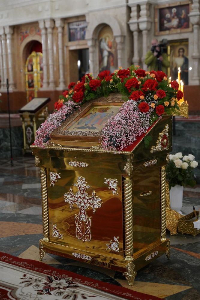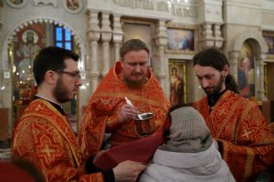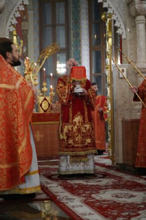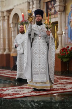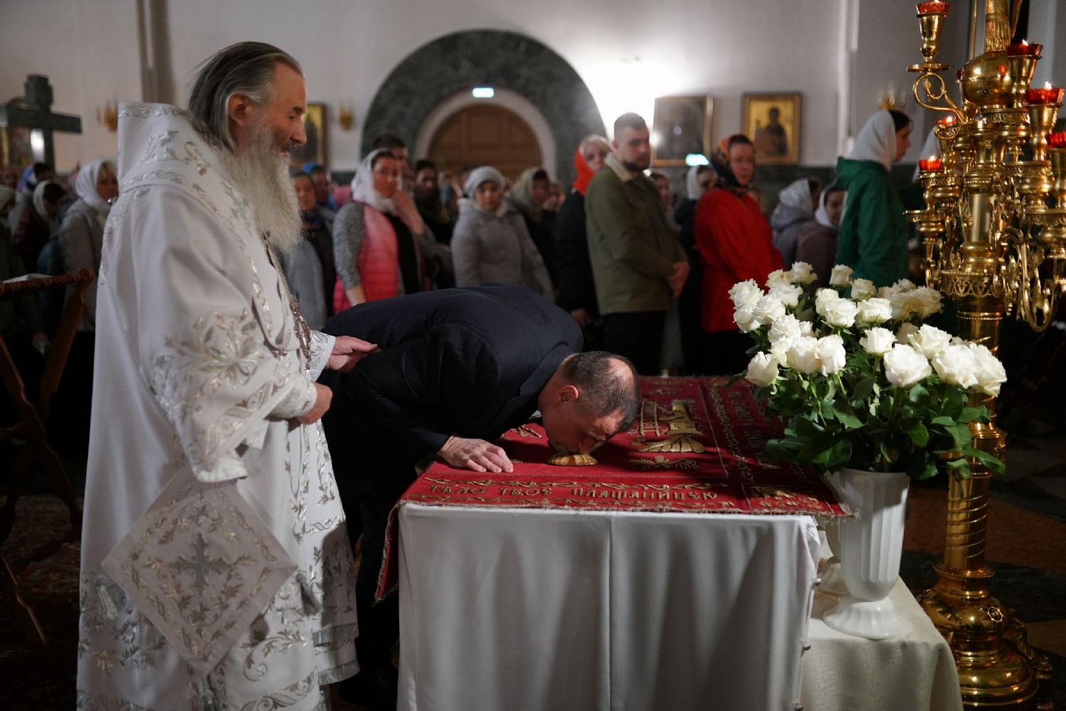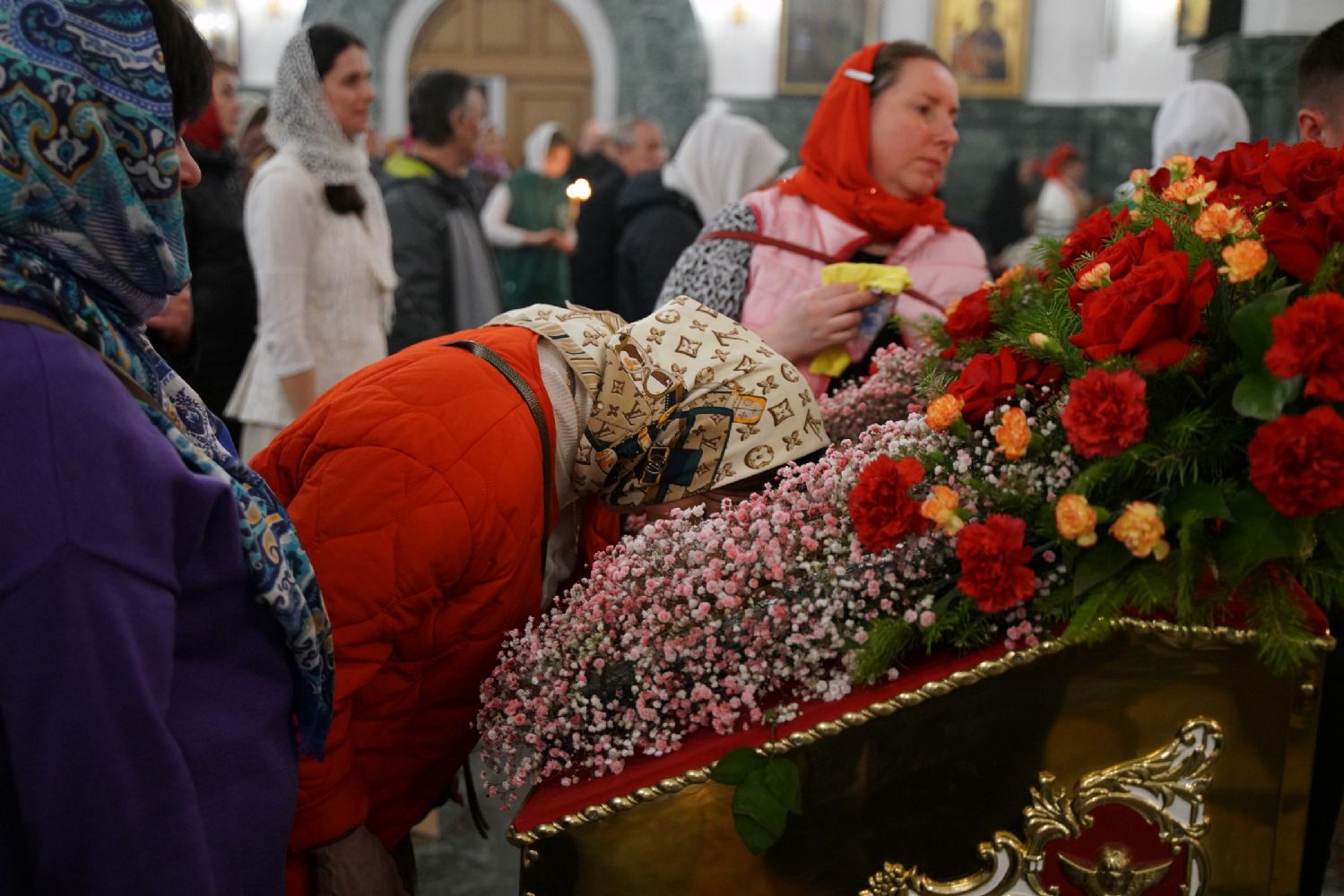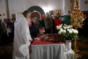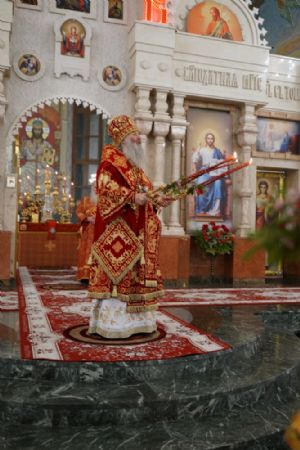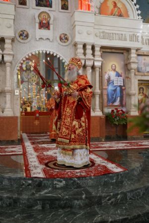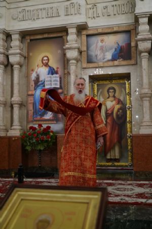 Владыке сослужили ключарь собора протоиерей Сергий Поглазов, клирики собора и протодиакон Михаил Козловский. Богослужебные песнопения исполняли старший и младший составы детско-юношеского хора «Благовест» под управлением регентов Татьяны Черновой и Надежды Поздеевой. Часть песнопений звучала в исполнении хора священно- и церковнослужителей под управлением иерея Евгения Самойлова.