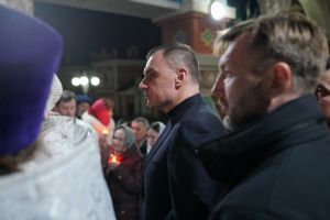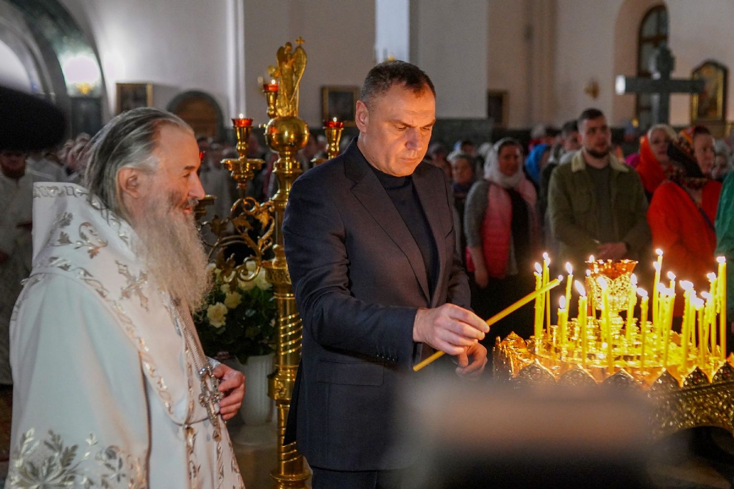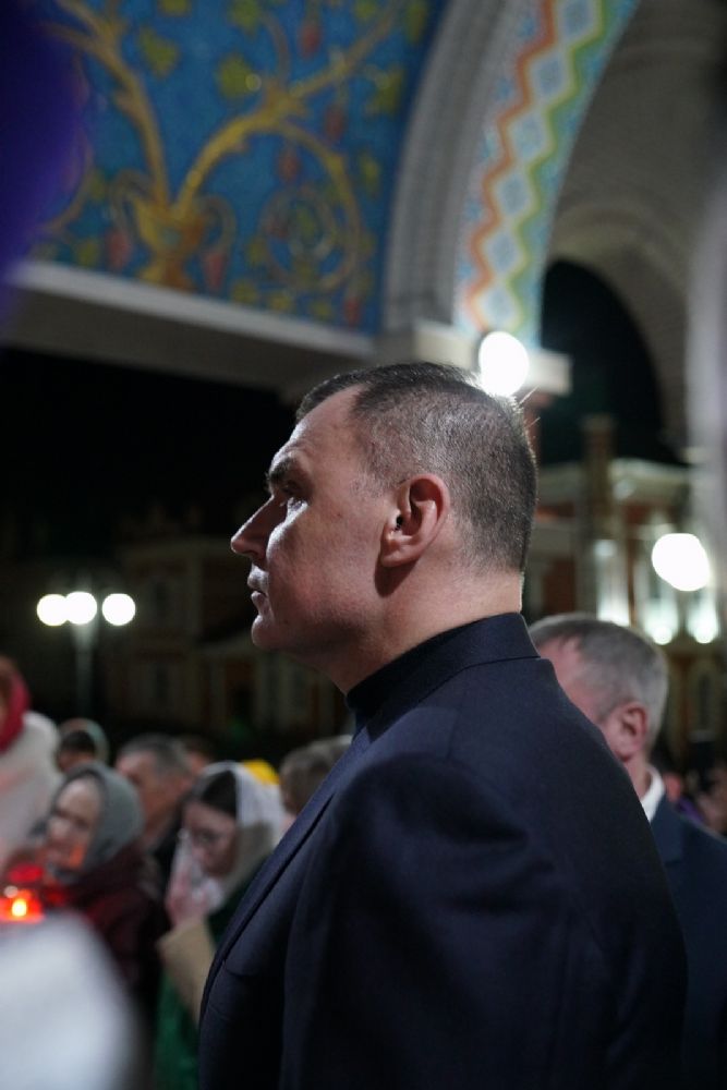 За пасхальным богослужением молился Глава Республики Марий Эл Юрий Зайцев. Он поздравил митрополита Иоанна со светлым праздником Воскресения Христова.