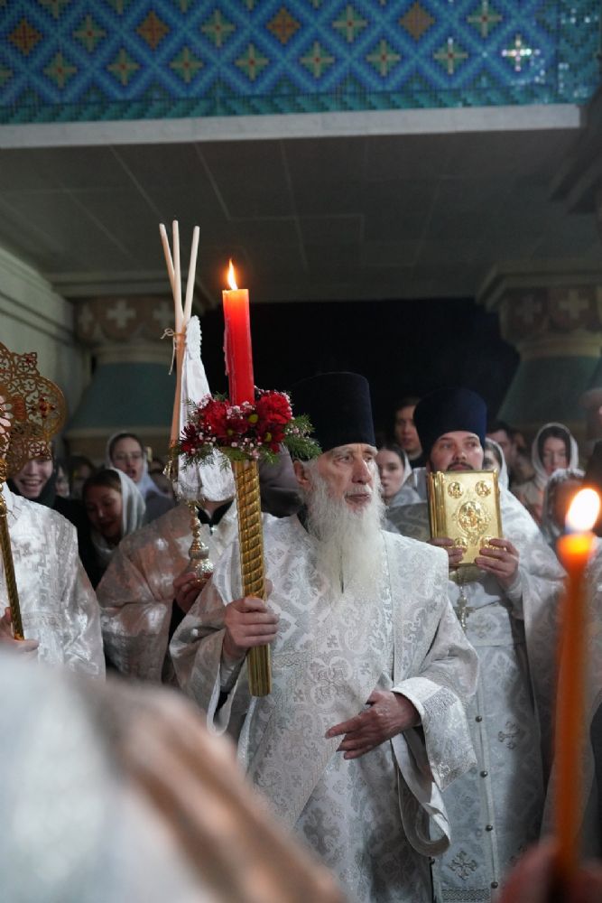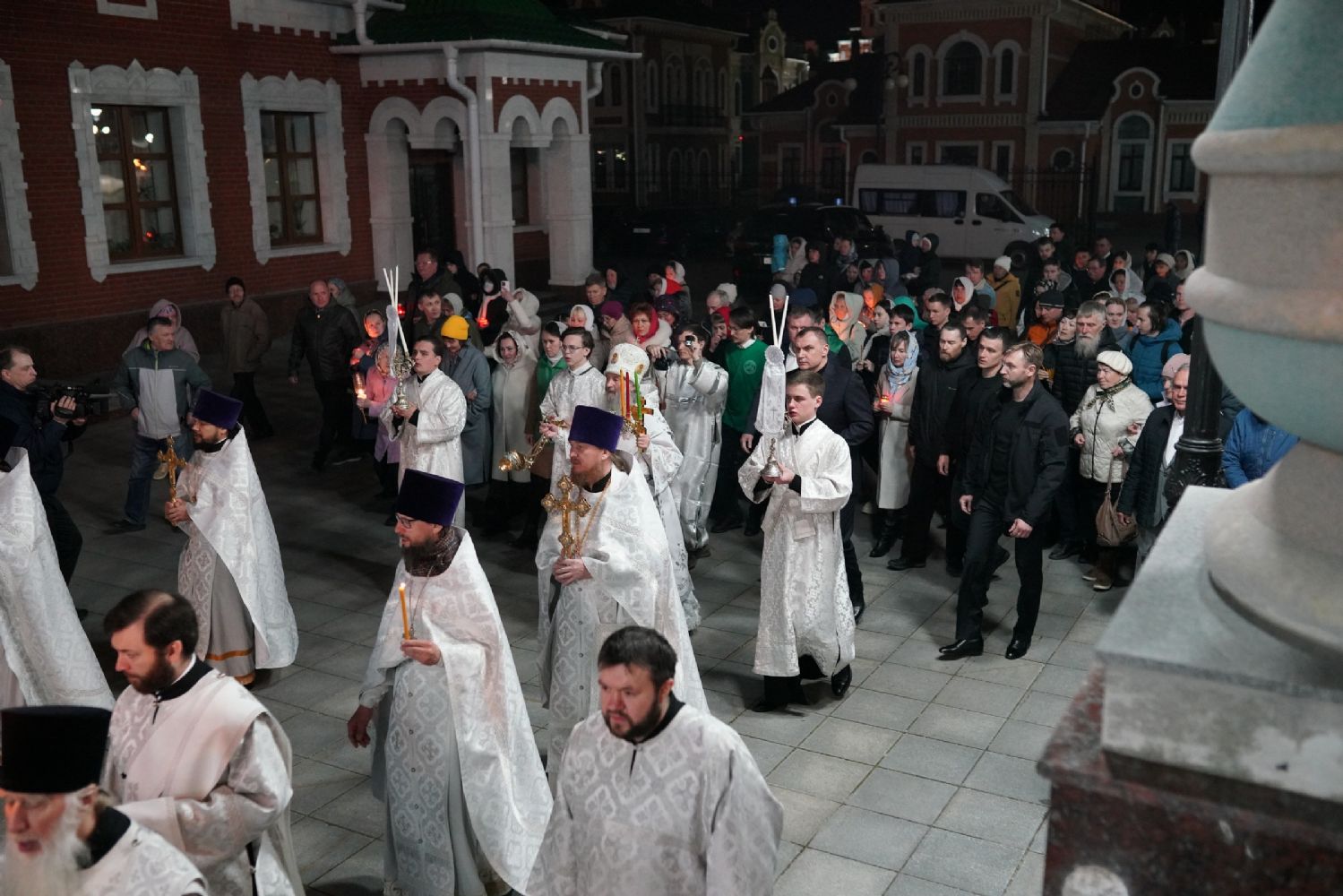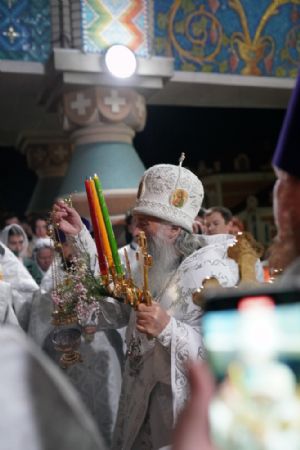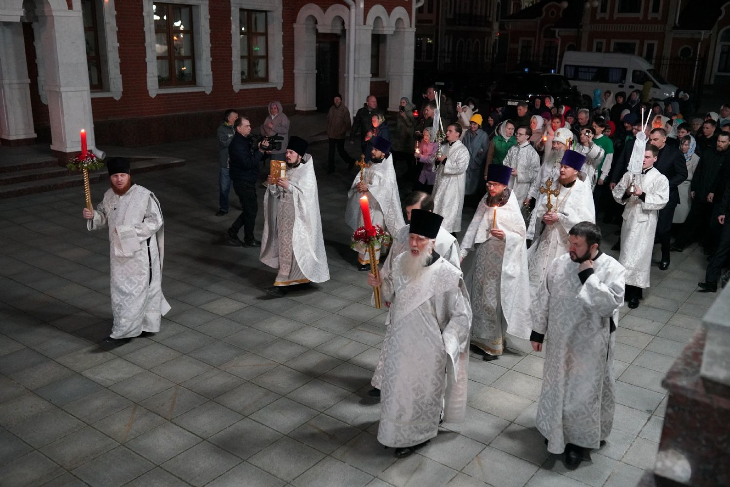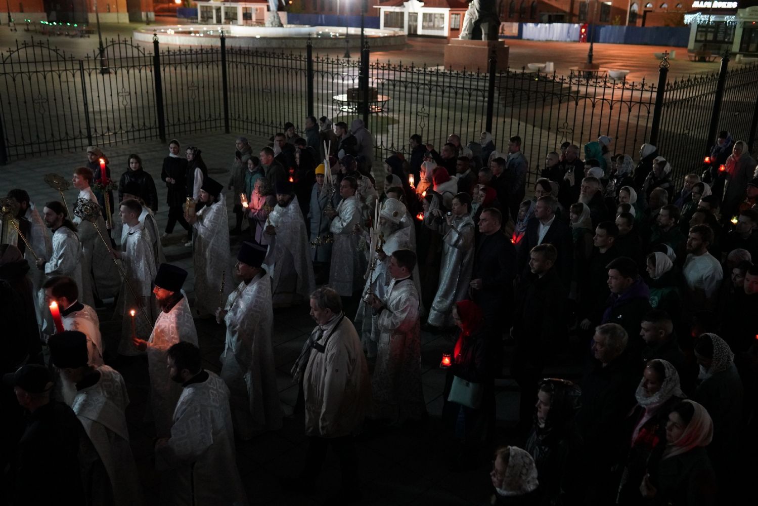 Под пение стихиры «Воскресение Твое, Христе Спасе» был совершен крестный ход вокруг собора. По традиции, за пасхальной заутреней владыка прочитал Слово огласительное святителя Иоанна Златоуста на Святую Пасху.