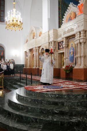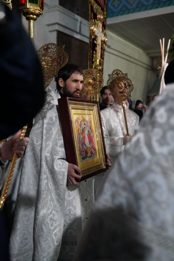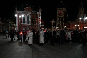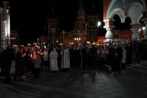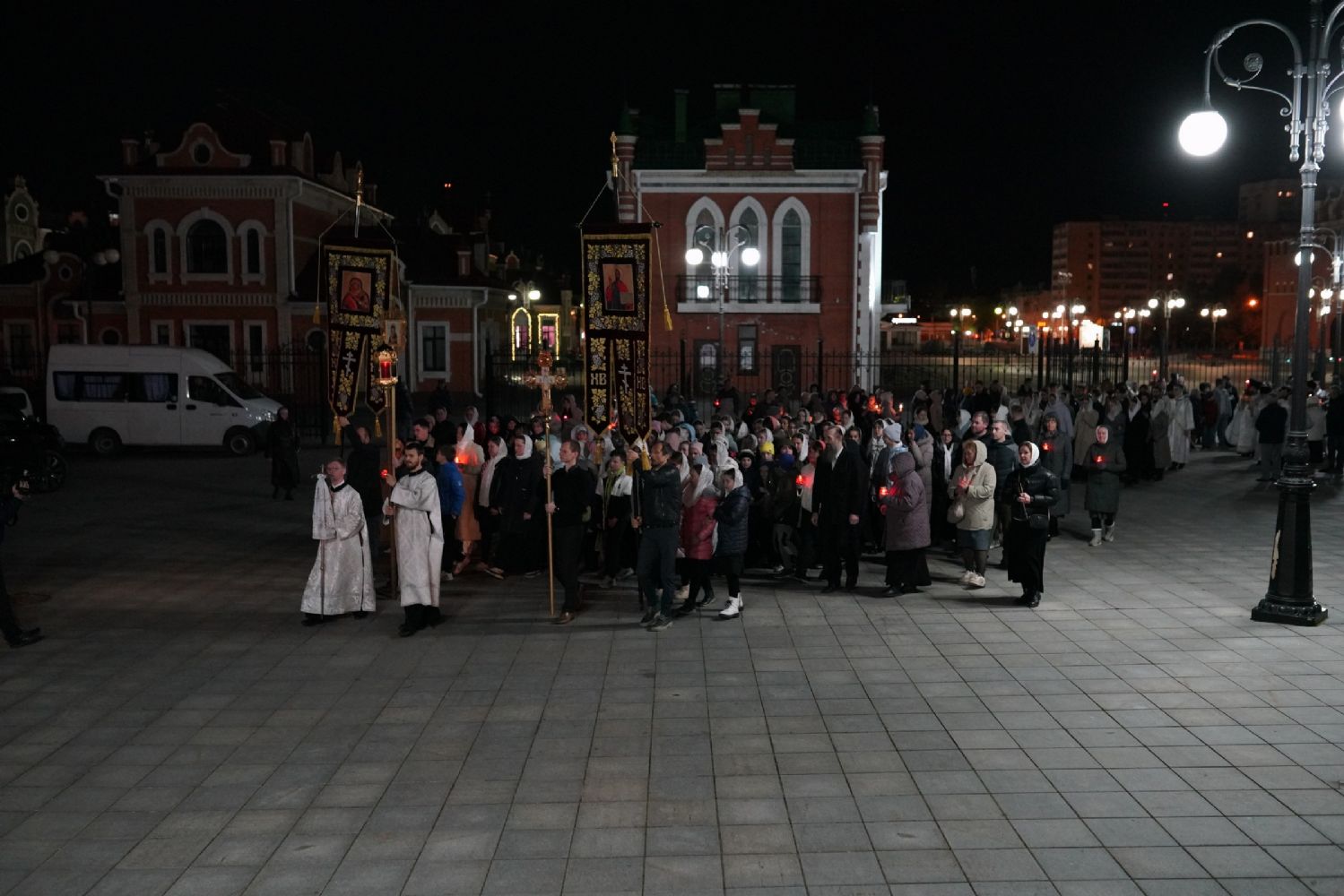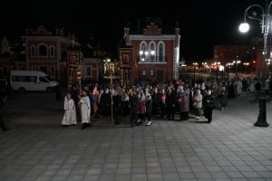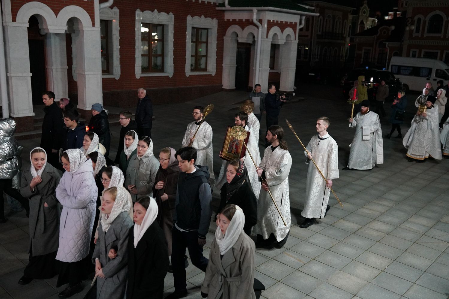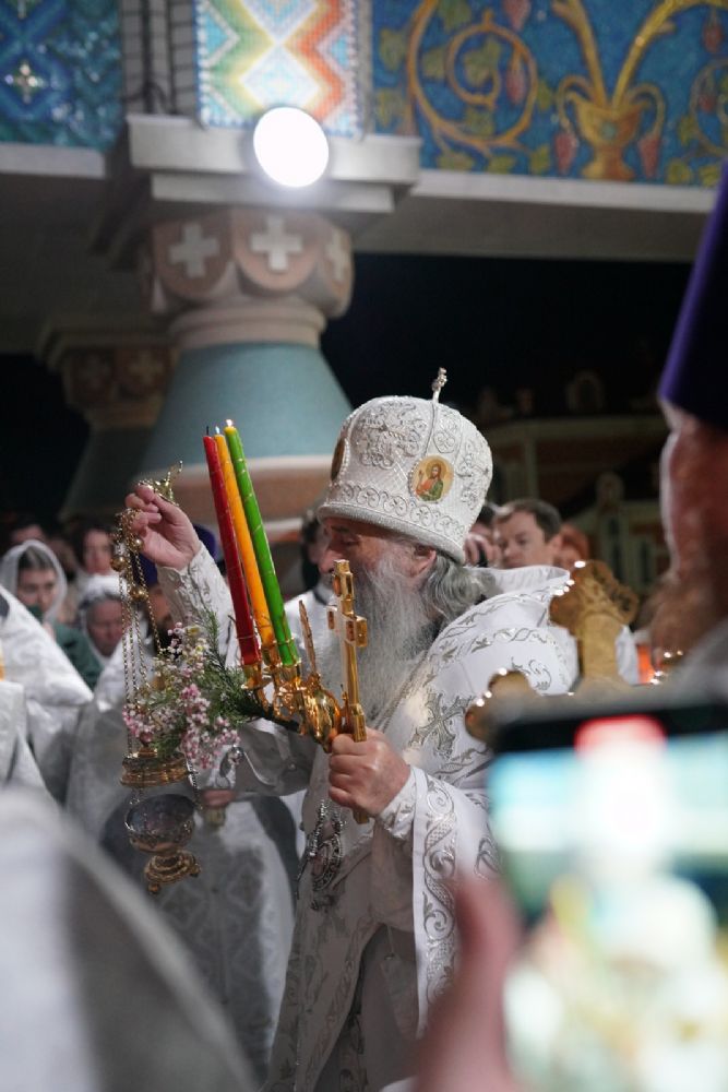 Под пение стихиры «Воскресение Твое, Христе Спасе» был совершен крестный ход вокруг собора. По традиции, за пасхальной заутреней владыка прочитал Слово огласительное святителя Иоанна Златоуста на Святую Пасху.