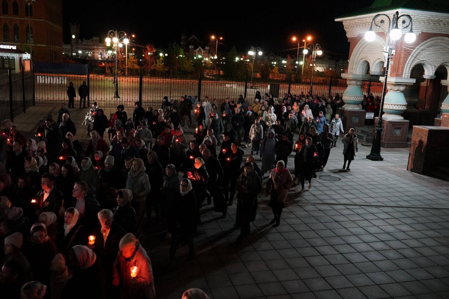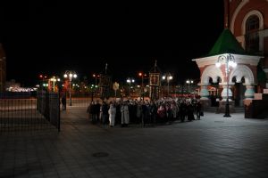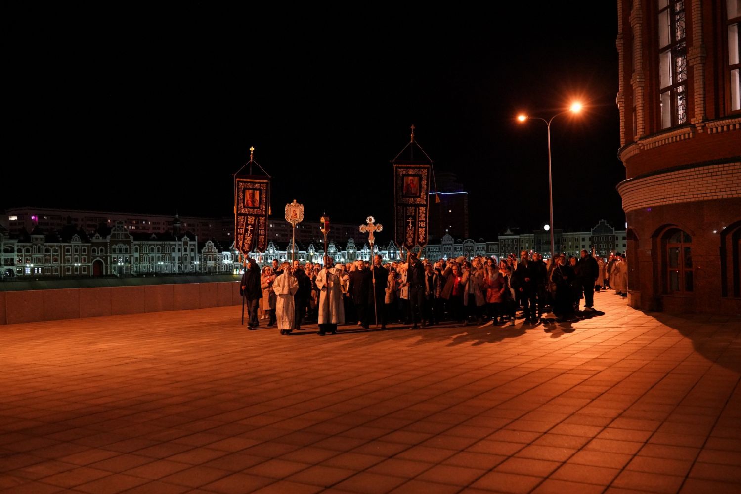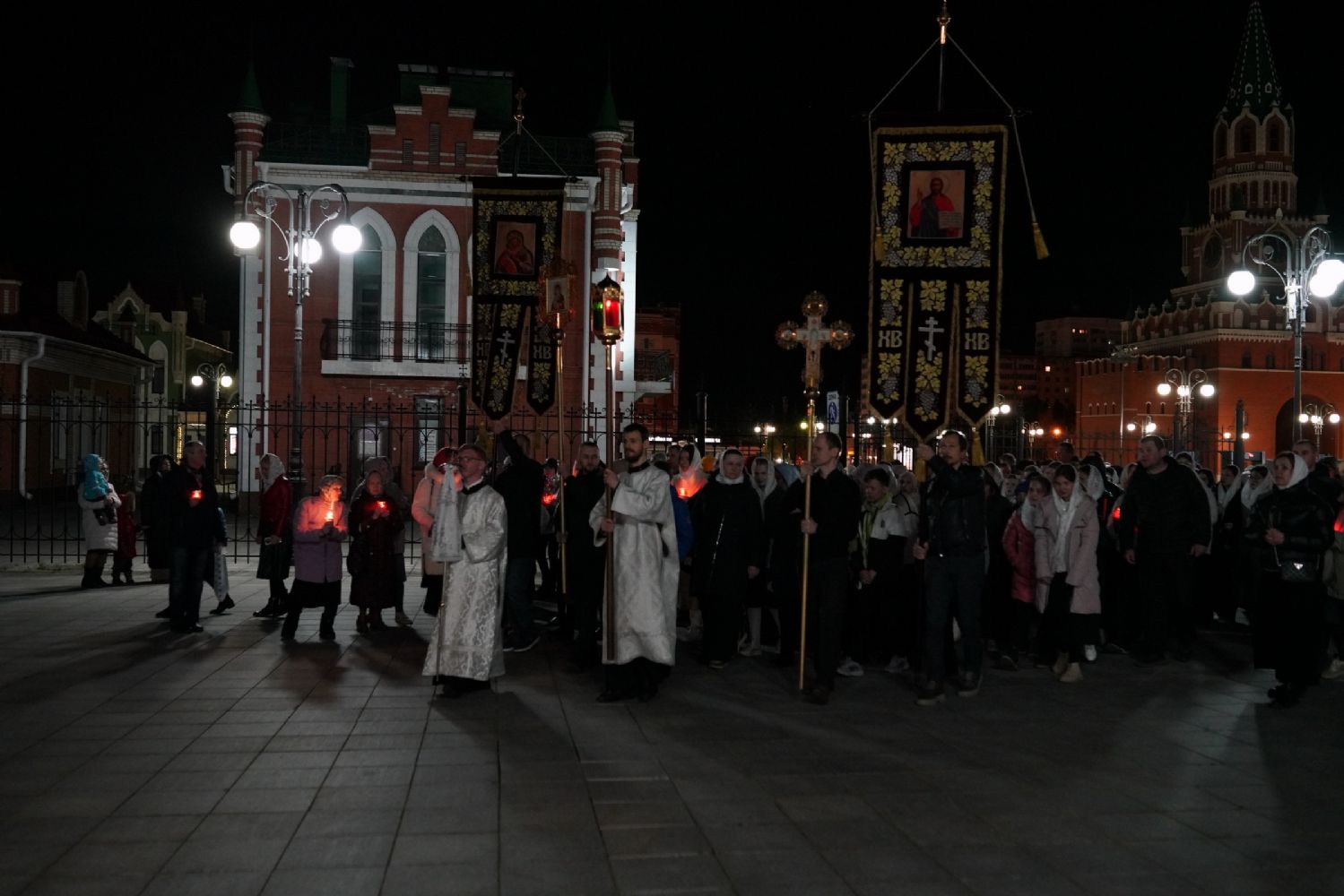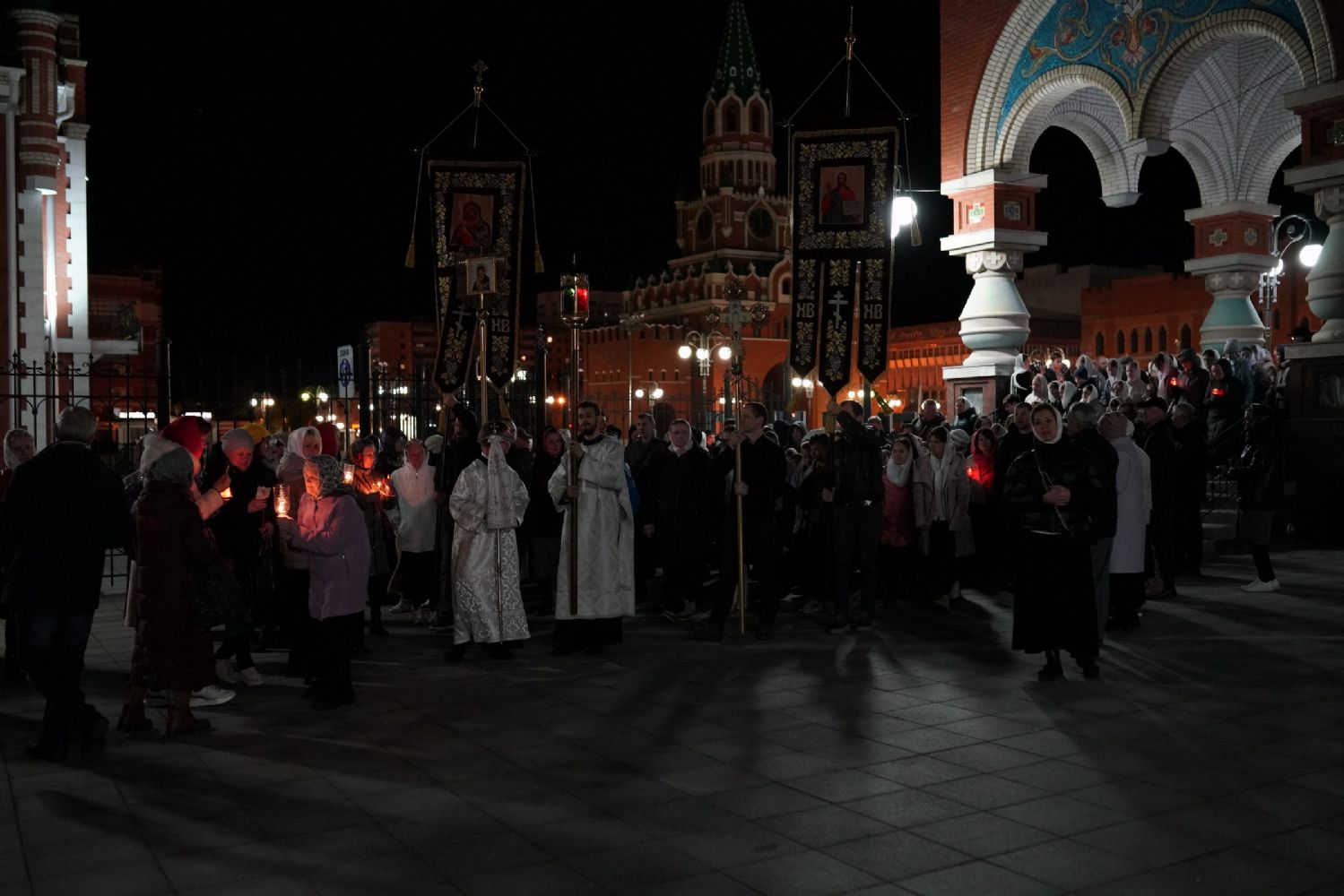 В ночь с 4 на 5 мая митрополит Йошкар-Олинский и Марийский Иоанн совершил в Благовещенском кафедральном соборе пасхальные богослужения – полунощницу, крестный ход, Пасхальную заутреню и Божественную литургию святителя Иоанна Златоуста.