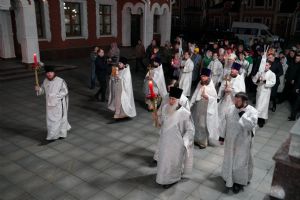 Велика и священная эта ночь, ведь мы с вами не просто вспоминаем Воскресение Христово – оно реально совершается в храмах Божиих, мы становимся соучастниками этого торжества и вместе с ангелами восхваляем Воскресшего Спасителя. И Он ниспосылает нам эту радость несказанную, когда на сердце так легко, мирно и спокойно. Воистину Воскресший Христос всегда с нами, как Он обещал, и дары Его бесконечны – не только в эту ночь пасхальную, но и все эти 40 дней Воскресший Христос будет является нам – стоит только прийти в храм Божий, и Он нам, как и Своим ученикам, дарует великую благодатную милость, помощь и ту радость которую никто и ничто от нас отнять не может. Христос Воскресе!»