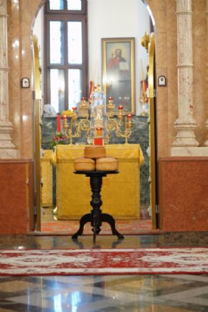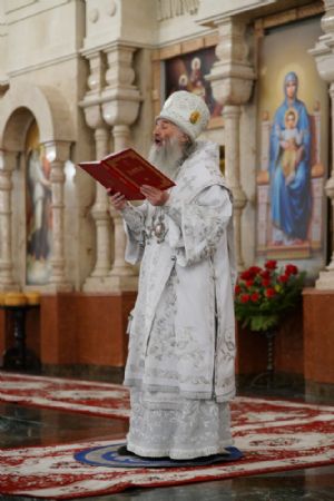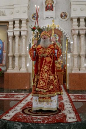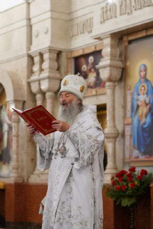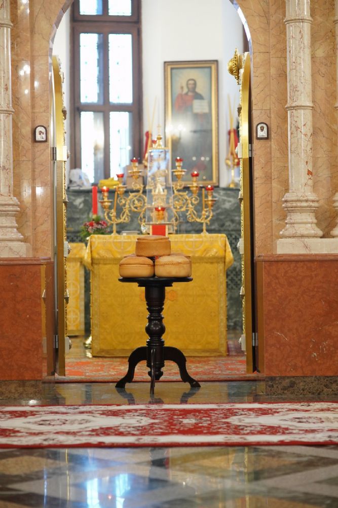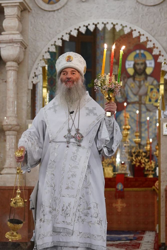 По заамвонной молитве митрополит Иоанн освятил артос и поздравил всех с великим праздником Воскресения Господа нашего Иисуса Христа, пожелав пасхальной радости в сердцах.