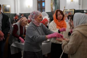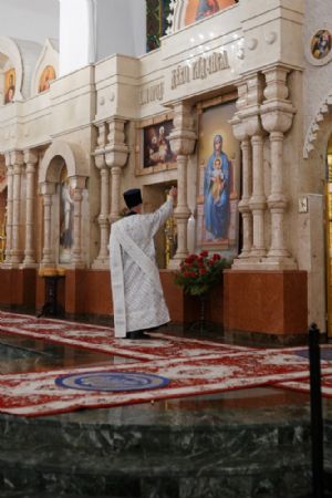 В этот святой день Церковь нас побуждает к небесной духовной радости, потому что какими бы мы ни были – во грехах ли, страстях ли, постились, не постились – сегодня духовная трапеза уготована для всех людей без различия. Воскресший Христос всех нас пригласил на этот пир духовной радости, и каждому Он дает великий бесценный дар – соединиться с Ним в таинстве святого Причащения, когда Он в нас пребывает, а мы в Нем. Как же нам не веселиться и не ликовать, когда смерти нет – потому что Спасова смерть изгладила и отняла силу у смерти человеческой, смерть для нас стала только ступенькой, соединяющей нас с Воскресшим Христом.