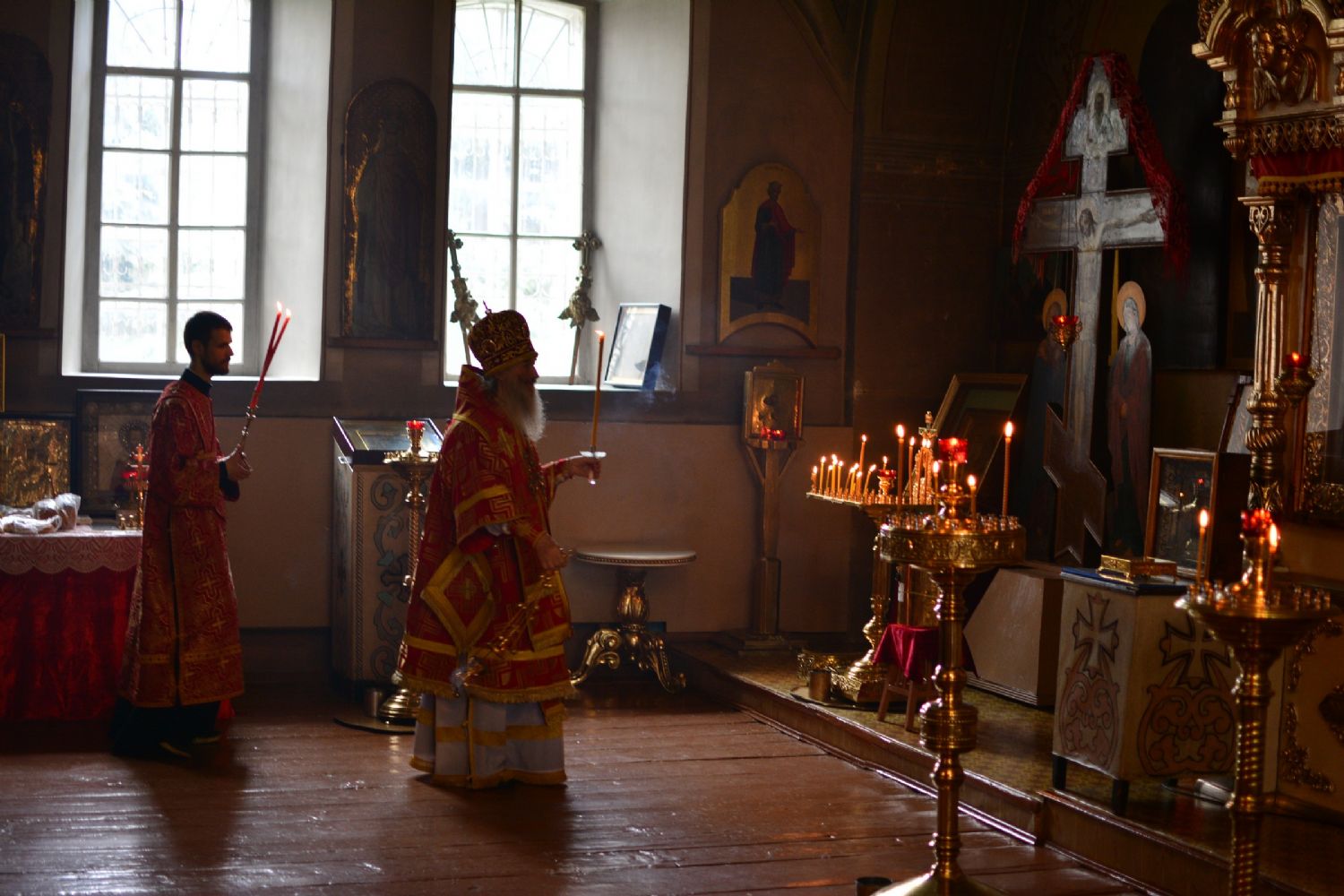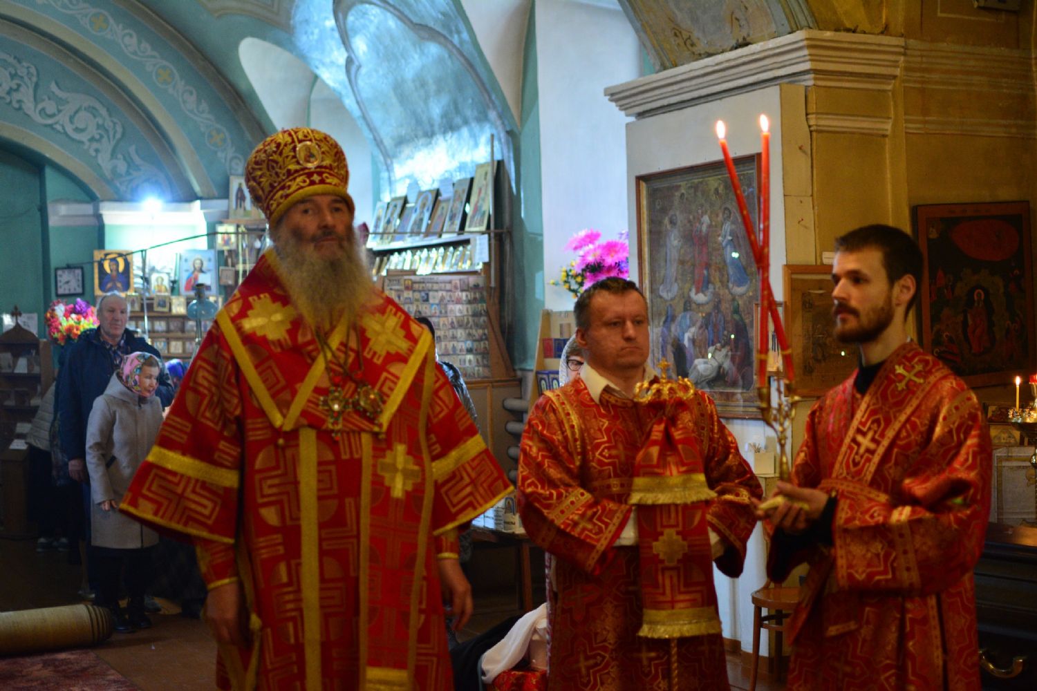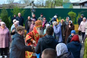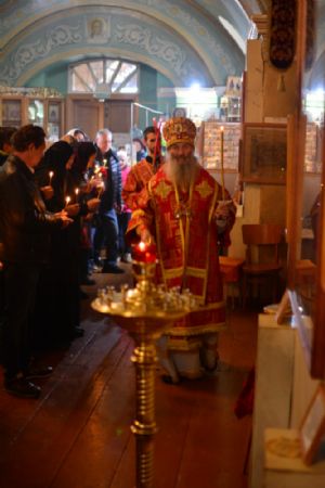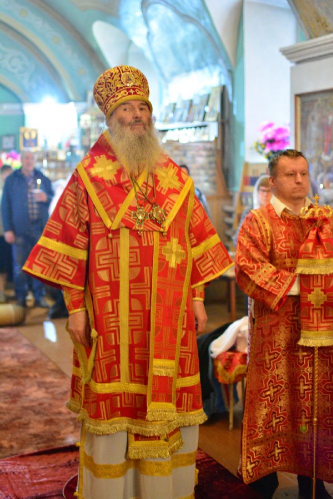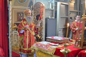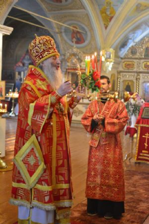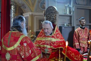 Владыке сослужили настоятель храма протоиерей Николай Барсуков и протодиакон Михаил Козловский. Песнопения исполнял хор храма под управлением регента Марины Барсуковой.