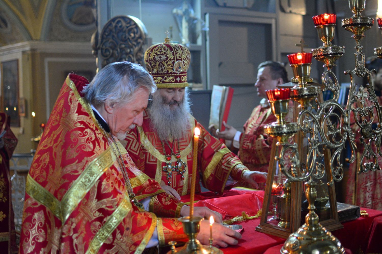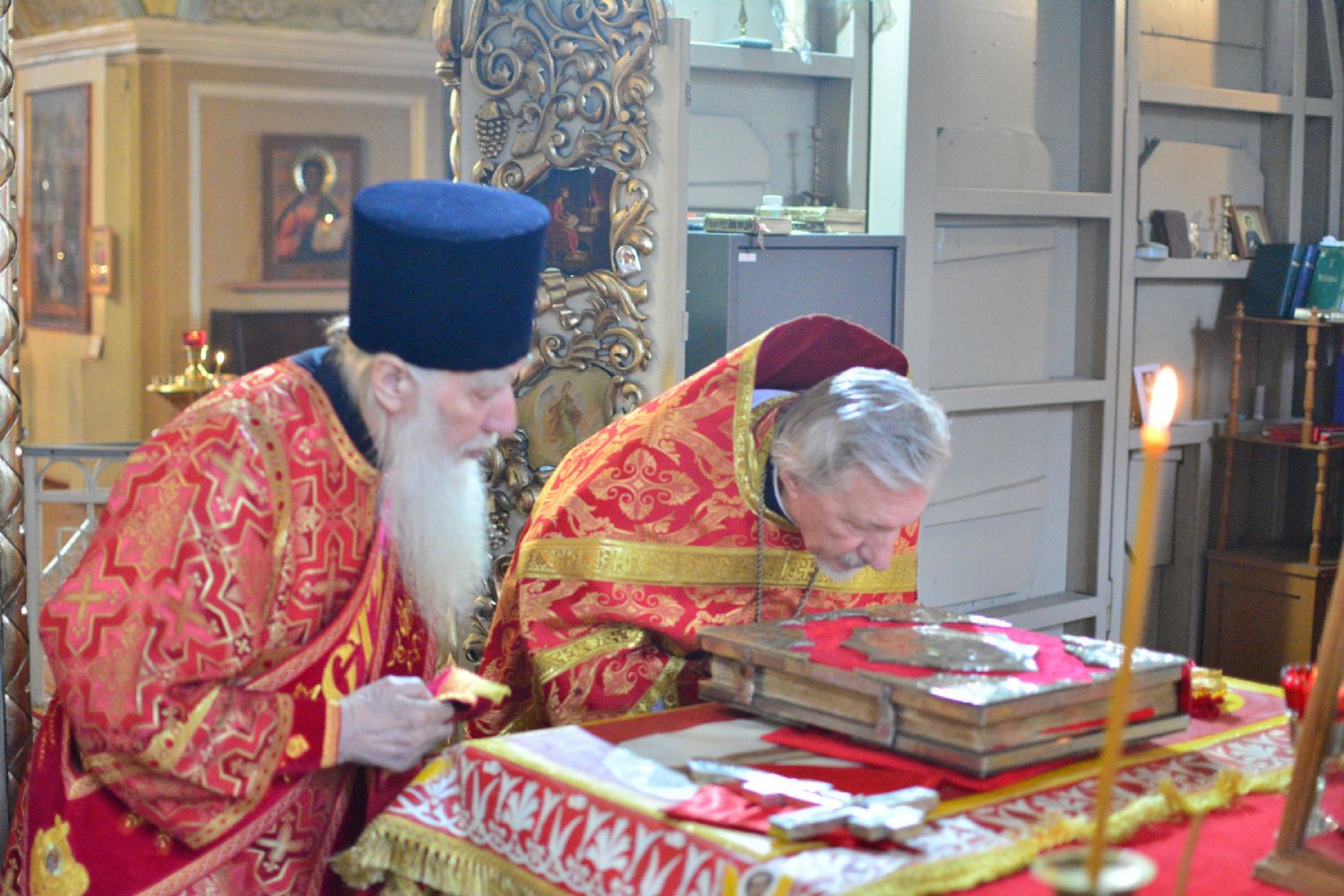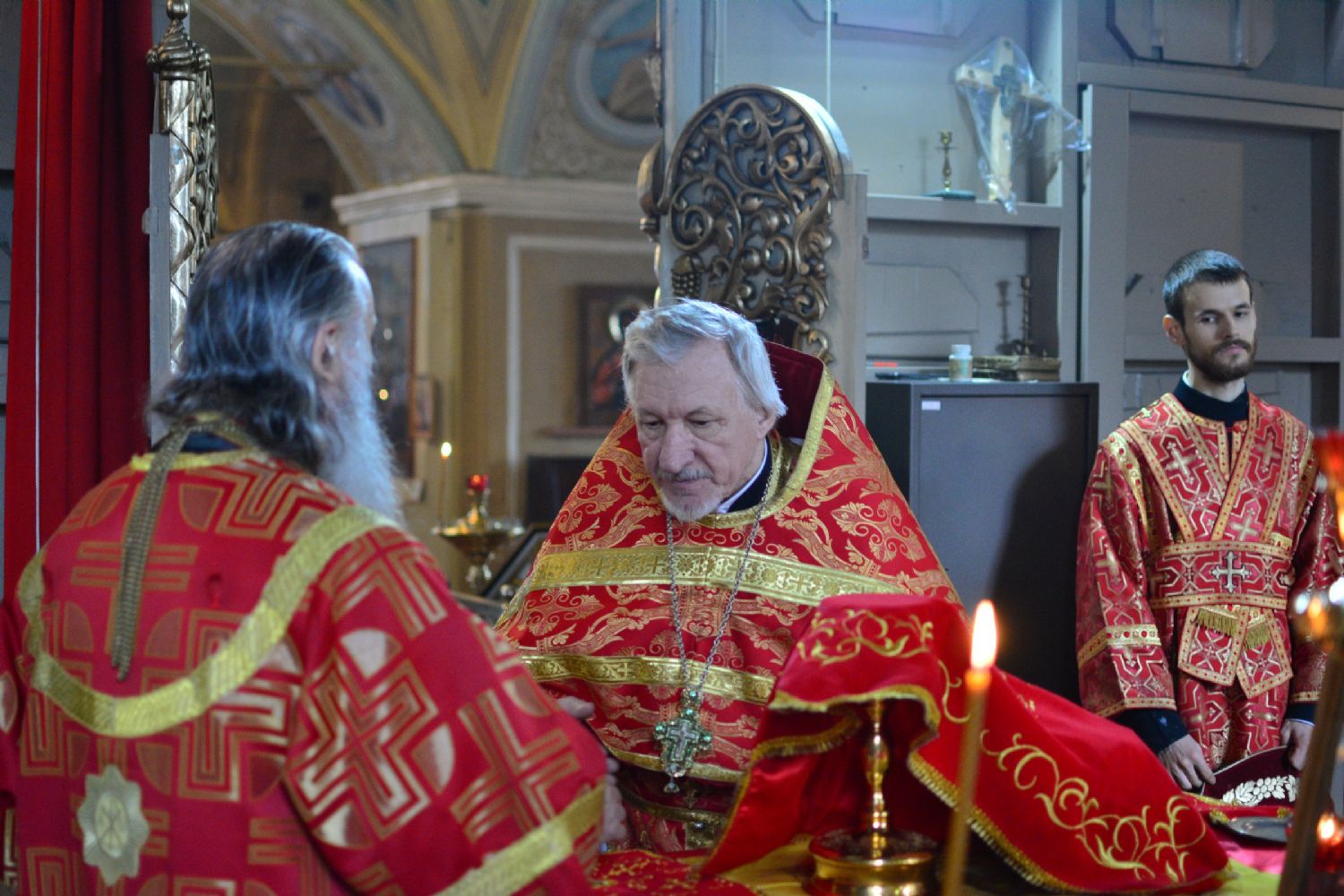 Владыке сослужили настоятель храма протоиерей Николай Барсуков и протодиакон Михаил Козловский. Песнопения исполнял хор храма под управлением регента Марины Барсуковой.