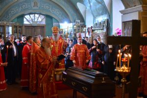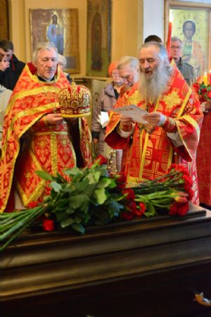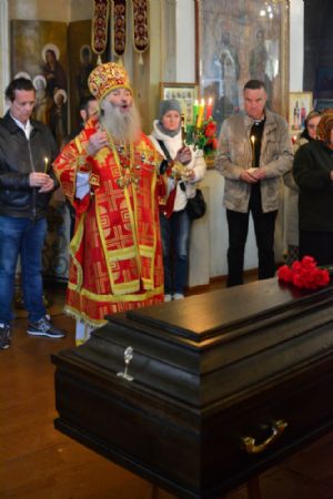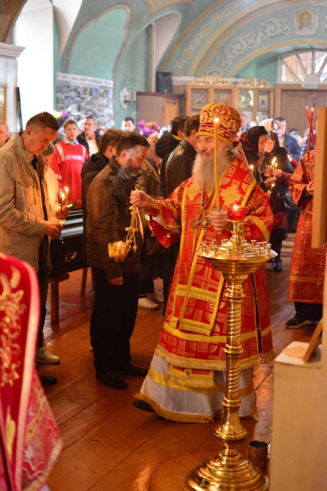 Перед отпеванием владыка обратился к собравшимся с архипастырским словом: «Неоднократно мы с вами в эти святые пасхальные дни, открывая свои сердца для Воскресшего Сладчайшего Спасителя, соприкасаемся с величайше небесной духовной тайной – Воскресением Христовым. Ведь если Христос не воскрес, то тщетна наша с вами вера, – но Он воистину Воскрес и всем нам даровал вечную жизнь. Почему мы с вами в пасхальные дни так ликуем и радуемся? Да потому, что Воскресение Христово являет для всех нас великое духовное утешение – нет больше смерти, она побеждена Спасовой смертью. И для православного христианина смерть, по слову апостола Павла, есть приобретение – потому что она соединяет всех нас с Воскресшим Спасителем.