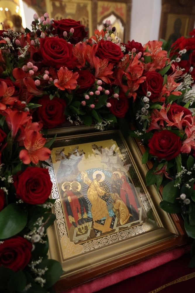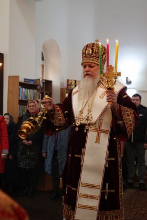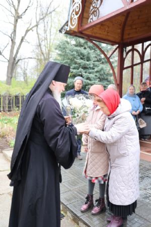 По окончании богослужения владыка Феофан обратился к верующим с проповедью, поздравив всех с продолжающимся праздником Светлого Христова Воскресения. Также владыка рассказал об истории чудотворной Иверской иконы Божией Матери, празднование которой Церковь совершает во вторник Светлой седмицы. Этот образ хранится на Святой Горе Афон, в Иверском монастыре. А для Руси афонские монахи передали список с этой иконы, для которого в Москве на Красной Площади была специально построена Иверская часовня.
