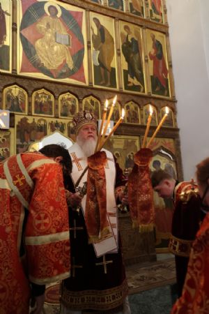 Сегодня, совершая празднование этому образу Пречистой Богородицы, мы искренне молимся Ей, и сердца наши наполняются надеждой, что несмотря на множество наших согрешений, Господь дарует каждому из нас Свою милость. И нашему Отечеству подаст Свой Божественный Покров, сохранит Святую Русь от вражды людей, которые, будучи помраченными врагом человеческого рода, восстают на нашу Родину. Мы надеемся на молитвенное предстательство Пречистой Богородицы и воссылаем славословие тридневно Воскресшему Христу Жизнодавцу. Христос Воскресе!»