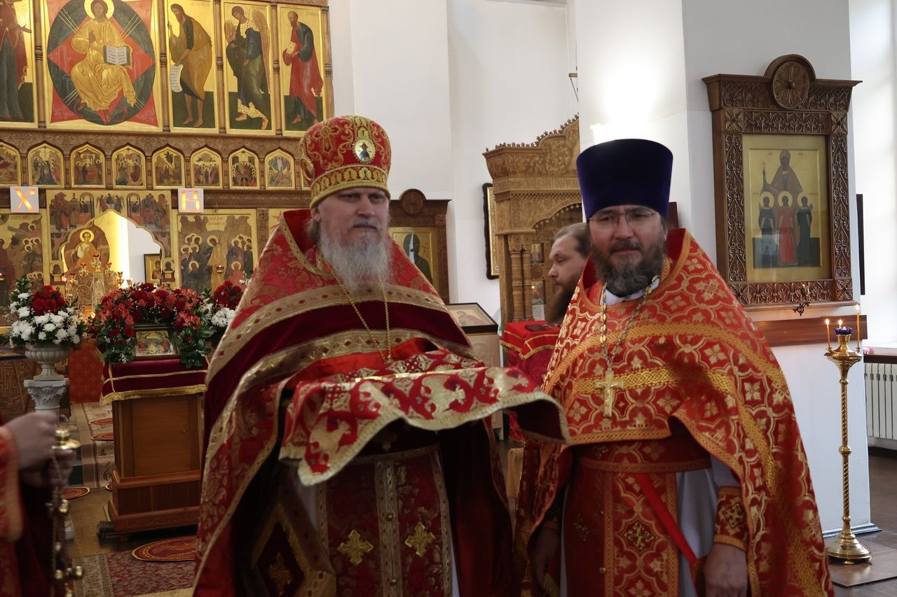 Его Преосвященству сослужили настоятель храма протоиерей Александр Михайлов и клирики Волжской епархии. Песнопения исполнял хор храма под управлением Ирины Канашиной.