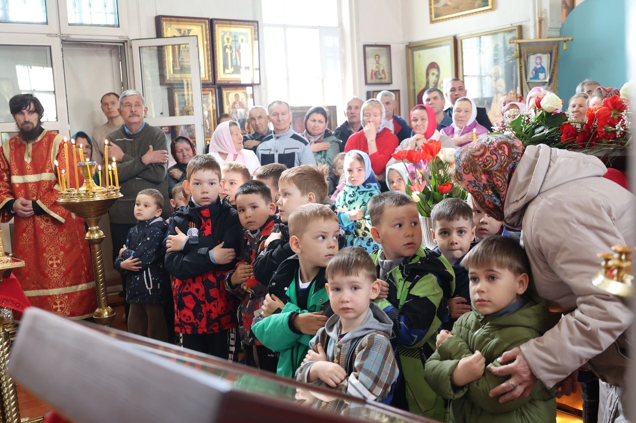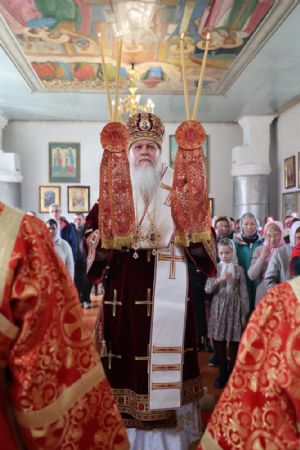 Также епископ Феофан напомнил о празднуемом на этой неделе святом великомученике и победоносце Георгии – именно в день его памяти 6 мая победном 1945 году праздновалась Пасха и завершилась Великая Отечественная война. Владыка выразил надежду, что по ходатайству Пречистой Божией Матери, по молитвам великомученика Георгия Победоносца и других святых, Господь сохранит Святую Русь, дарует духовное возрождение каждому человеку и остановит нечестивых людей, нападающих на нашу Родину.