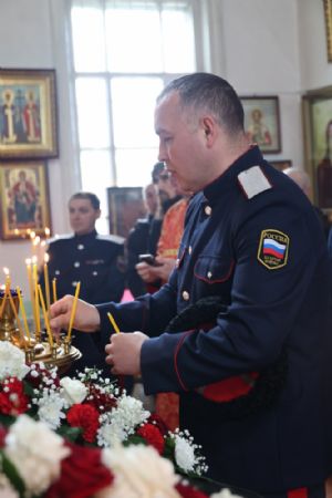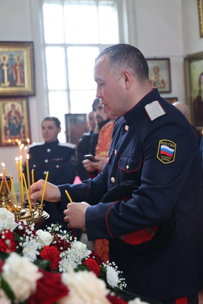 Архипастырю сослужили настоятель храма протоиерей Евгений Усков и клирик Никольского кафедрального собора г. Волжска диакон Иоанн Захаров. За богослужением молились казаки хутора «Покровский».