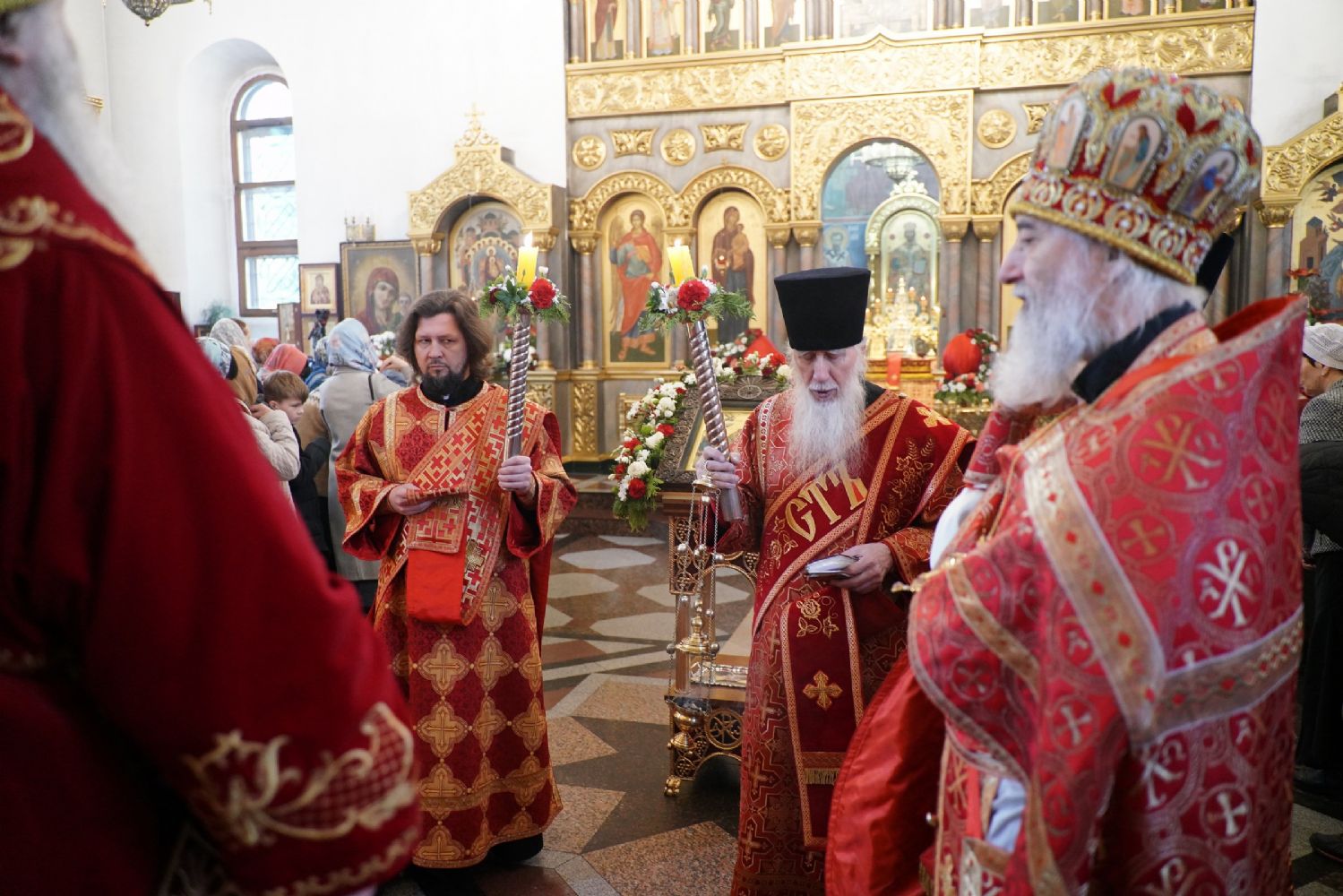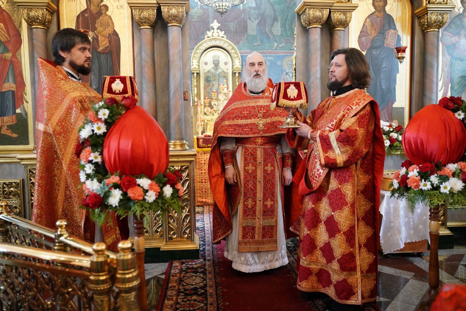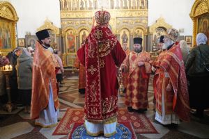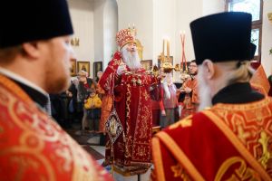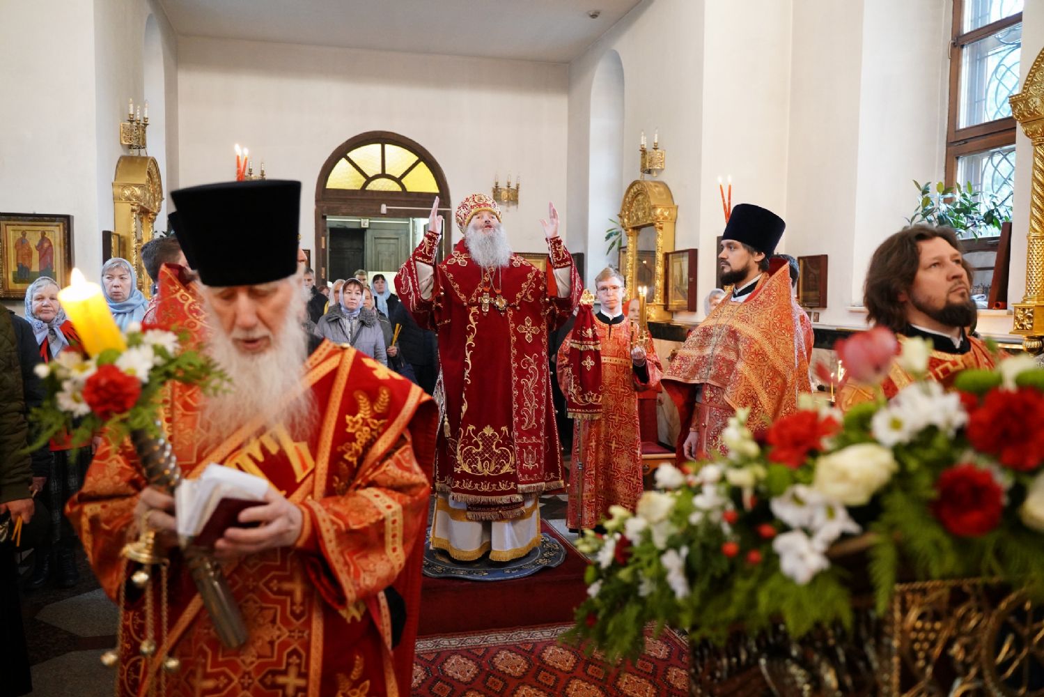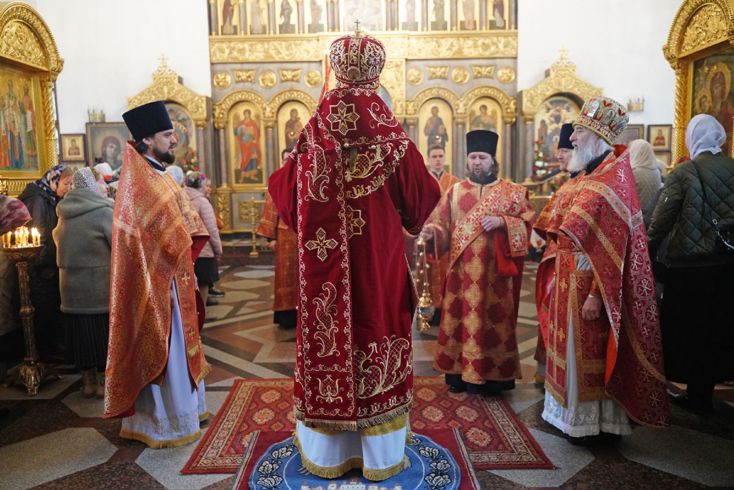 Его Высокопреосвященству сослужили настоятель храма протоиерей Сергий Филонов, клирики храма иерей Никита Иванов, иерей Вячеслав Булычев, диакон Александр Мельников, а также протодиакон Михаил Козловский. Песнопения исполнял хор Успенского храма под управлением регента Александры Ивановой.