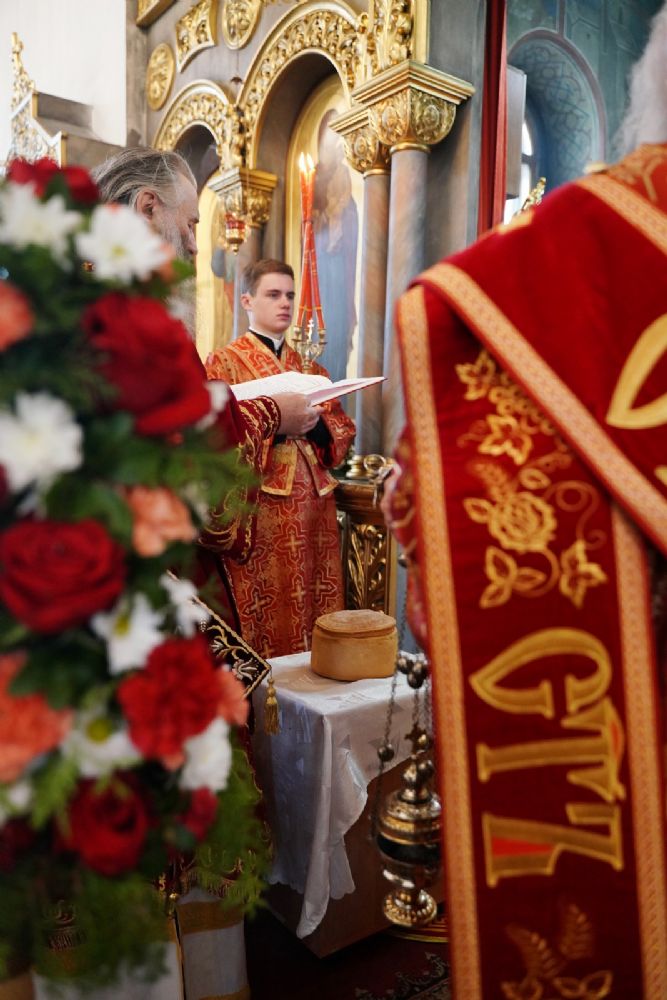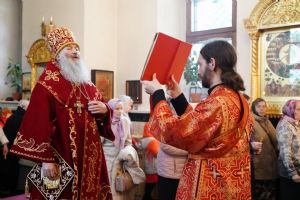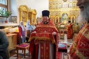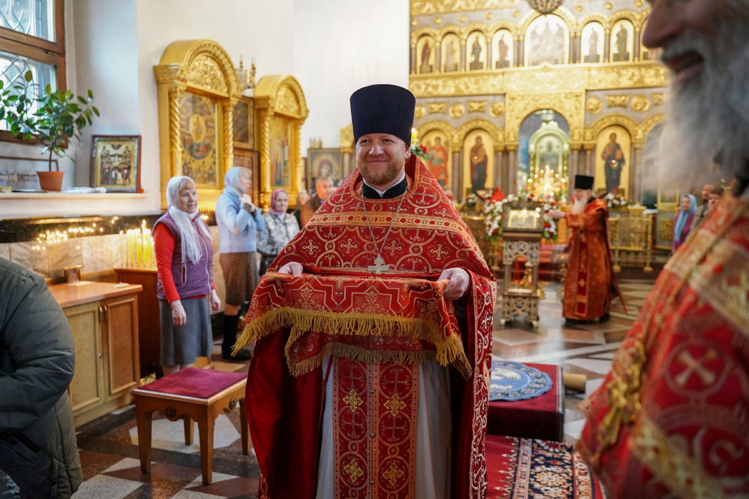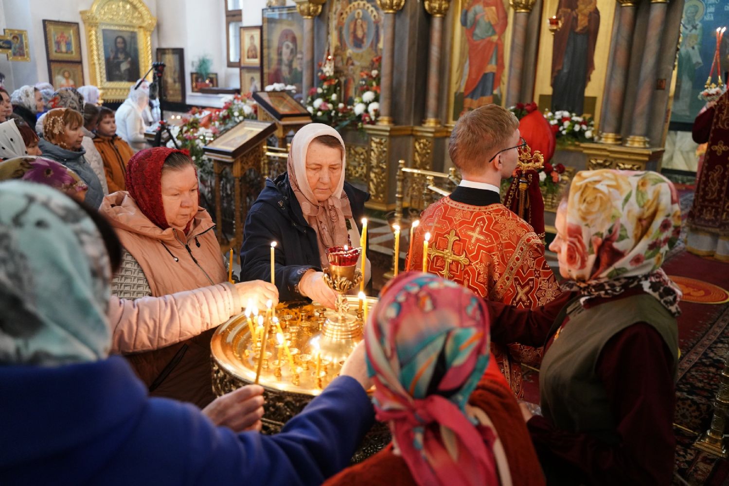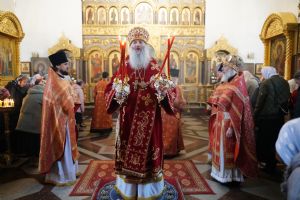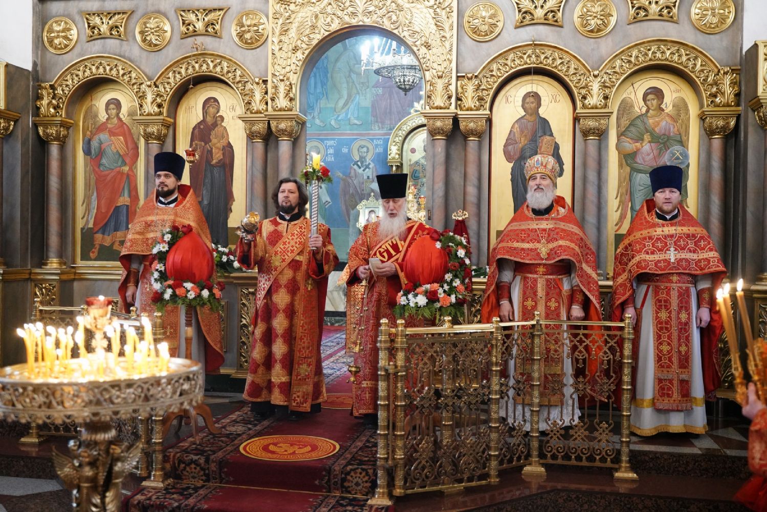 Его Высокопреосвященству сослужили настоятель храма протоиерей Сергий Филонов, клирики храма иерей Никита Иванов, иерей Вячеслав Булычев, диакон Александр Мельников, а также протодиакон Михаил Козловский. Песнопения исполнял хор Успенского храма под управлением регента Александры Ивановой.
