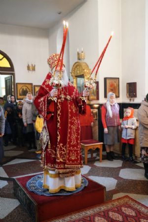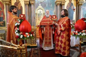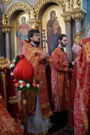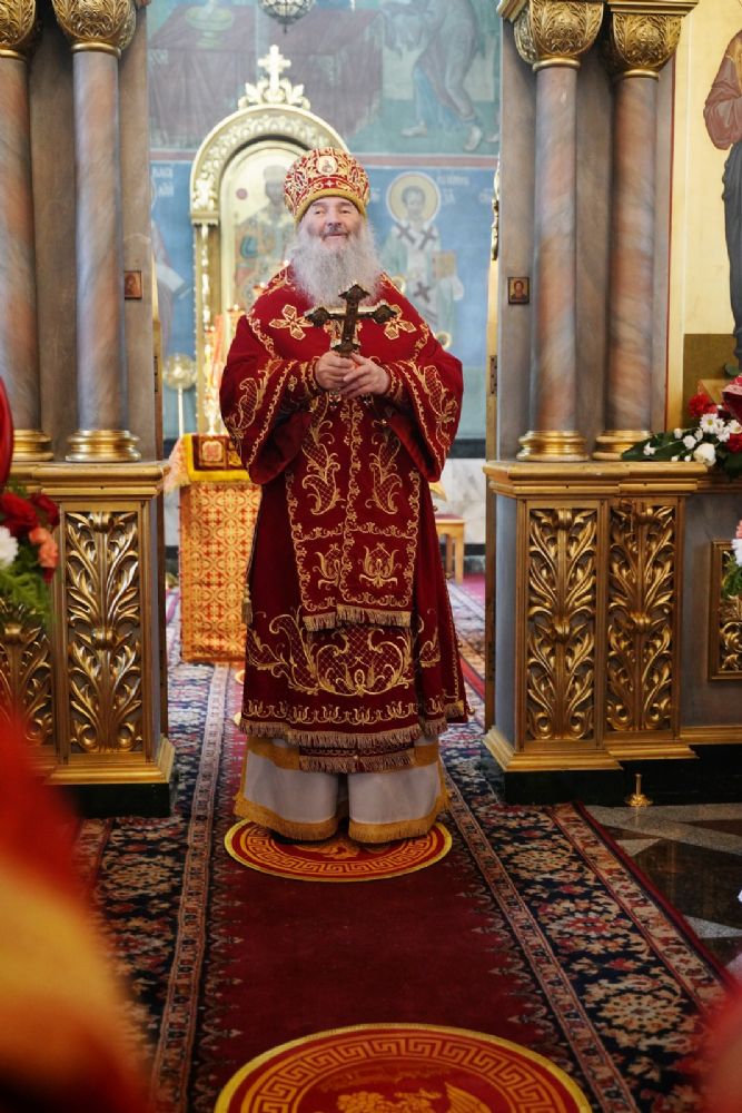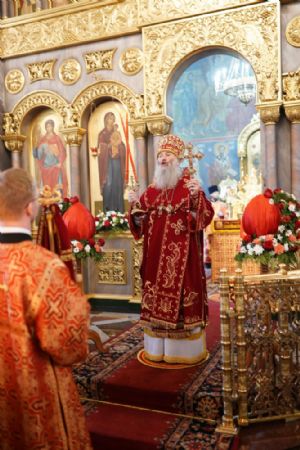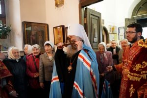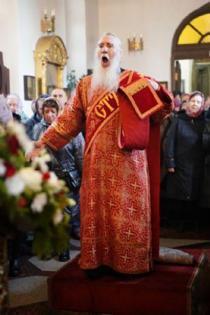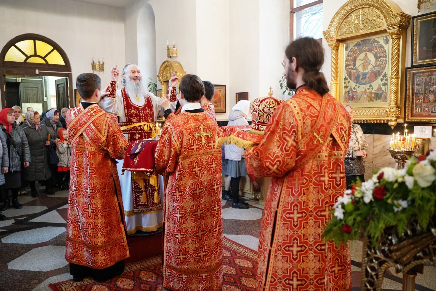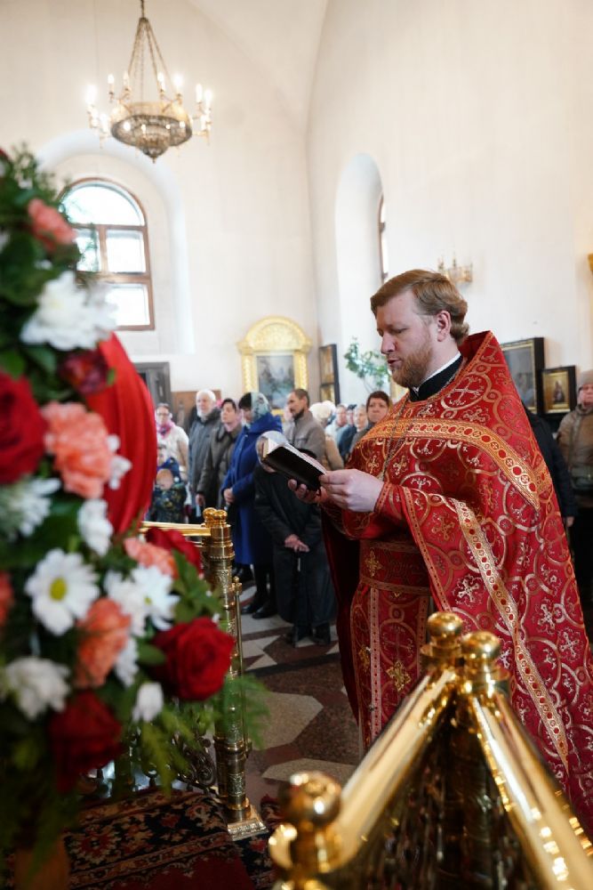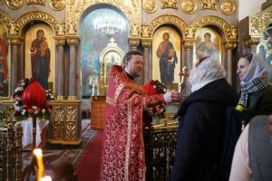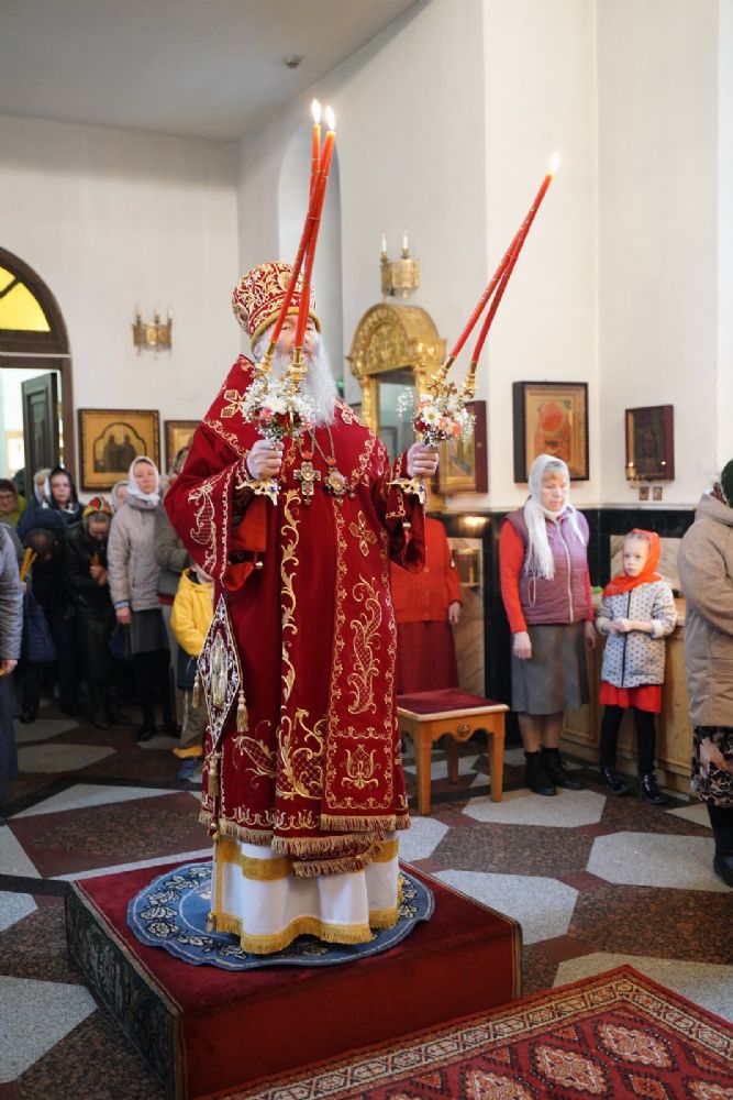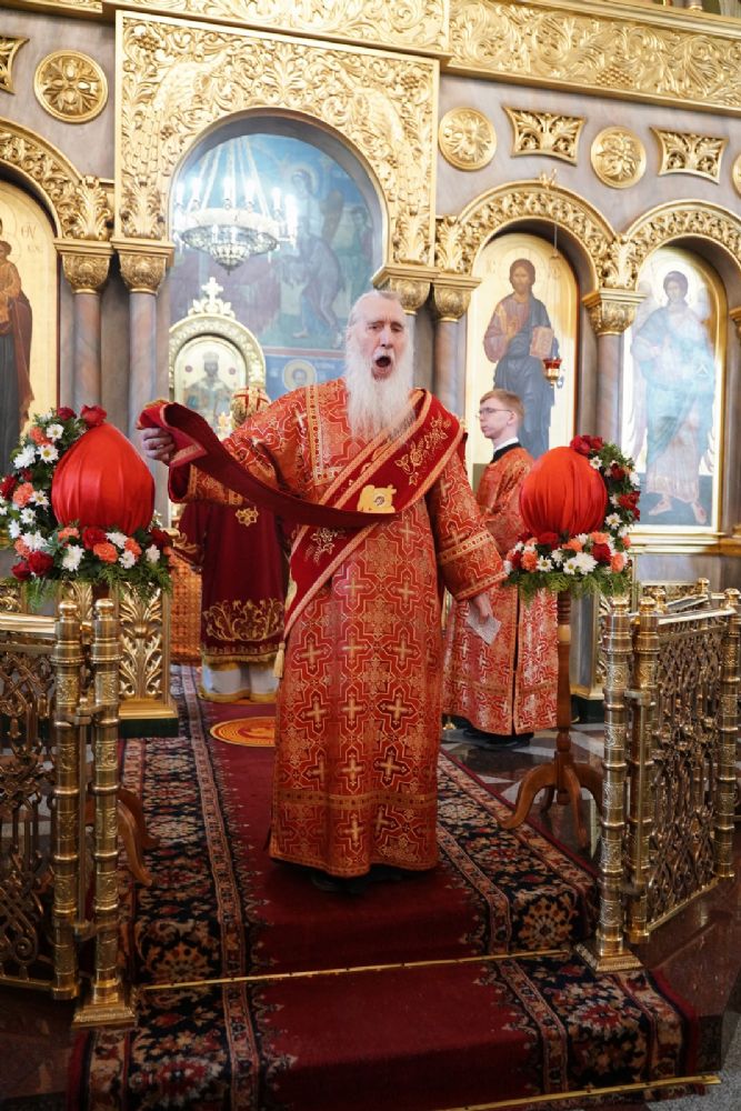 Его Высокопреосвященству сослужили настоятель храма протоиерей Сергий Филонов, клирики храма иерей Никита Иванов, иерей Вячеслав Булычев, диакон Александр Мельников, а также протодиакон Михаил Козловский. Песнопения исполнял хор Успенского храма под управлением регента Александры Ивановой.