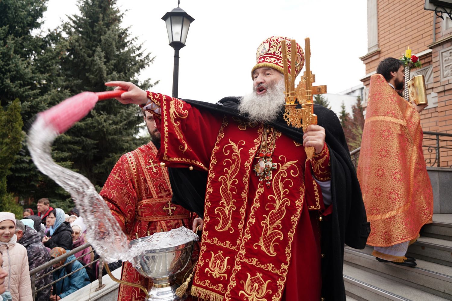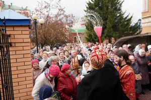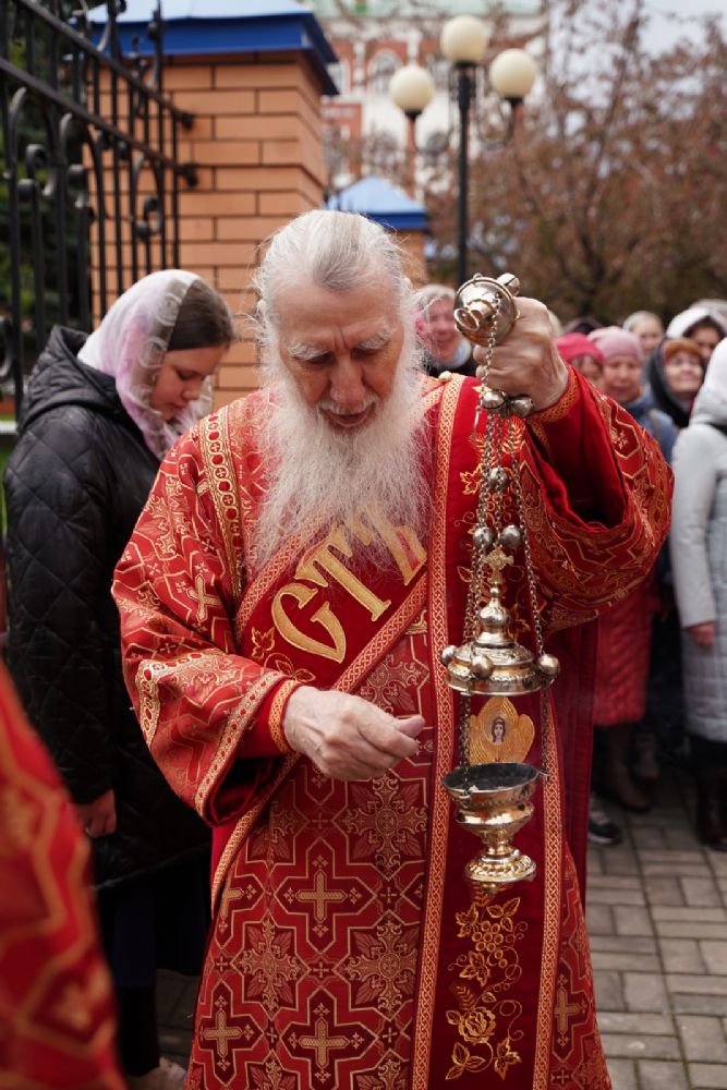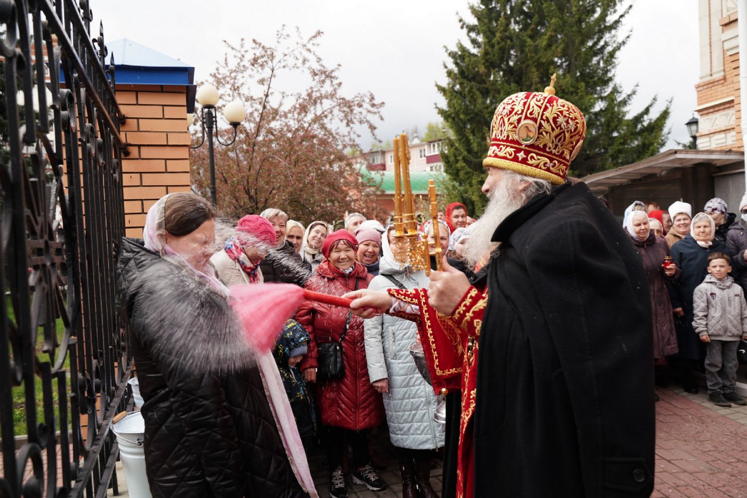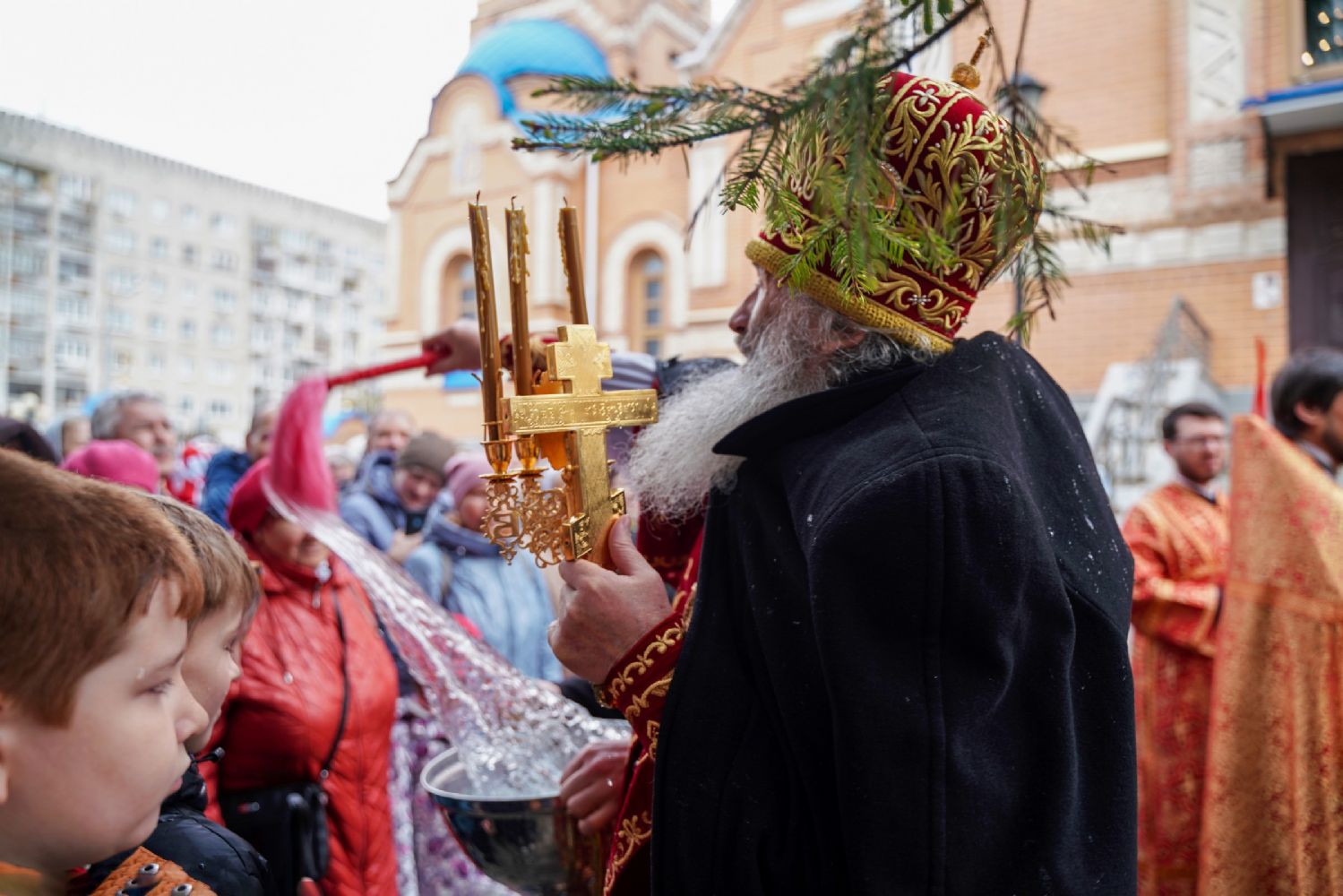 После Литургии был совершен крестный ход вокруг храма со чтением Евангелия и кроплением святой водой. Затем владыка прочитал молитву на раздробление артоса и обратился к верующим с архипастырским словом.