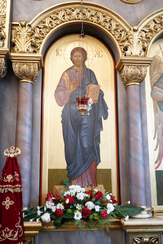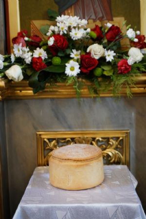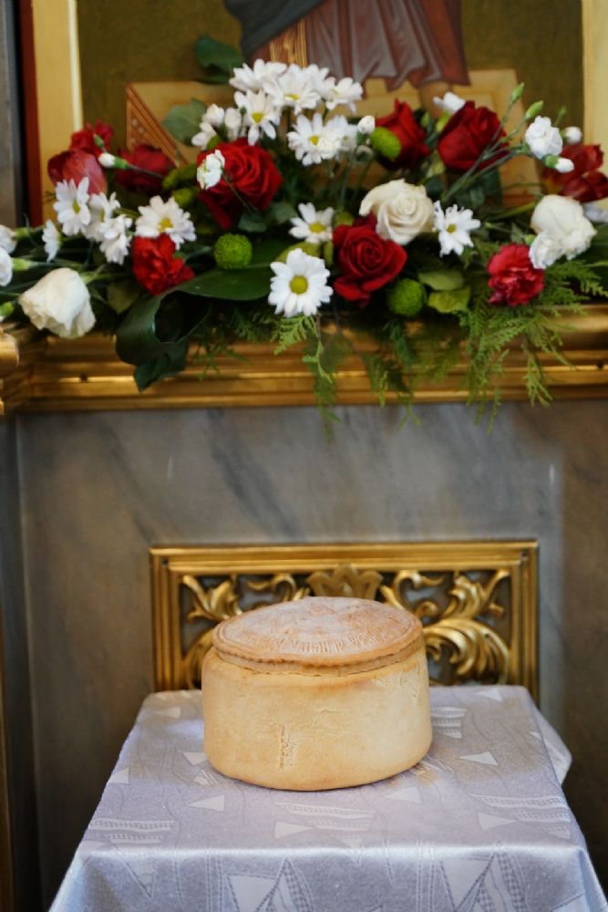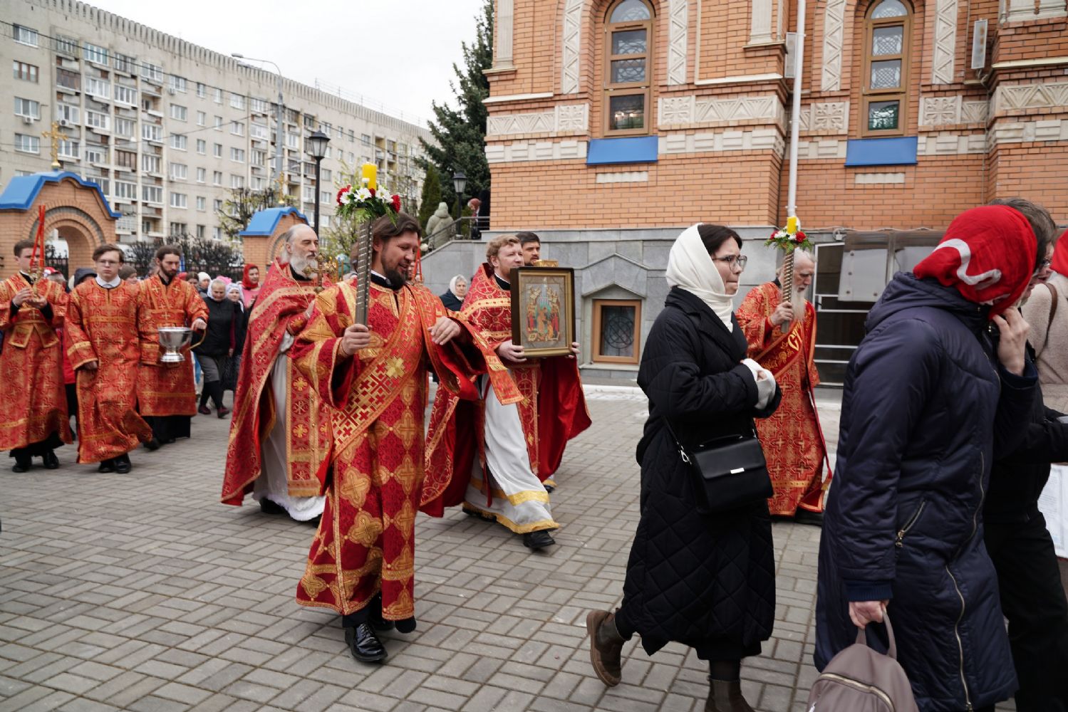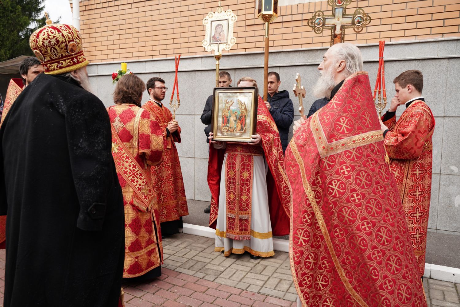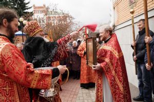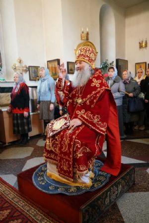 После Литургии был совершен крестный ход вокруг храма со чтением Евангелия и кроплением святой водой. Затем владыка прочитал молитву на раздробление артоса и обратился к верующим с архипастырским словом.
