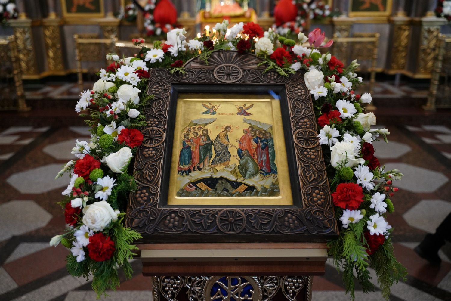 Облечься во Христа нам помогает наше православное богослужение, которое всех нас вовлекает в жизнь Господа, – здесь и Рождество Христово, здесь и Его страдания ради нашего спасения, здесь и Воскресение Господне... Мы не просто воспоминаем эти события, а реально участвуем в них. Для нас открывается и величие Божественной милости, и Его любовь к нам. Через Священное Писание Сам Господь назидает нас, в Новом Завете насчитывается более сотни свидетельств о том, что Христос воскрес. А значит, и мы все мы воскреснем, мы живем этой верой и жаждем, подобно апостолу Павлу, быть с Господом во веки. Ведь Господь победил смерть, смерти нет, есть только успение, когда вечная душа идет к своему Творцу. Но для одних эта встреча с Воскресшим станет великой радостью и приобретением, а для других, которые здесь, на земле, отказывались от Господа и жили по своей безумной воле, эта встреча будет великим горем…