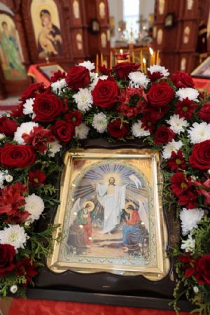 «Христос Воскресе! Возлюбленные о Господе всечестные отцы, дорогие во Христе братья и сестры. Разрешите всех вас сердечно поздравить с продолжающимся праздником светлого Христова Воскресения. Совсем недавно мы переживали на Страстной седмице дни скорби Господа нашего Иисуса Христа, Который пришел на землю нас ради человек и нашего ради спасения, добровольно отдал Себя в руки грешников, чтобы пострадать на Кресте, пролить Свою Божественную кровь за всех людей и искупить все человечество Своей крестной смертью. Но вот наступил радостный праздник Светлого Христова Воскресения – и все мы исполнились удивительной радости. Ведь мы имеем к этому празднику непосредственное отношение через таинство Крещения и искреннюю православную веру в Господа нашего Иисуса Христа. Через таинства Церкви мы приобщаемся благодати Всесвятого и Животворящего Духа.