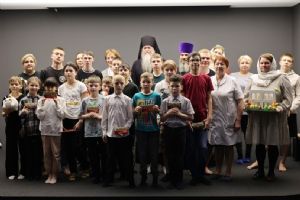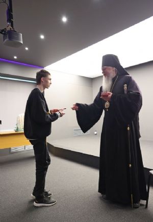 Владыка Феофан раздал всем сладкие подарки, а в дар библиотеке интерната передал сборник из 12 томов житий святых святителя Димитрия Ростовского.