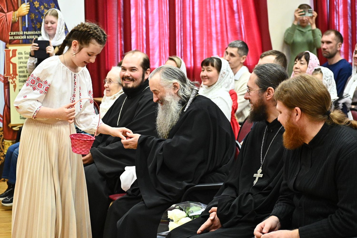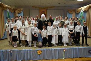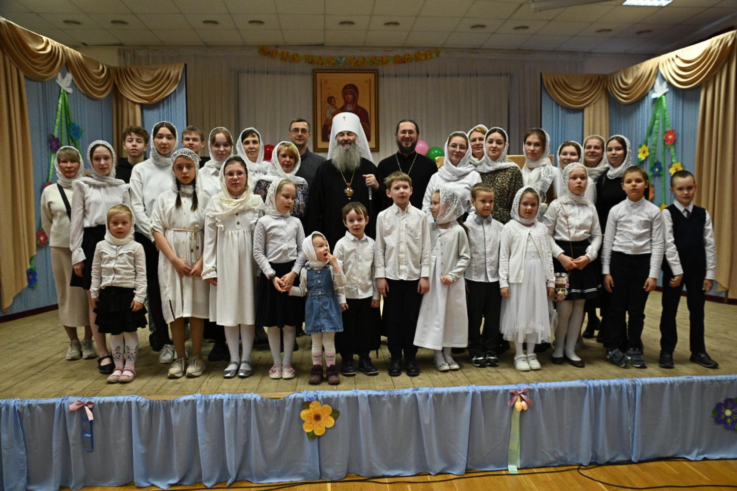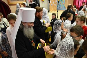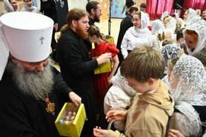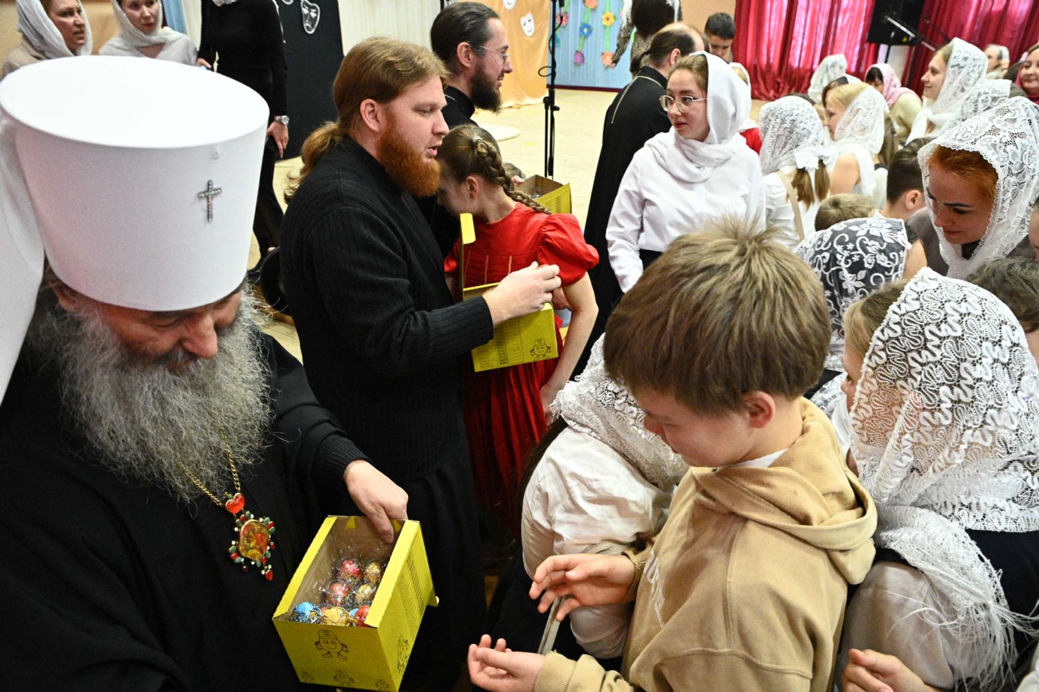 После концерта владыка поздравил детей и педагогов с праздником Светлой Пасхи и вручил сладкие подарки.