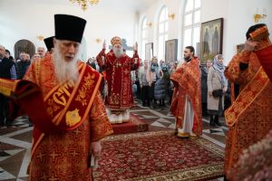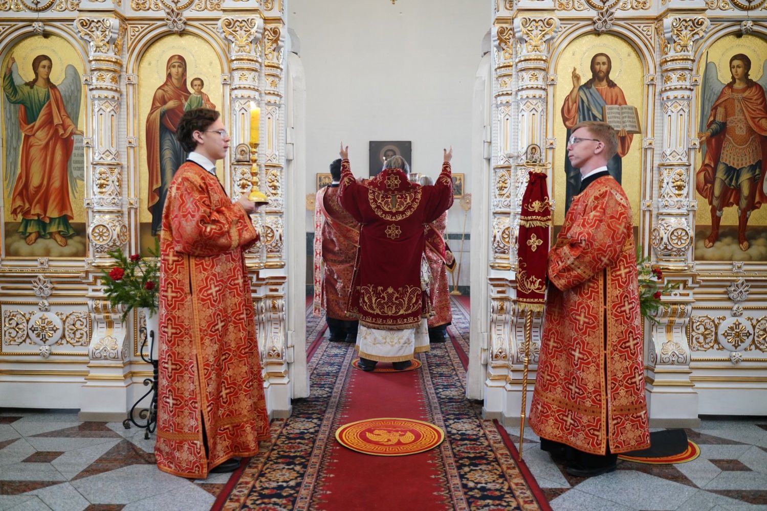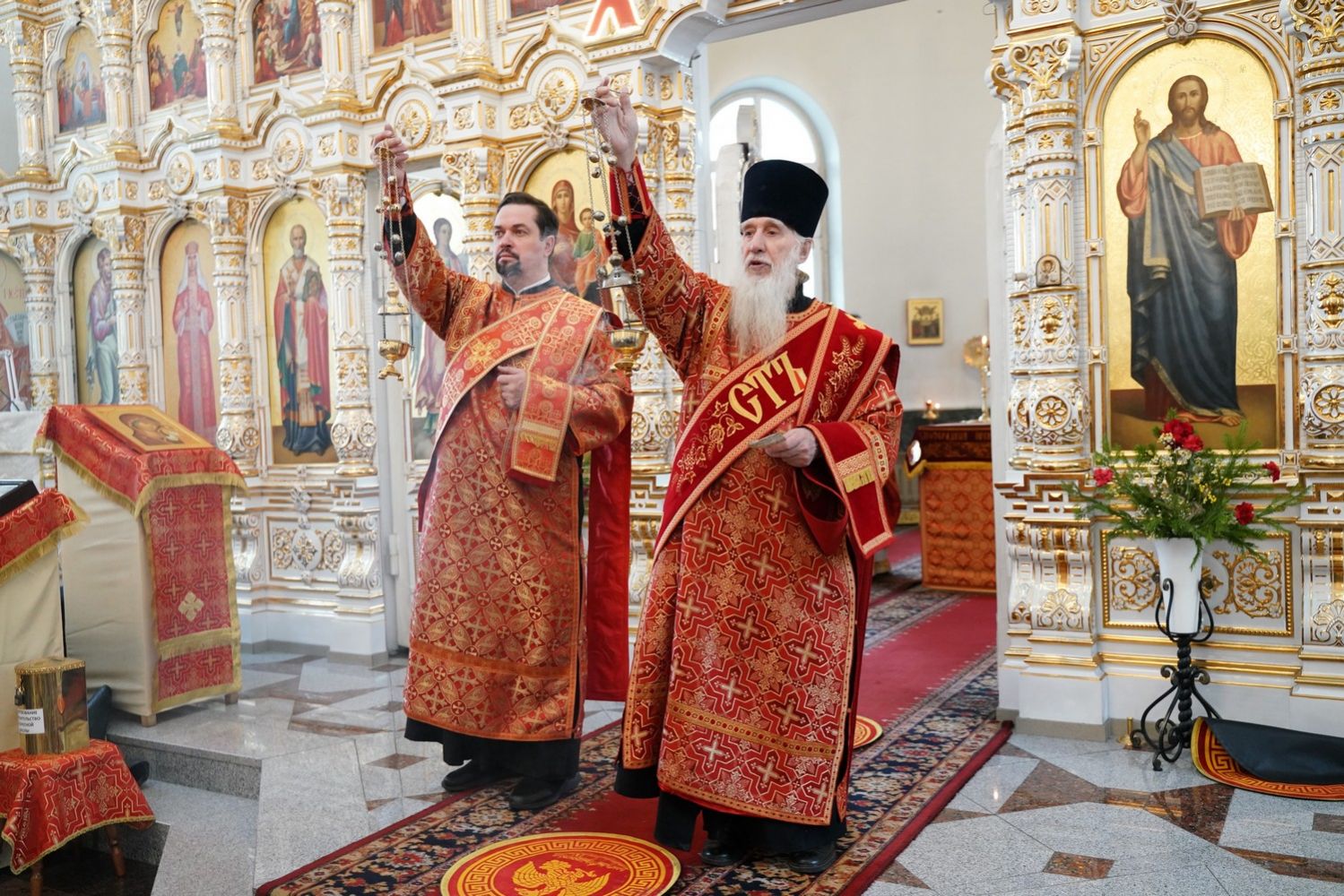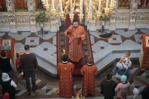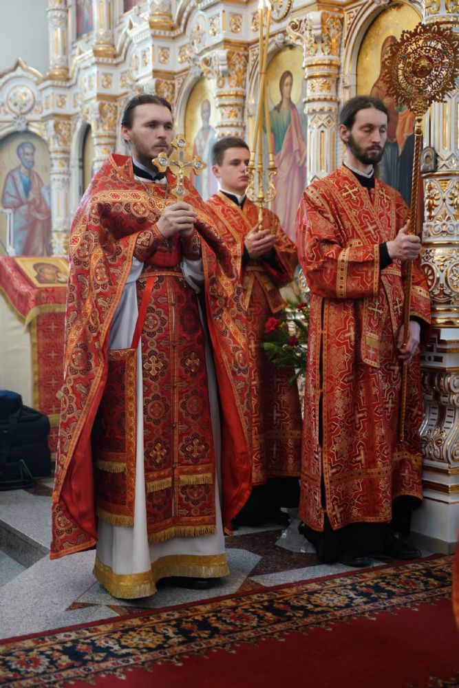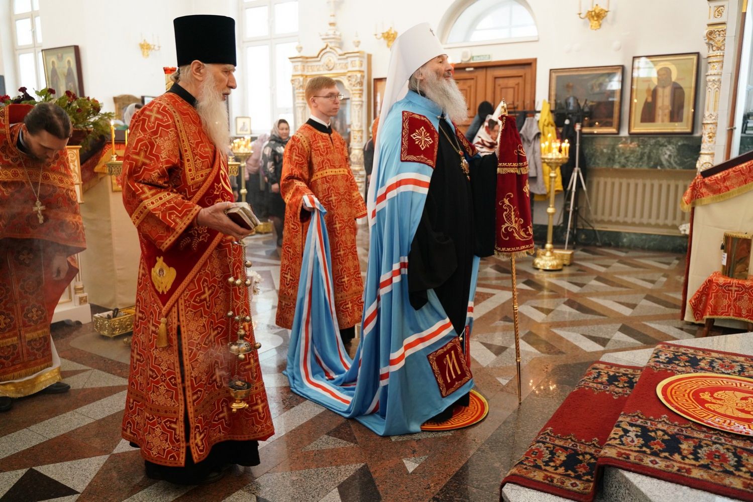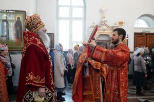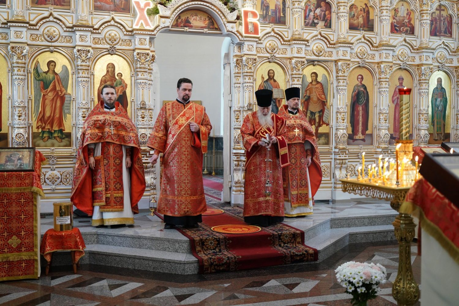 Владыке сослужили настоятель собора иерей Андрей Кочаков, клирики собора иерей Димитрий Лукьянов и диакон Алексий Кузнецов, а также протодиакон Михаил Козловский. Песнопения исполнял хор собора под управлением Алисы Вылекжаниной.