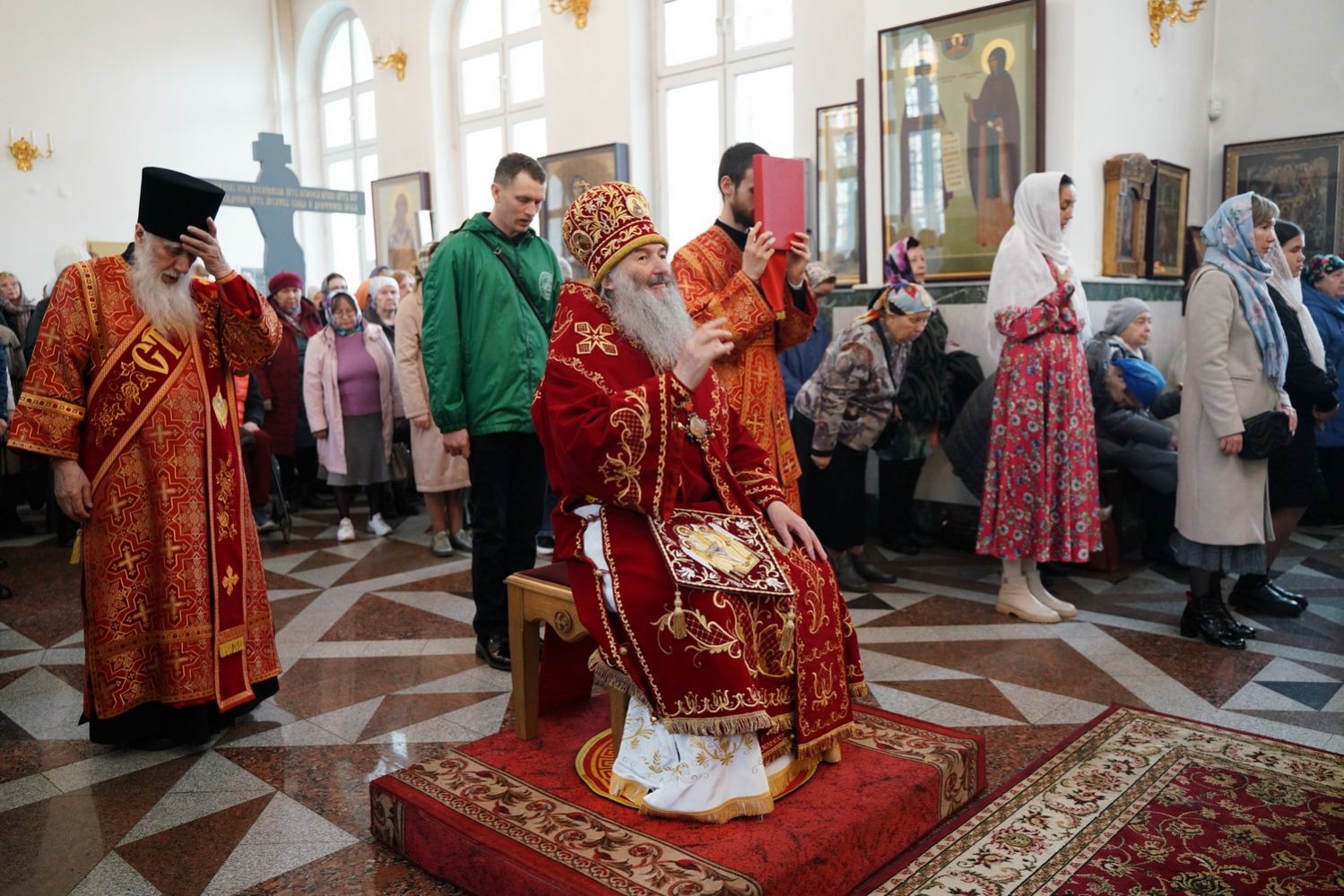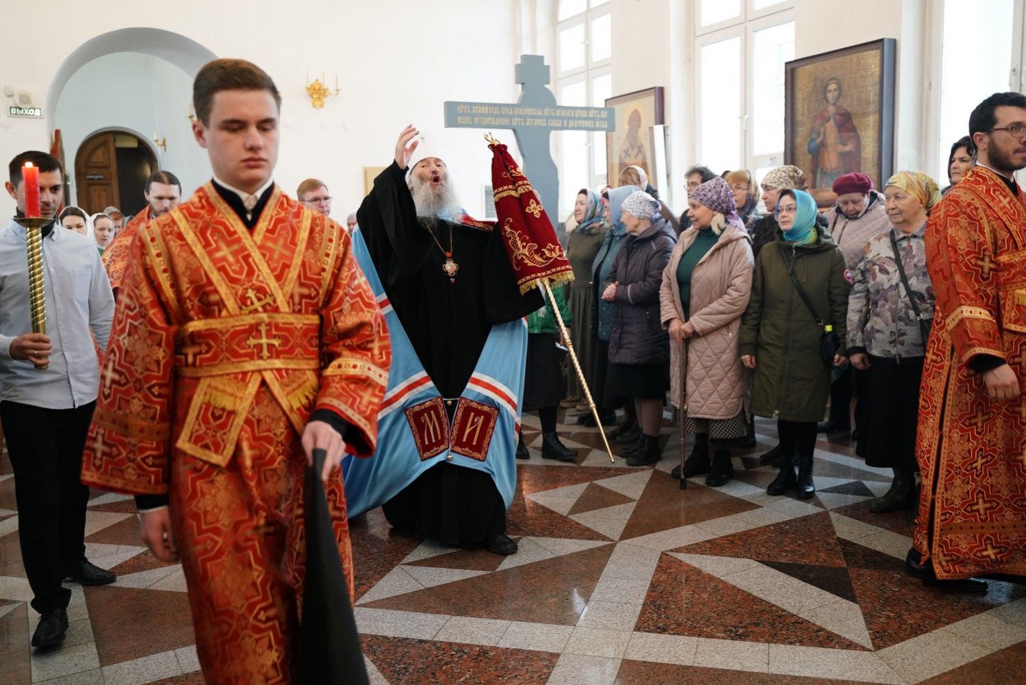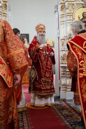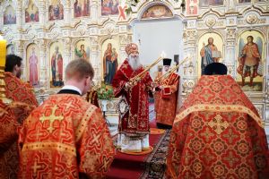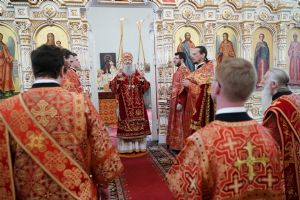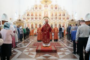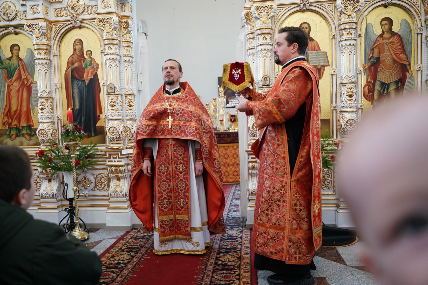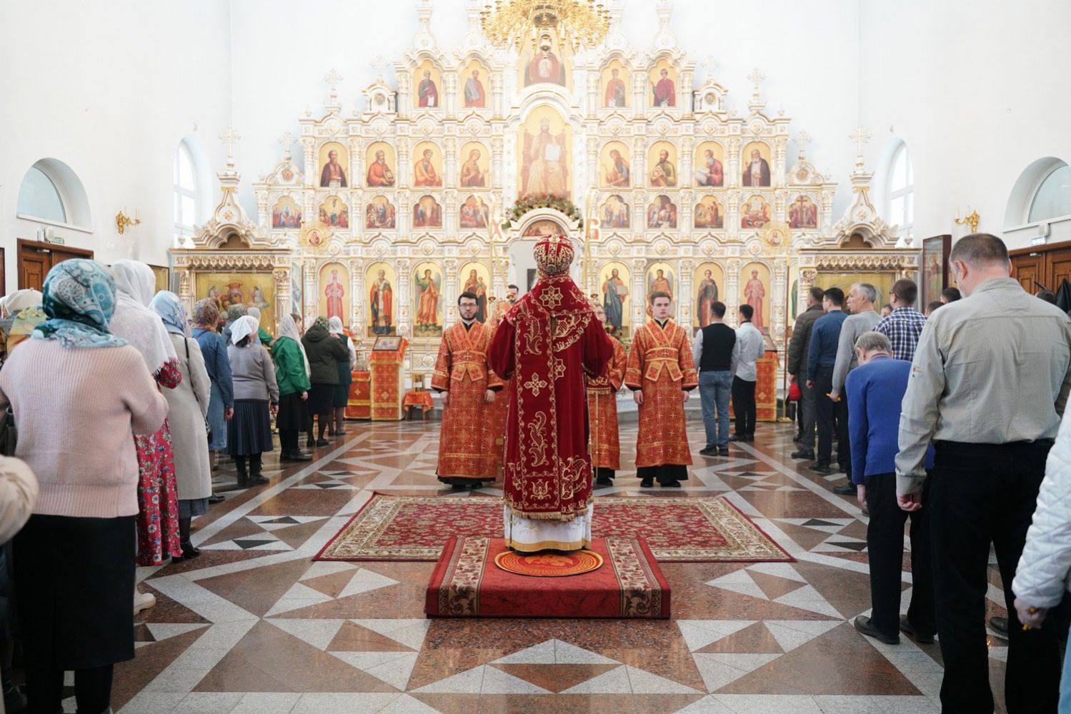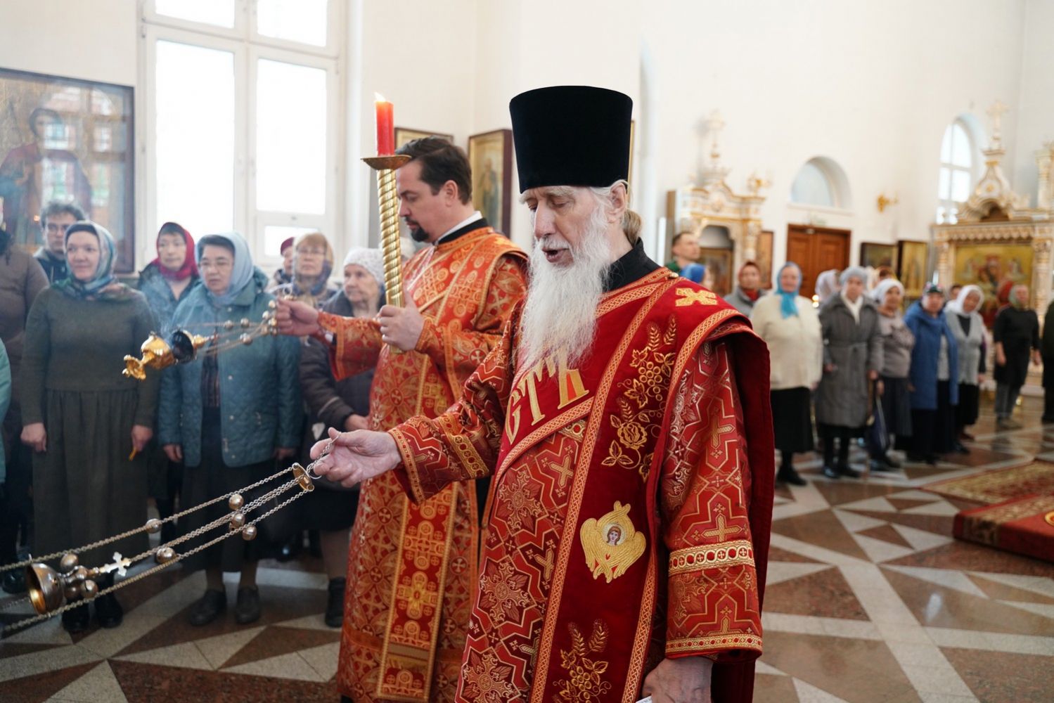 Владыке сослужили настоятель собора иерей Андрей Кочаков, клирики собора иерей Димитрий Лукьянов и диакон Алексий Кузнецов, а также протодиакон Михаил Козловский. Песнопения исполнял хор собора под управлением Алисы Вылекжаниной.