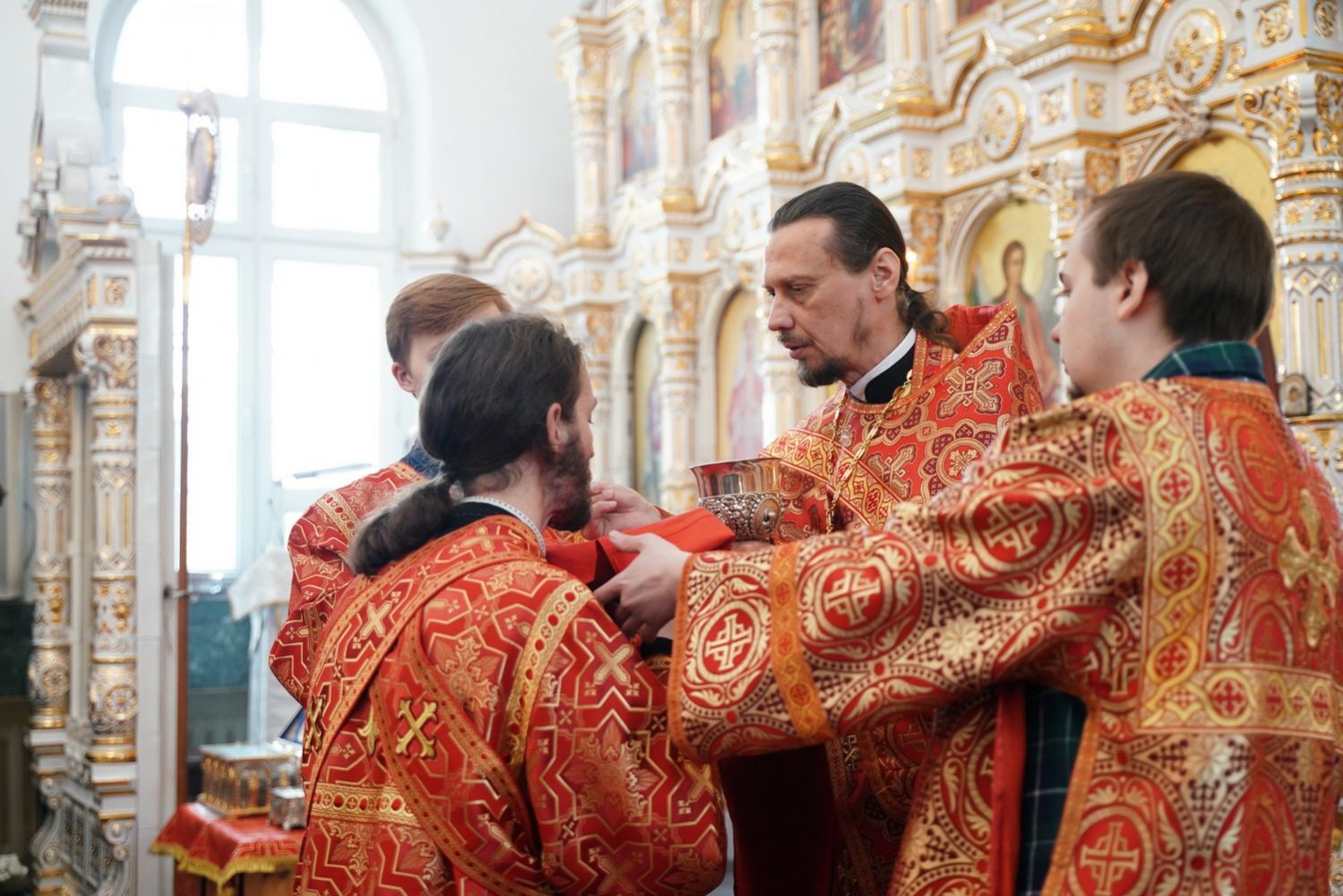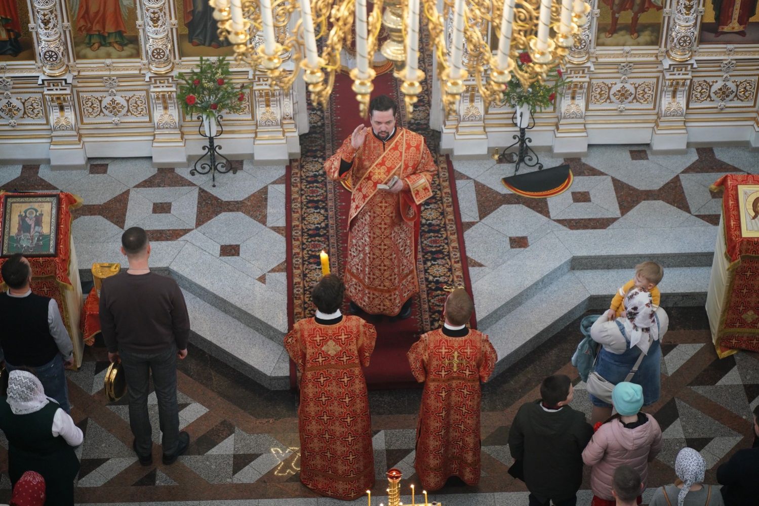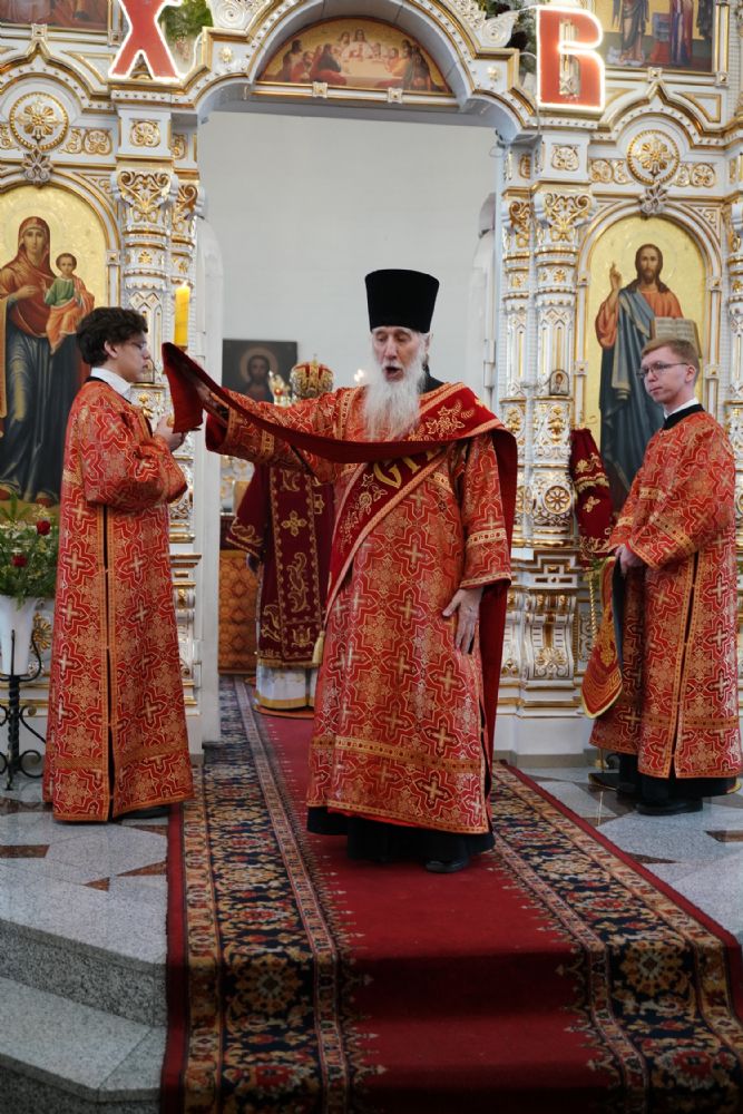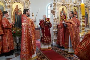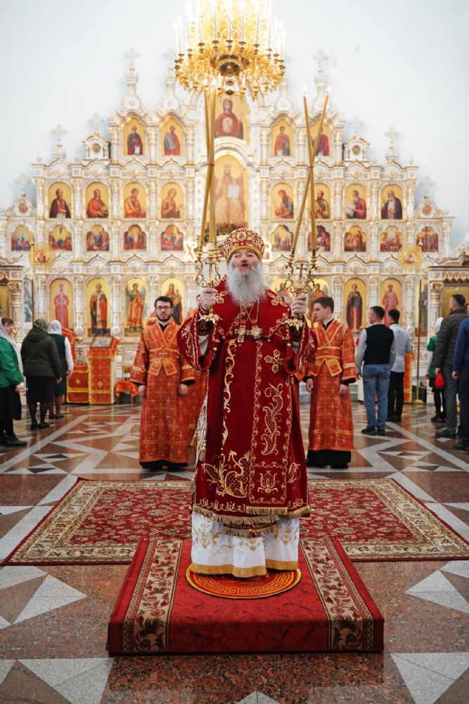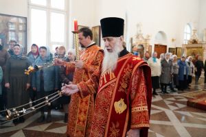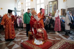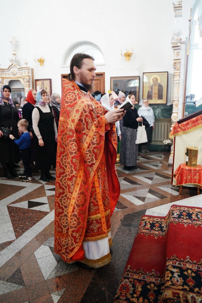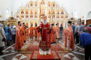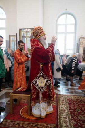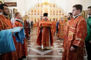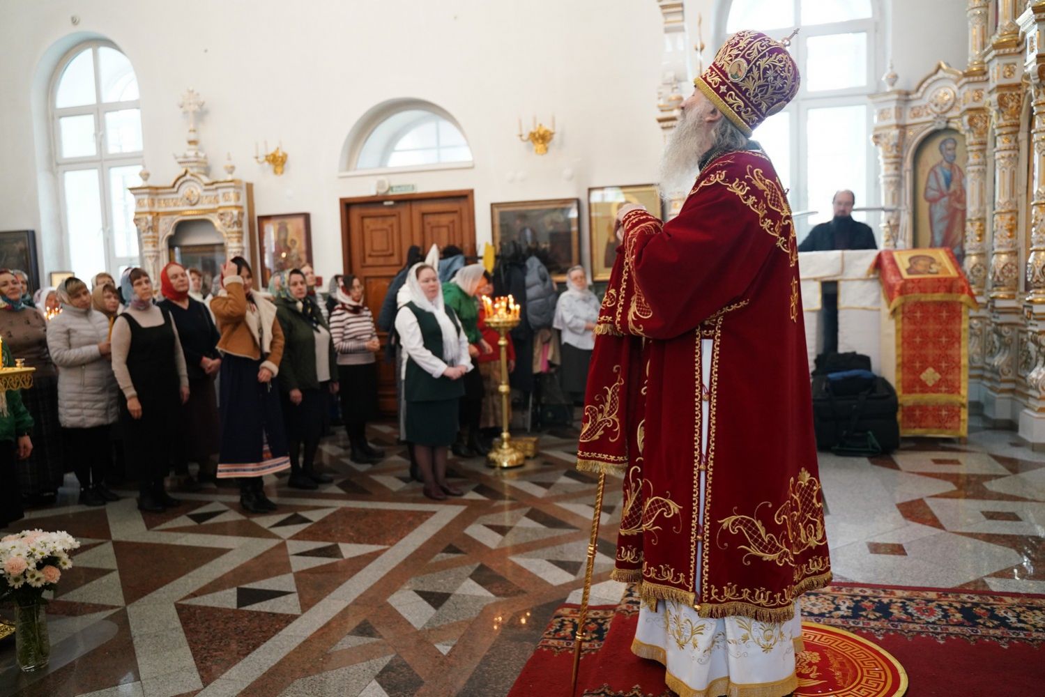 Владыке сослужили настоятель собора иерей Андрей Кочаков, клирики собора иерей Димитрий Лукьянов и диакон Алексий Кузнецов, а также протодиакон Михаил Козловский. Песнопения исполнял хор собора под управлением Алисы Вылекжаниной.