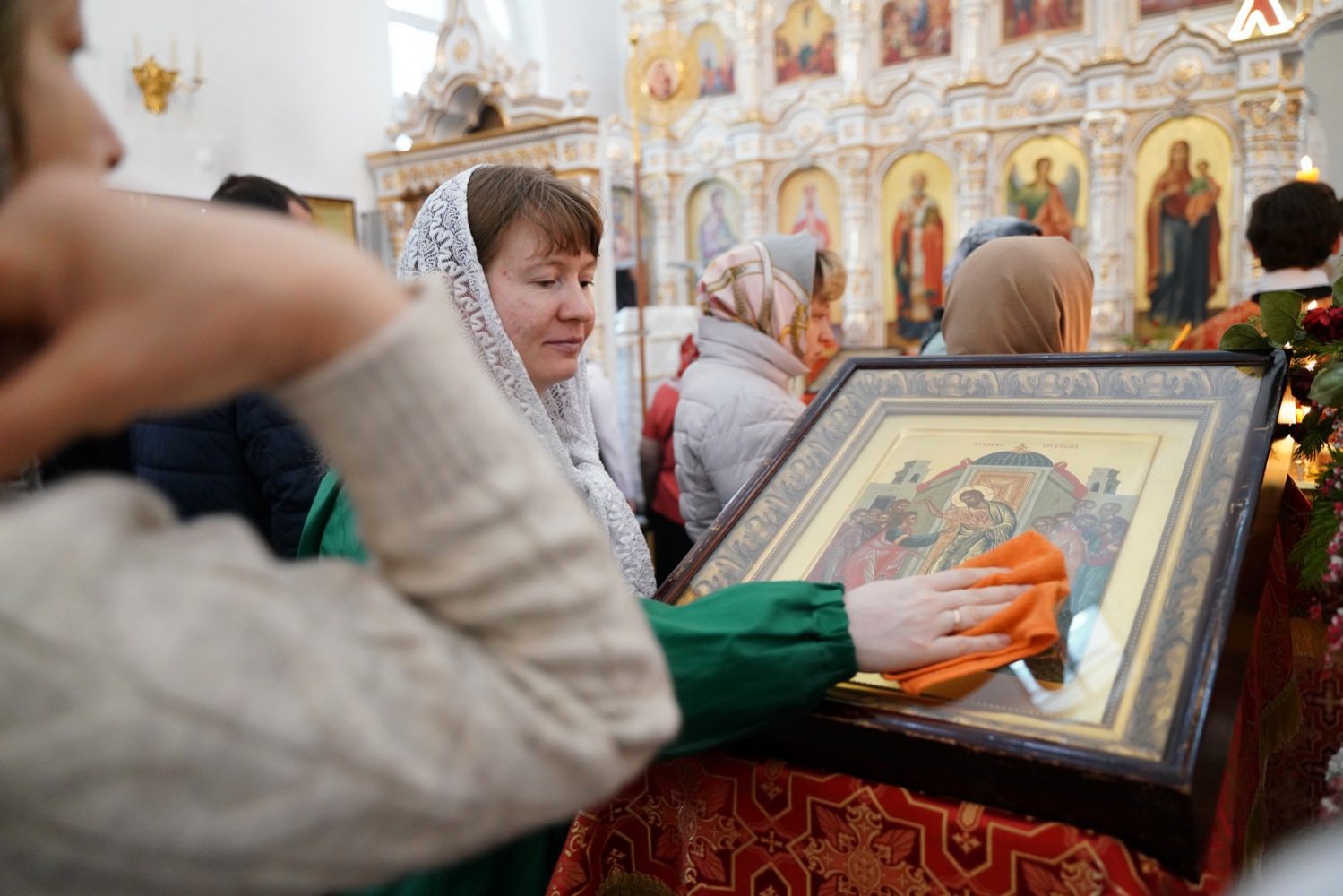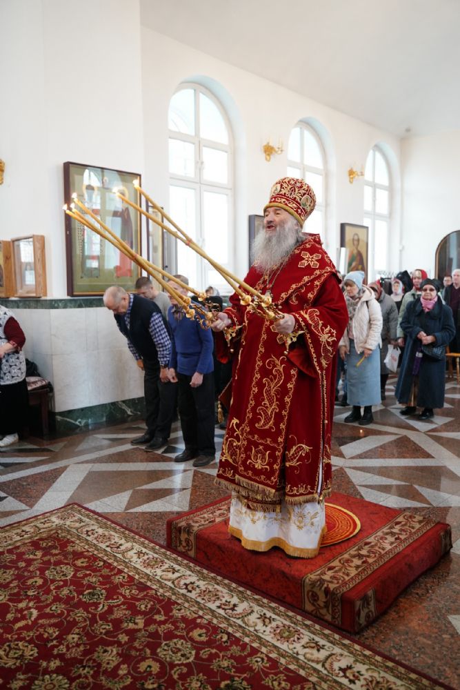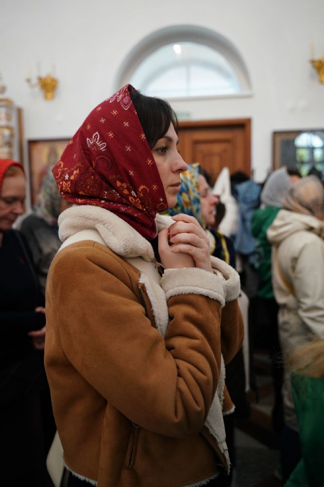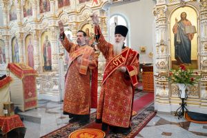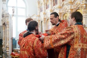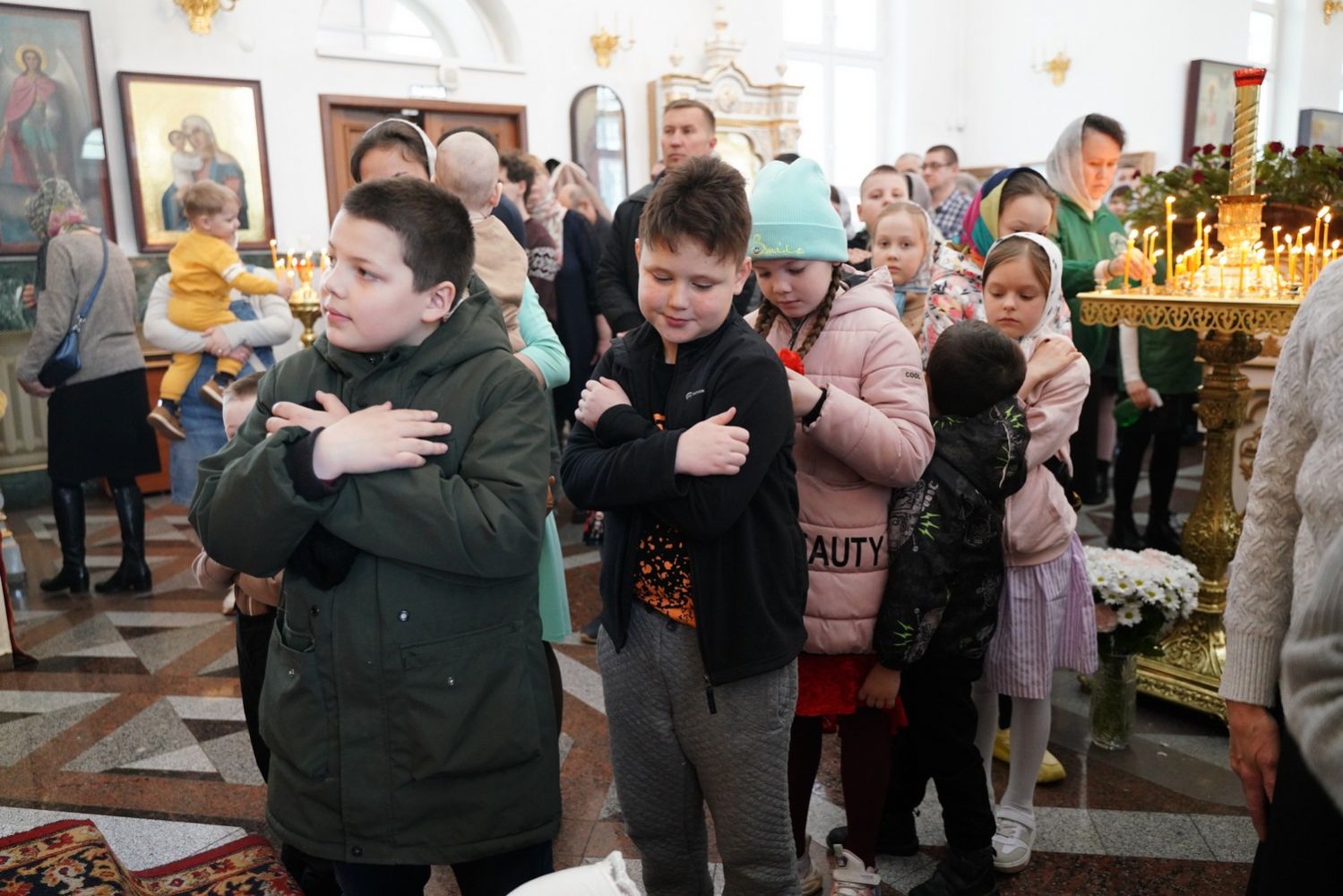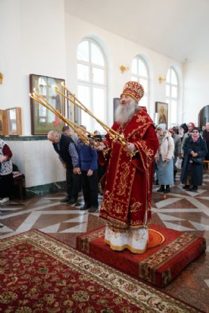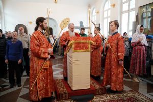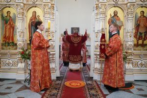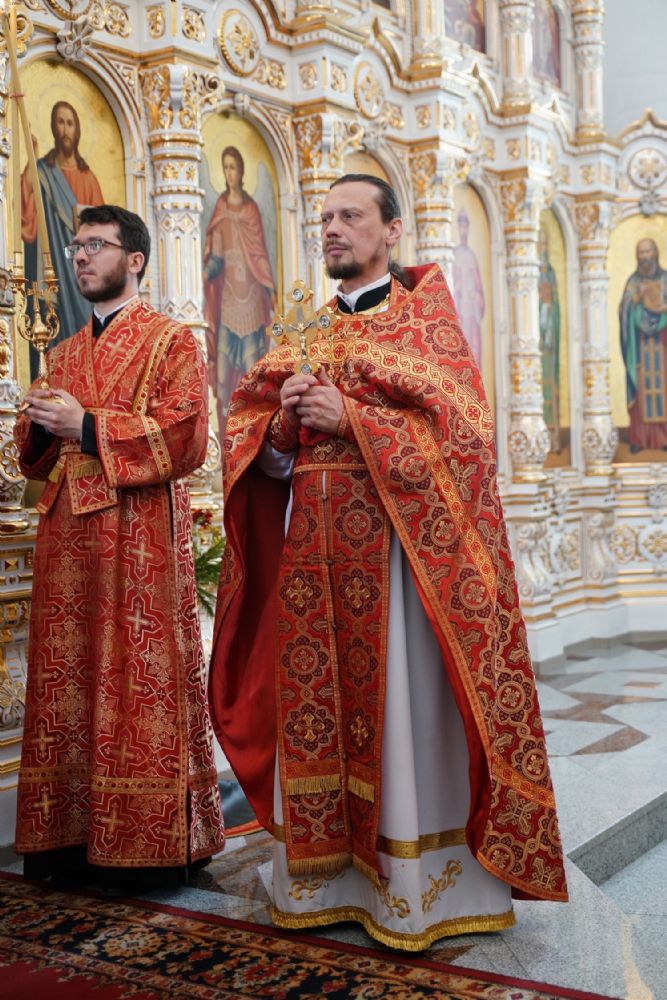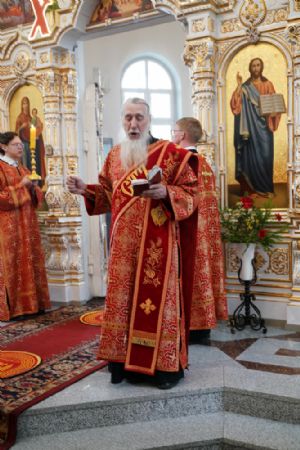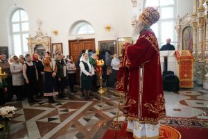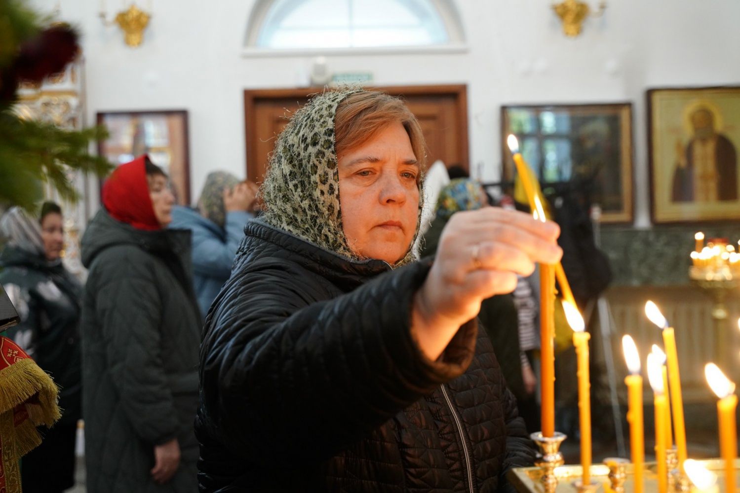 Владыке сослужили настоятель собора иерей Андрей Кочаков, клирики собора иерей Димитрий Лукьянов и диакон Алексий Кузнецов, а также протодиакон Михаил Козловский. Песнопения исполнял хор собора под управлением Алисы Вылекжаниной.