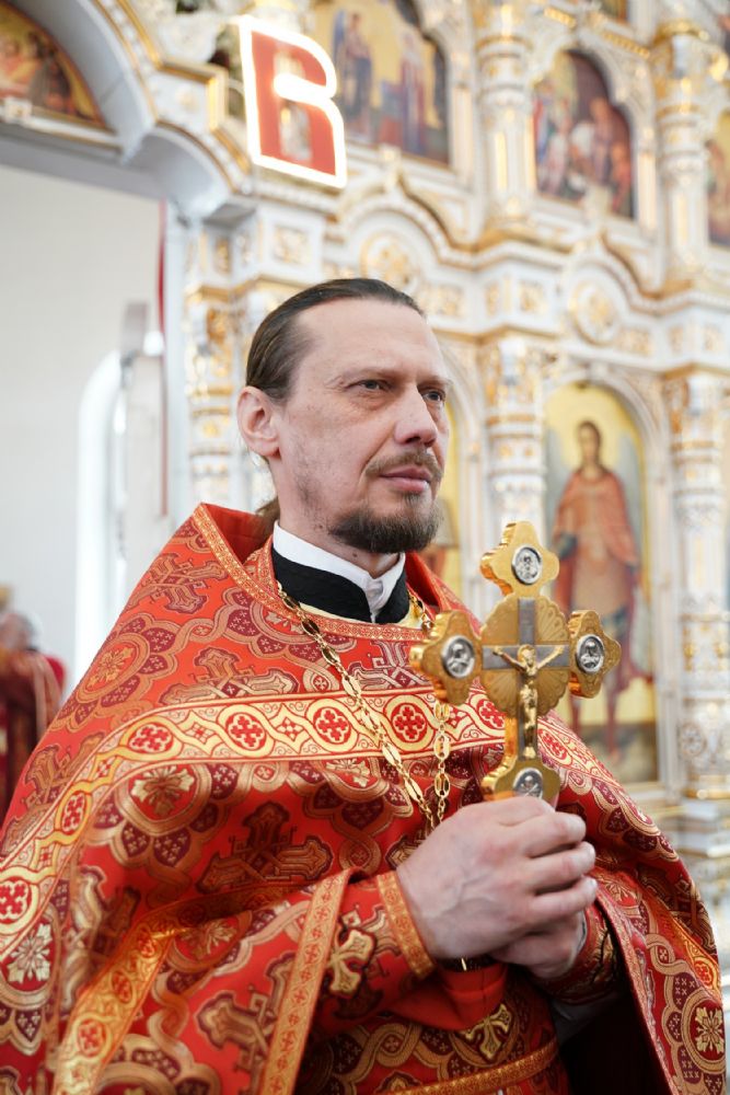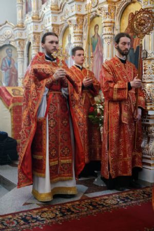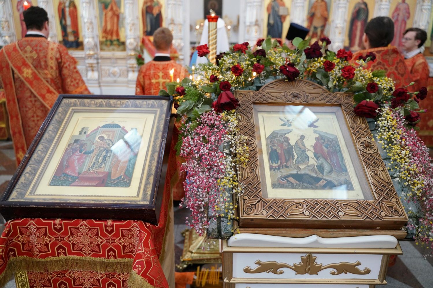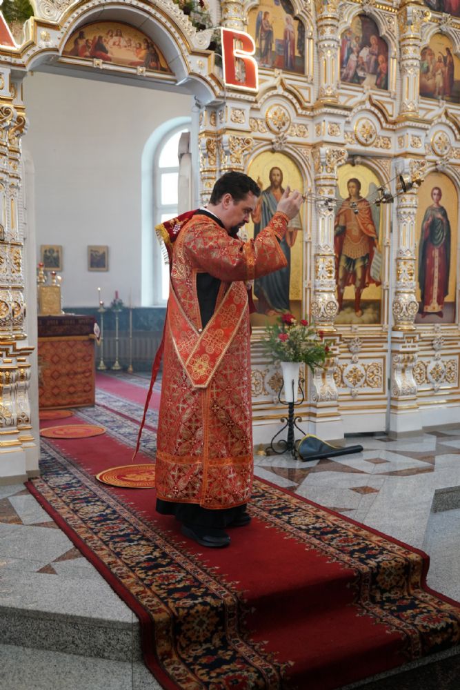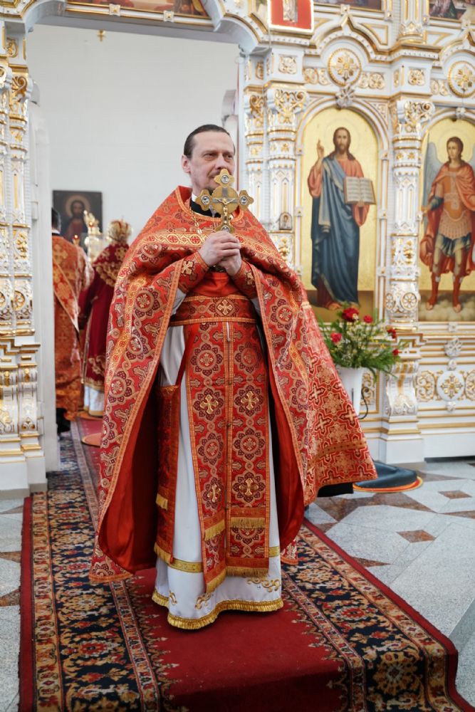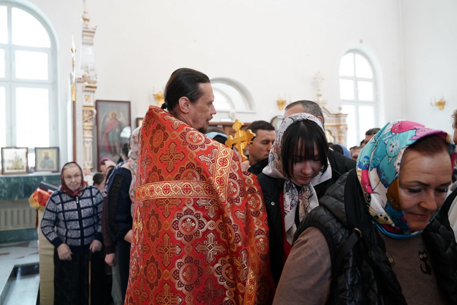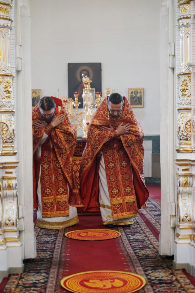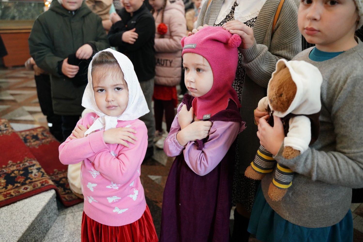 Владыке сослужили настоятель собора иерей Андрей Кочаков, клирики собора иерей Димитрий Лукьянов и диакон Алексий Кузнецов, а также протодиакон Михаил Козловский. Песнопения исполнял хор собора под управлением Алисы Вылекжаниной.