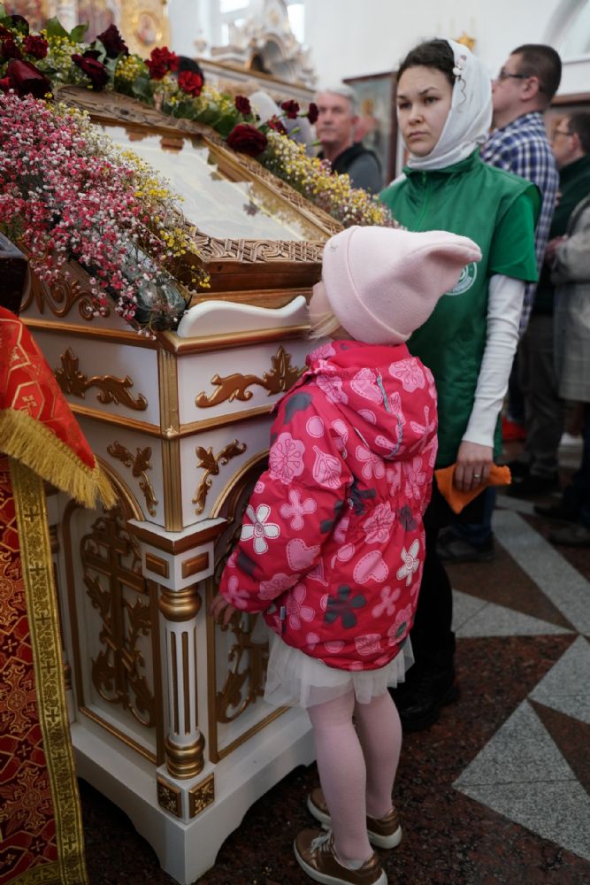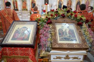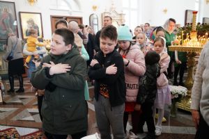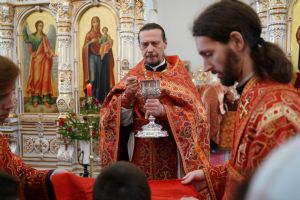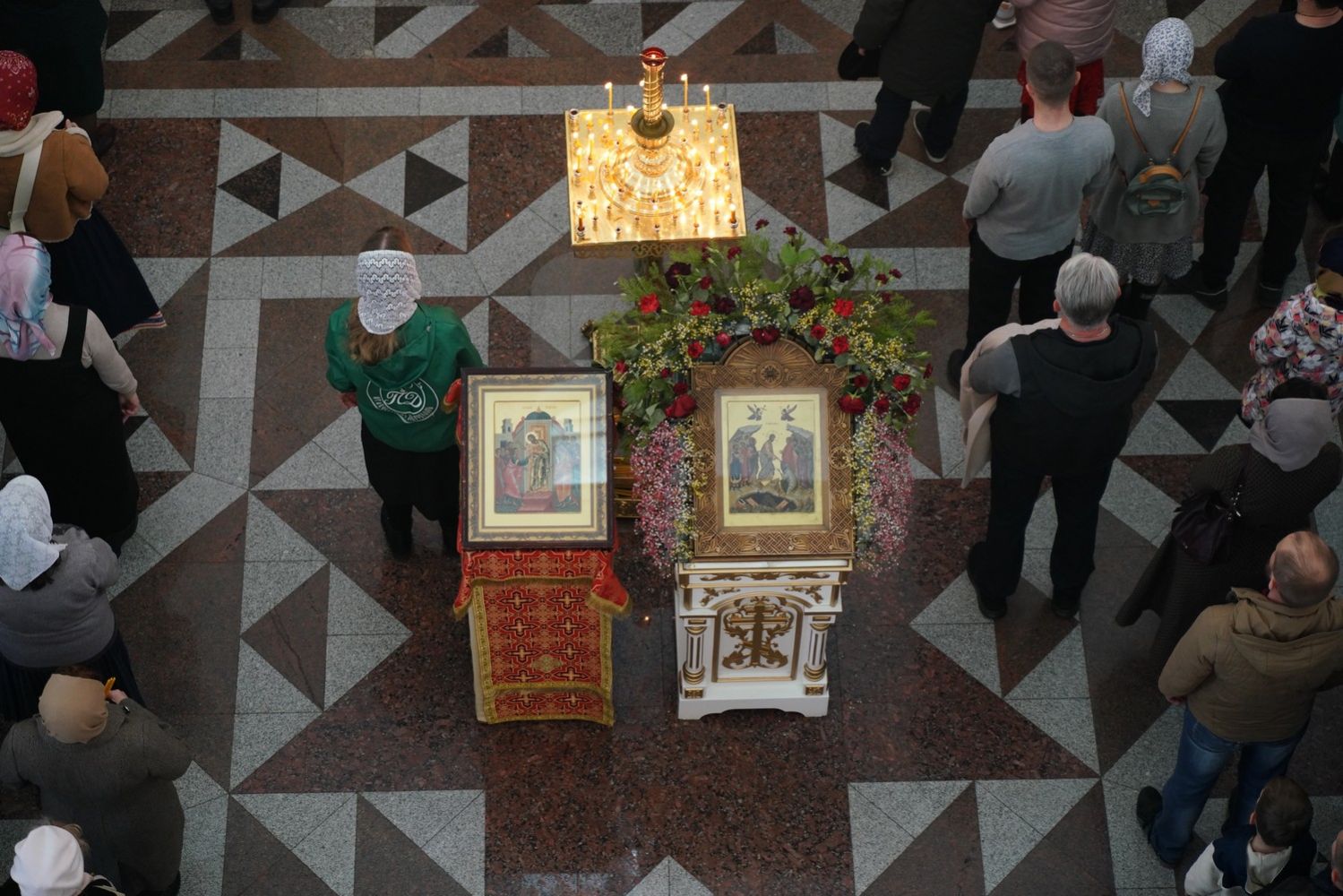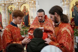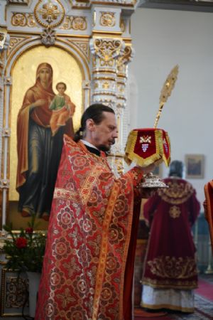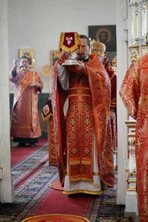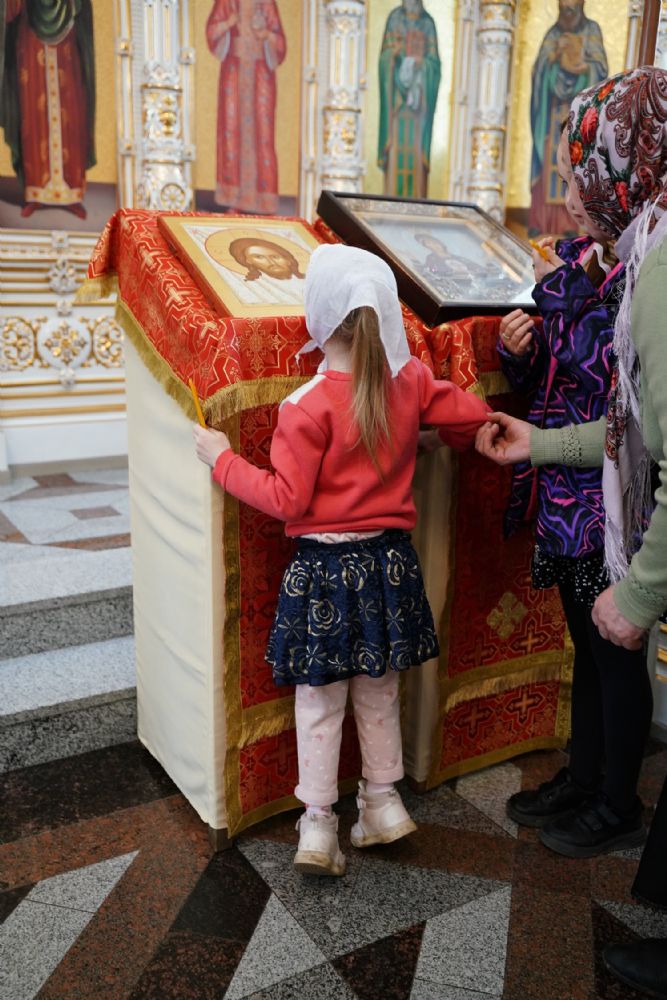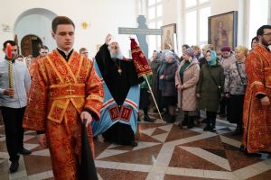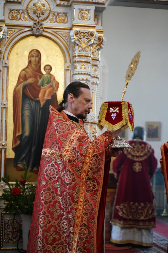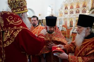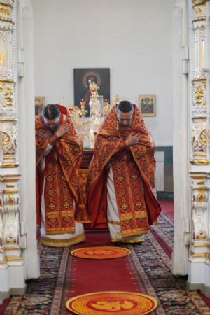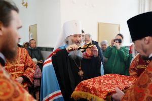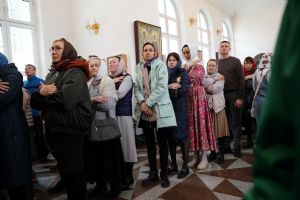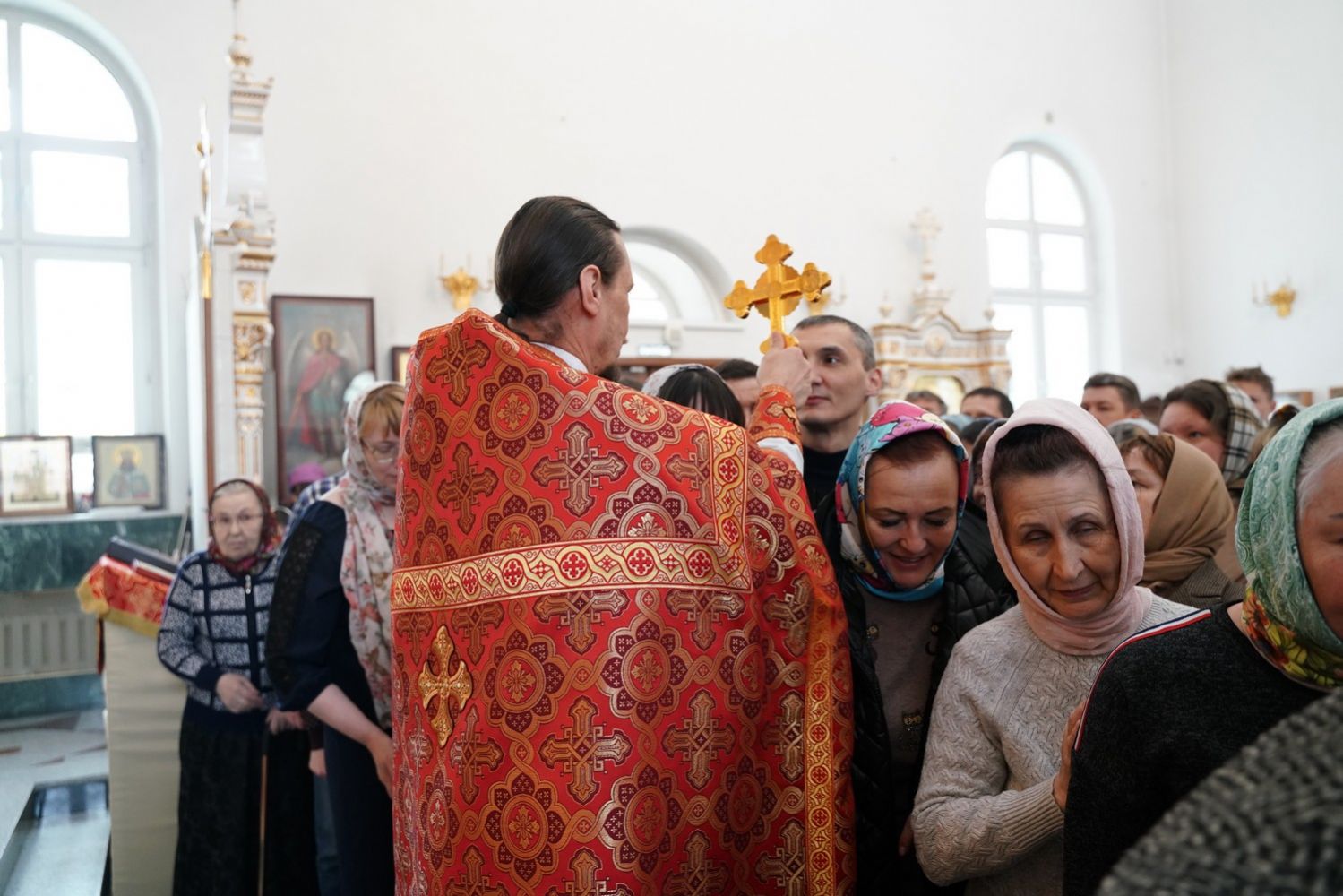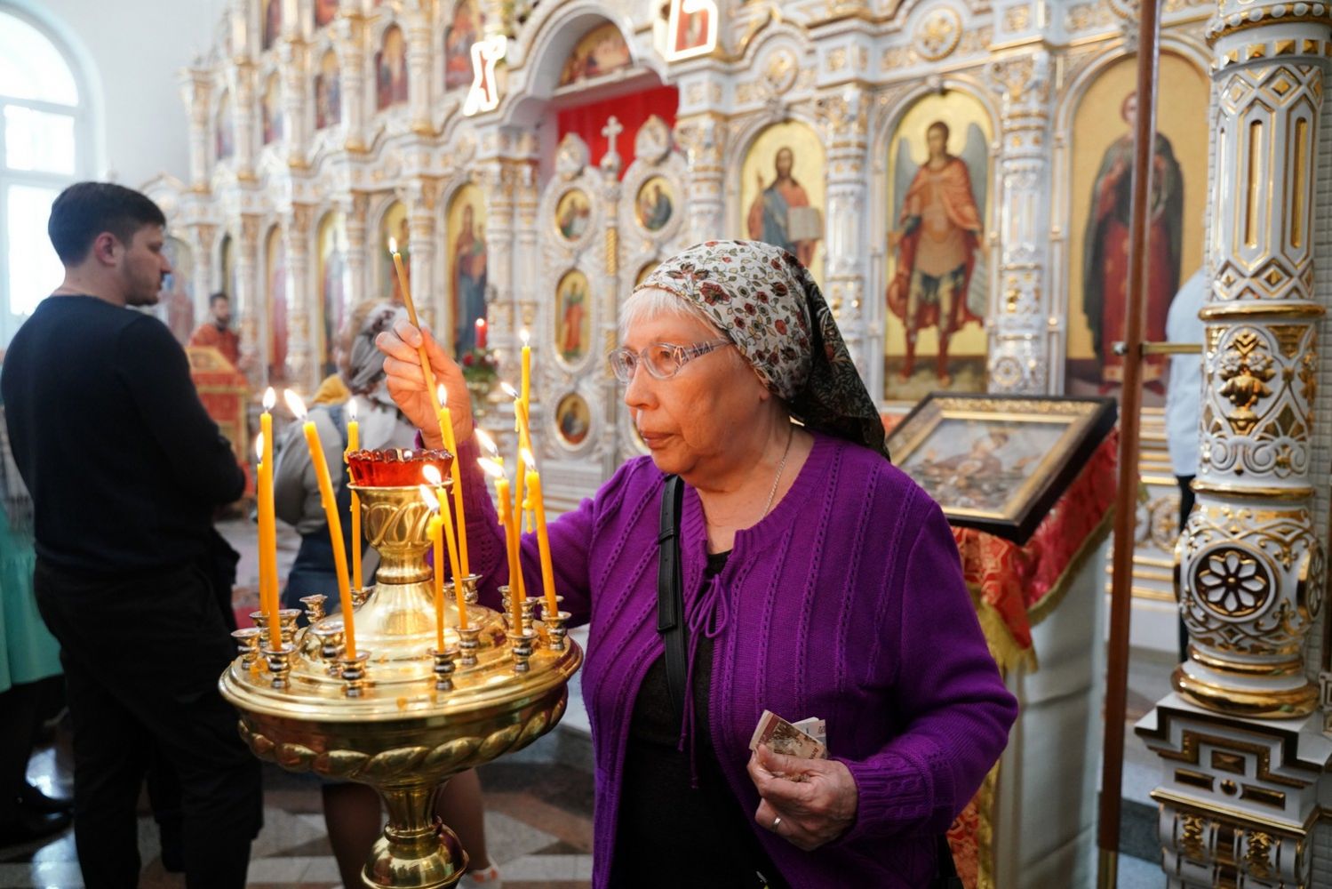 Владыке сослужили настоятель собора иерей Андрей Кочаков, клирики собора иерей Димитрий Лукьянов и диакон Алексий Кузнецов, а также протодиакон Михаил Козловский. Песнопения исполнял хор собора под управлением Алисы Вылекжаниной.