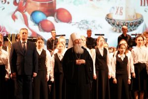 Концерт открыл академический хор колледжа культуры им. Палантая, исполнив пасхальный тропарь, затем митрополит Иоанн обратился к собравшимся в переполненном зале зрителям с архипастырским словом.