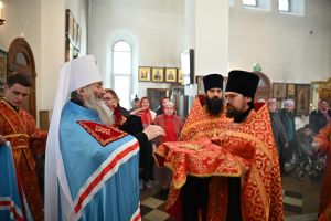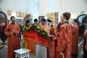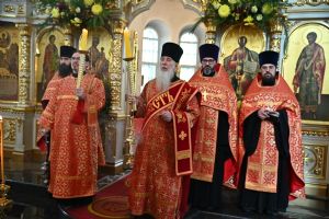 Владыке сослужили секретарь Йошкар-Олинского епархиального управления иерей Димитрий Дьяков, клирики храма иерей Никита Смирнов, иерей Евгений Симаков и диакон Димитрий Кудряшов, а также протодиакон Михаил Козловский. Песнопения исполнял хор храма под управлением регента Наталии Поповой.