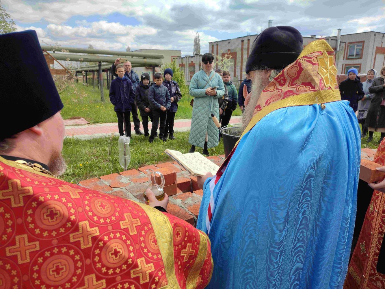 Этот чудотворный образ Пречистой Богоматери «Умиление» находится в Псково-Печерском монастыре с правой стороны от алтаря, и мы с вами духовными очами вместе с братией святой обители молимся Пречистой, чтобы Она защитила Святую Русь и всех нас от западного бесовского порабощения, сохранила наших деток, которые защищают рубежи России на украинской земле. Пусть Царица Небесная и на сем месте ниспошлет Свое благословение, сохранит жителей поселка от греховной безумной жизни и будет для вас Небесной Матерью и Хранительницей. Всех вас поздравляю с великим праздником, с закладкой храма! Христос воскресе!»