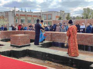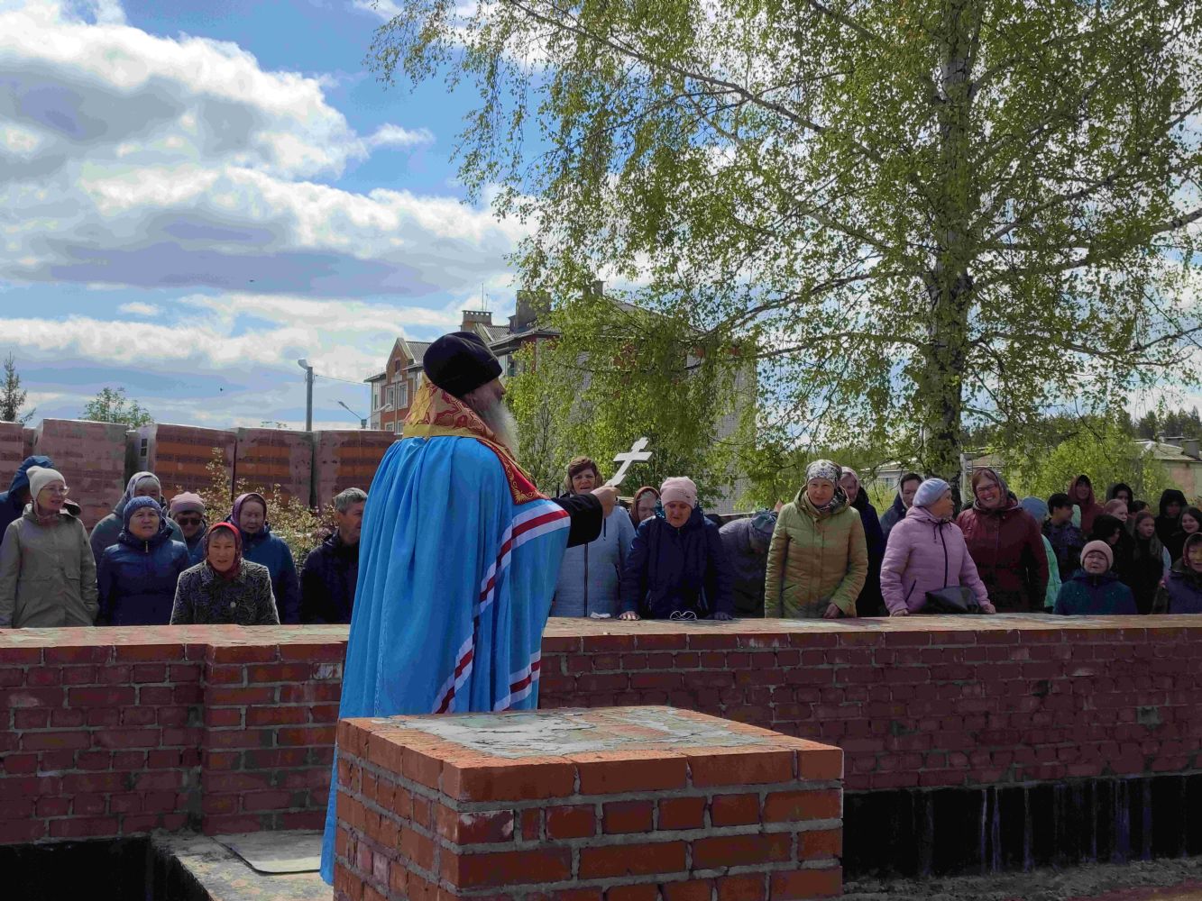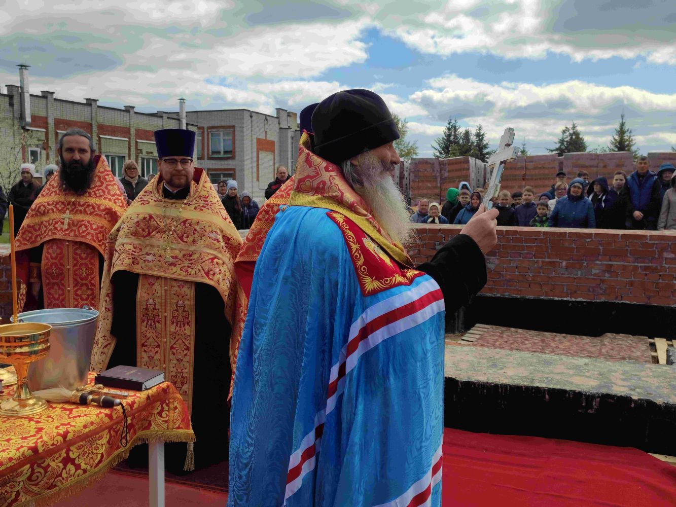 На радостное событие у строящегося храма собралось множество верующих. Митрополит Иоанн освятил камень в основание храма кроплением святой водой и помазанием елеем. Зачитав закладную грамоту с указанием имени Святейшего Патриарха и правящего архиерея, а также указанием, какие мощи будут заложены в престол при будущем освящении храма, владыка вложил капсулу в основание алтарной стены.