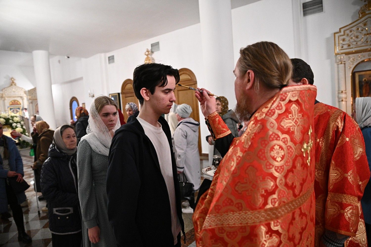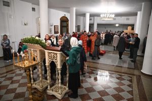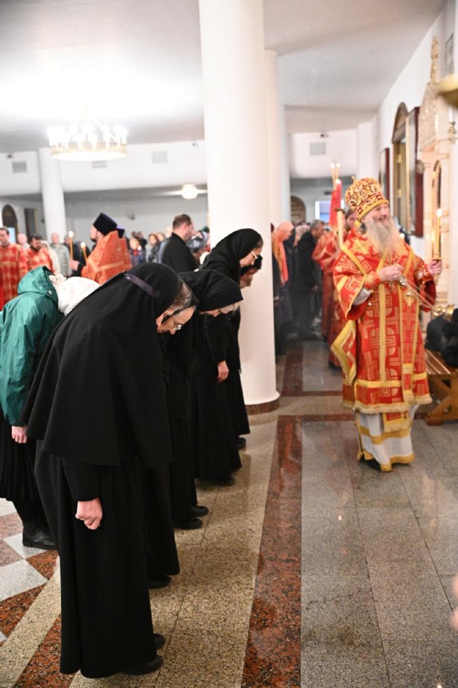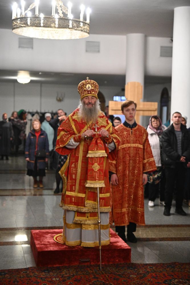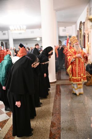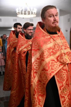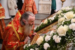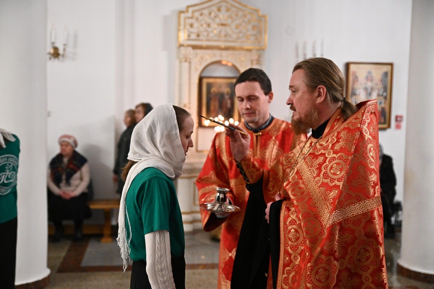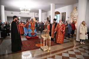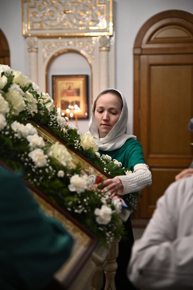 Его Высокопреосвященству сослужили ключарь собора протоиерей Сергий Поглазов, клирики собора иереи Никифор Захаров, Евгений Самойлов, Александр Староверов и Иоанн Милютин, диаконы Андрей Дружинин и Артемий Бобоч, а также протодиакон Михаил Козловский. Песнопения исполнял малый состав хора «Благовест» под управлением Татьяны Черновой.