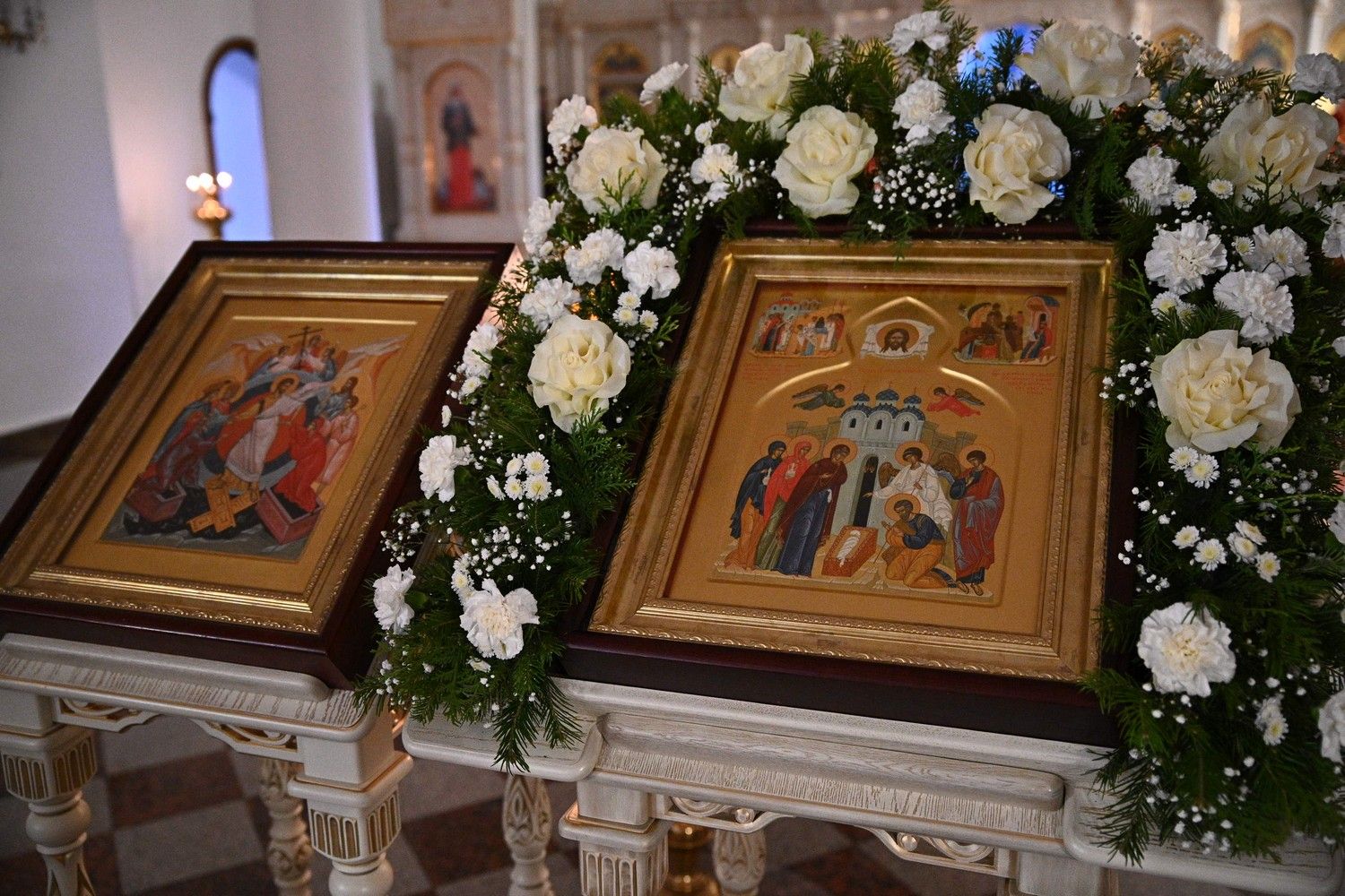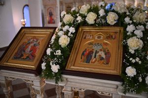 13 мая вечером, накануне Радоницы, которая в этом году совпала с праздником явления иконы Божией Матери «Мироносицкая», митрополит Йошкар-Олинский и Марийский Иоанн совершил всенощное бдение в нижнем храме Благовещенского кафедрального собора г. Йошкар-Олы, освященном в честь Мироносицкой иконы.