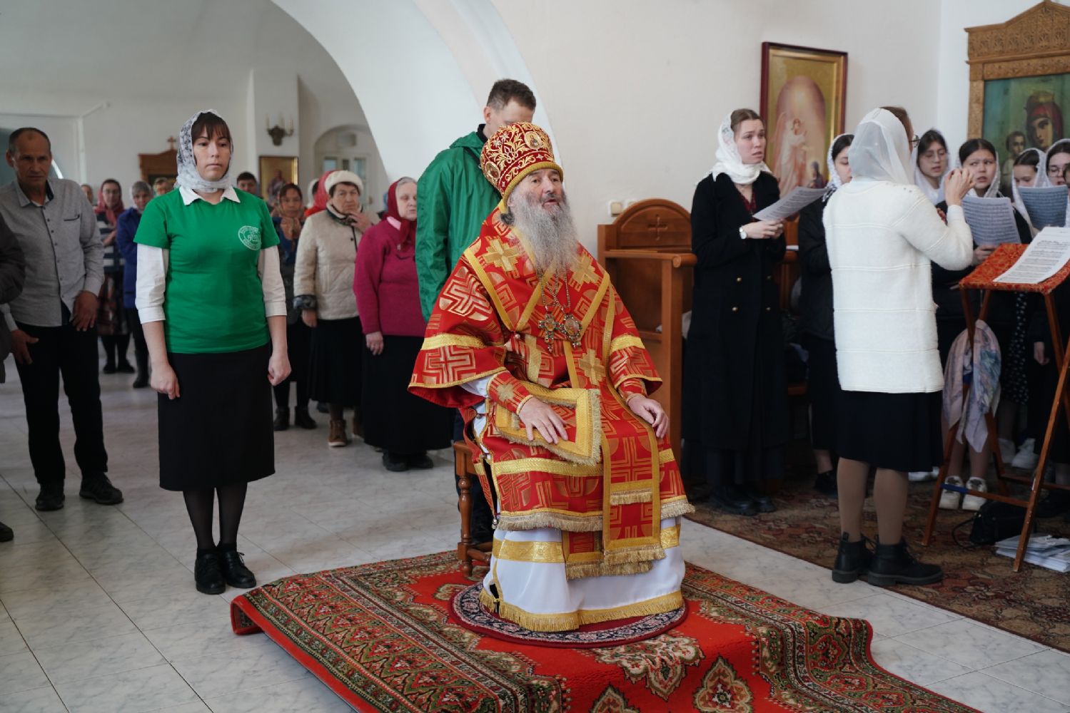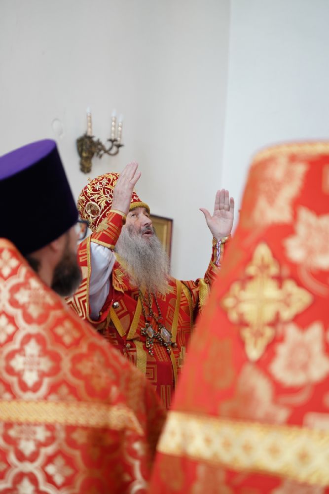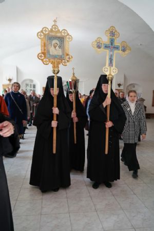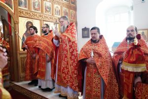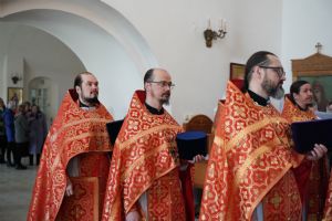 Архипастырю сослужили секретарь Йошкар-Олинского епархиального управления иерей Димитрий Дьяков, клирик монастыря иерей Михаил Лежнин и духовенство храмов г. Йошкар-Олы. Песнопения исполнял детско-юношеский хор «Благовест» под управлением Татьяны Черновой.