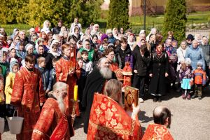 После Литургии прошел крестный ход вокруг храма, в конце которого была совершена пасхальным чином поминальная лития по всем усопшим православным христианам.