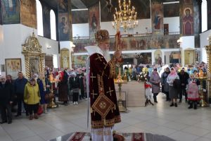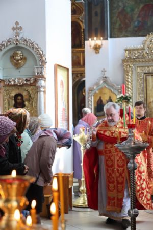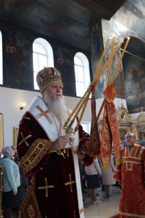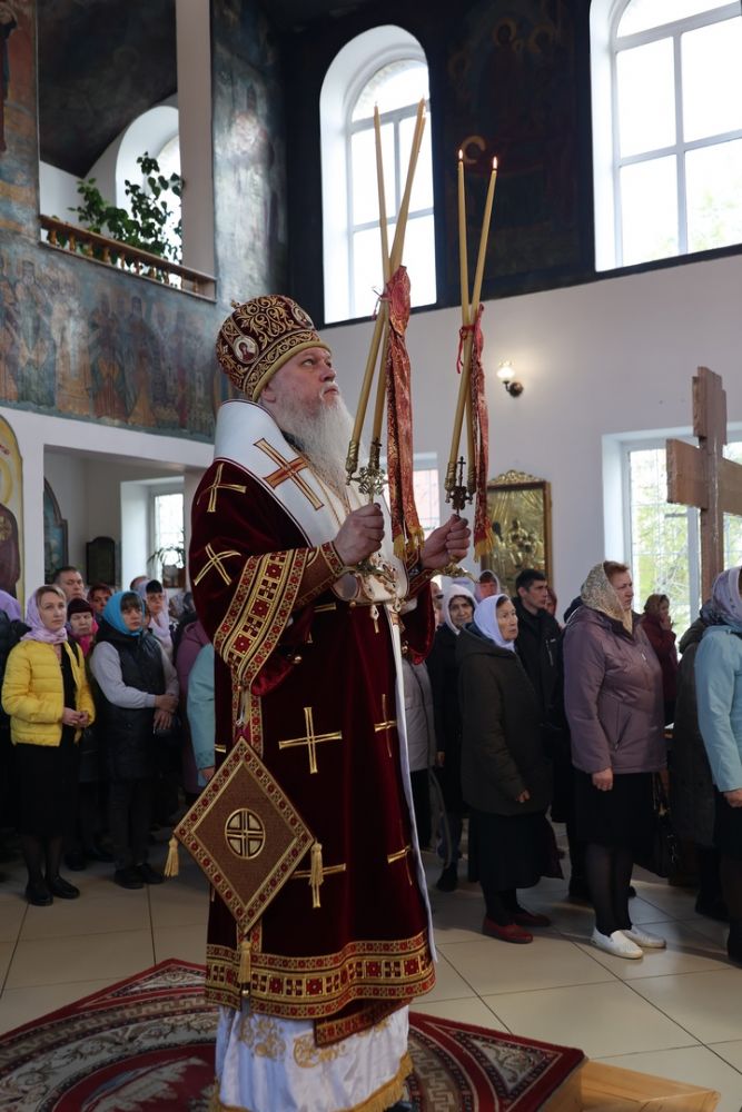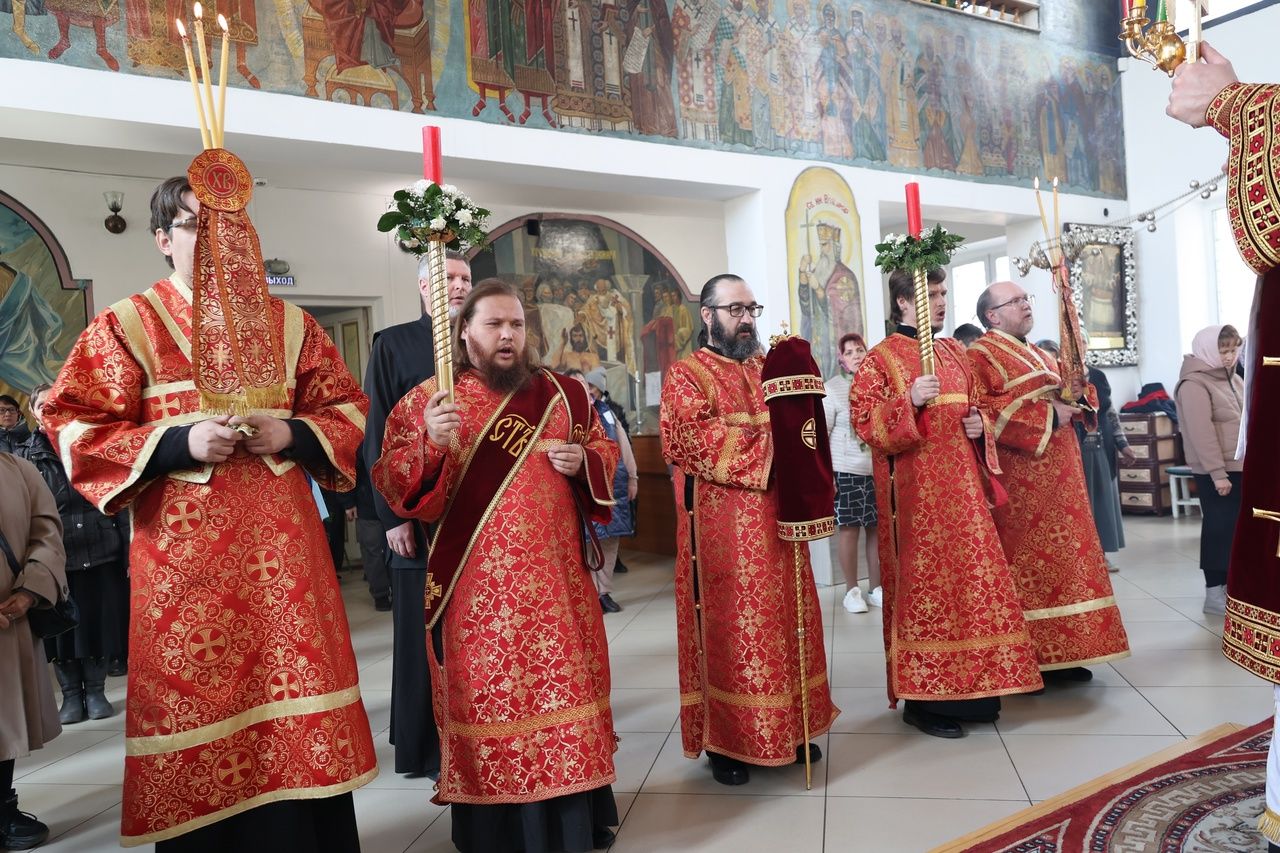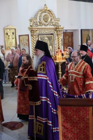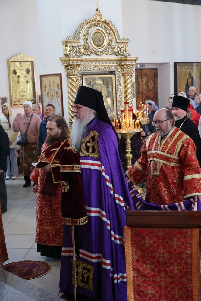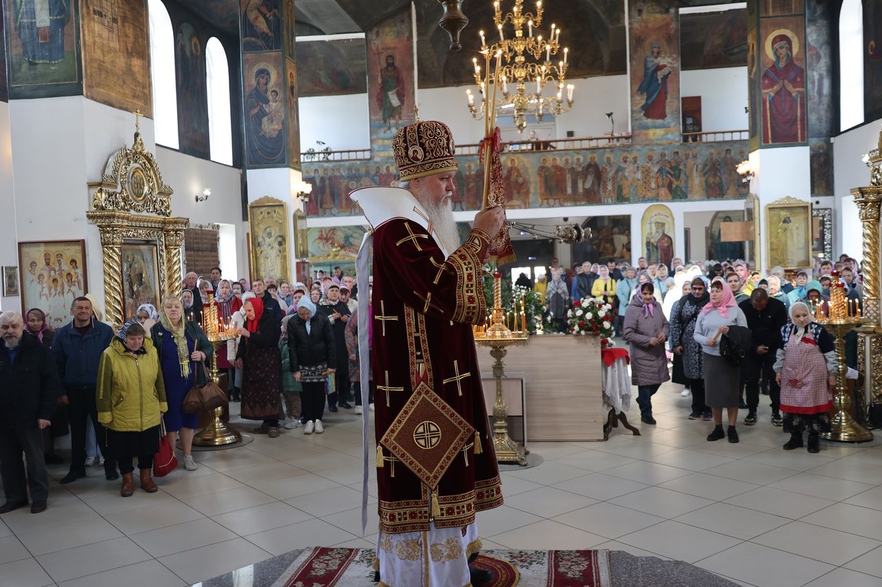 Архипастырю сослужили клирики собора, песнопения исполнял архиерейский хор под управлением Любови Михеевой.