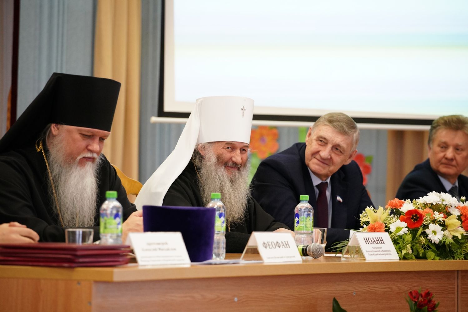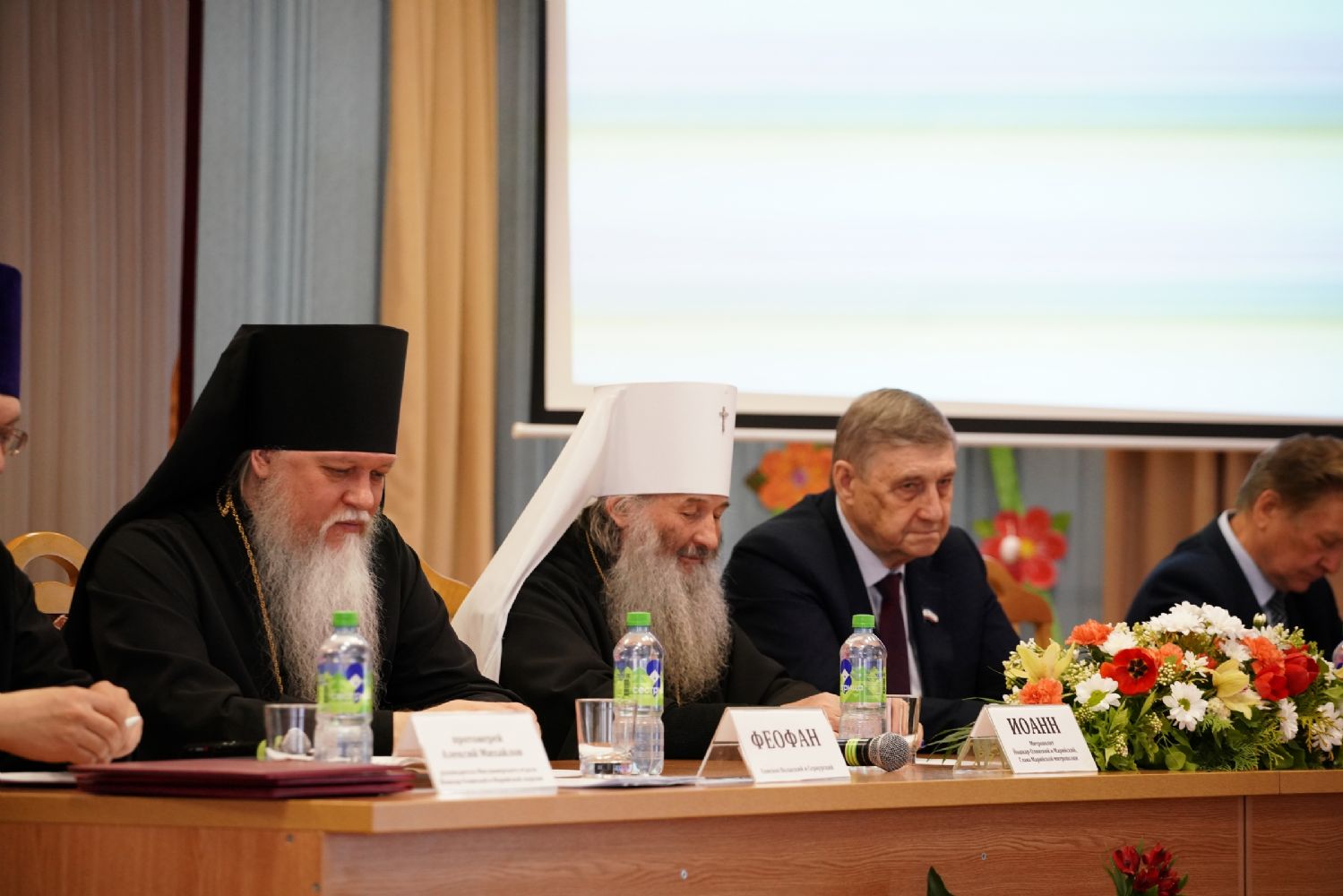 Затем участников конференции поприветствовал епископ Волжский и Сернурский Феофан, поздравив всех с продолжающимся праздником Светлого Христова Воскресения и отметив особое попечение Пресвятой Богородицы о Марийской земле.