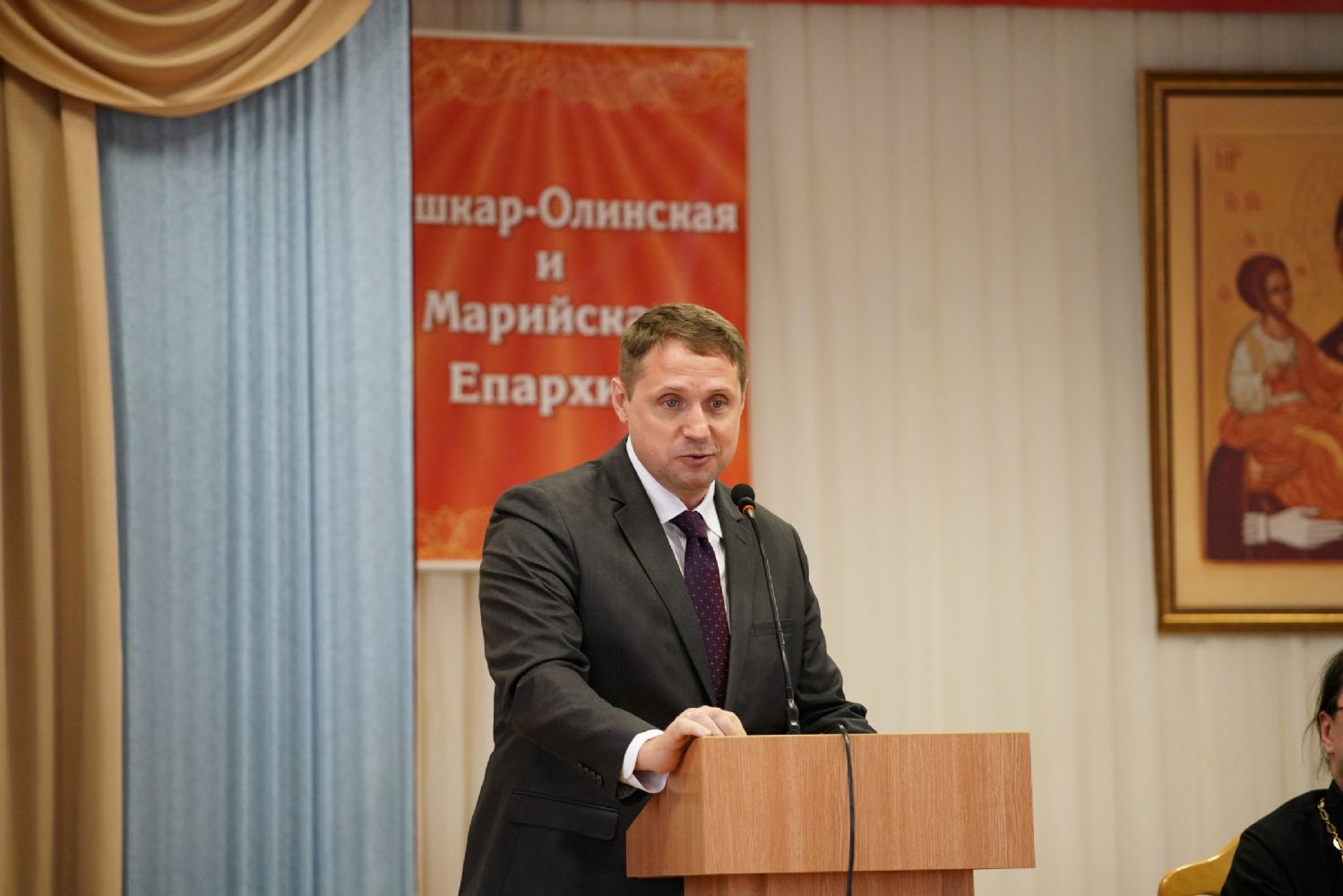Заместитель Министра культуры, печати и по делам национальностей РМЭ Игорь Садовин огласил приветствие в адрес участников чтений от Главы Республики Юрия Зайцева.