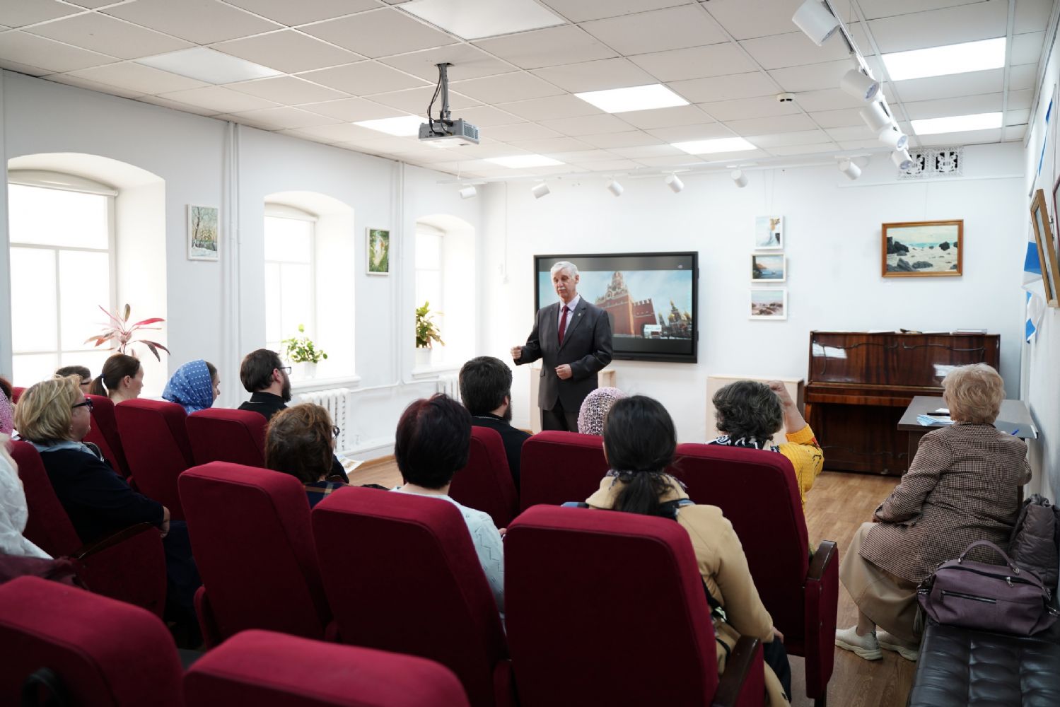 В рамках пленарного заседания были заслушаны три доклада. Доктор исторических наук, профессор Марийского государственного университета Стариков Сергей Валентинович представил глубокий и интересный доклад «Йошкар-Ола: основные вехи истории и культуры (1584-2024)». Заведующая кафедрой сервиса и туризма Поволжского государственного технологического университета, кандидат исторических наук, доцент Васина Светлана Михайловна ознакомила собравшихся со своими научными исследованиями на тему «Просветительская деятельность приходского духовенства Марийского края в XIX – начале XX вв.». Кандидат исторических наук, доцент Марийского государственного университета Алметьева Ирина Валерьевна выступила с докладом «Учебные заведения Царевококшайска в XIX – начале ХХ веков».