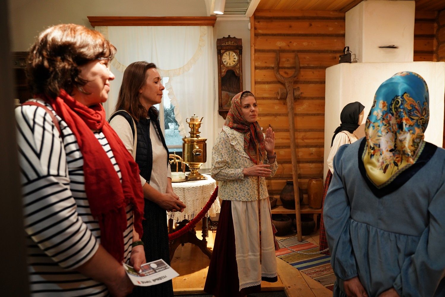 В ходе работы семинара Ирина Владимировна Юдина дала краткую информацию о Музее истории города Йошкар-Олы, который был открыт в 1996 году. На конец 2023 г. в фондах музея насчитывается более 27000 экспонатов, среди которых ценные коллекции фотографий с видами города конца XIX-начала XXвв., постоянная экспозиция музея «Город Царевококшайск – уездный центр». Собравшиеся посмотрели фильм о Царевококшайске, созданный сотрудниками музея на основе очерка «Город Царевококшайск (журнал «Нива», 1901 г.) В.А. Мошкова, а затем стали участниками музейной интерактивной программы «Уездный город N», которая объединяет историю старинного города Царевококшайска и русскую традиционную культуру. Участники отправились путешествовать в прошлое, на сто лет назад, в провинциальный город Царевококшайск. В ходе программы узнали, как жили царевококшайцы (большинство населения составляли русские), чем они занимались, как проводили свой досуг.