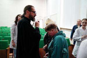 С приветственными словами к собравшимся обратились митрополит Йошкар-Олинский и Марийский Иоанн, и.о. министра здравоохранения РМЭ Татьяна Бастракова и директор медколледжа Леонид Рыжков.