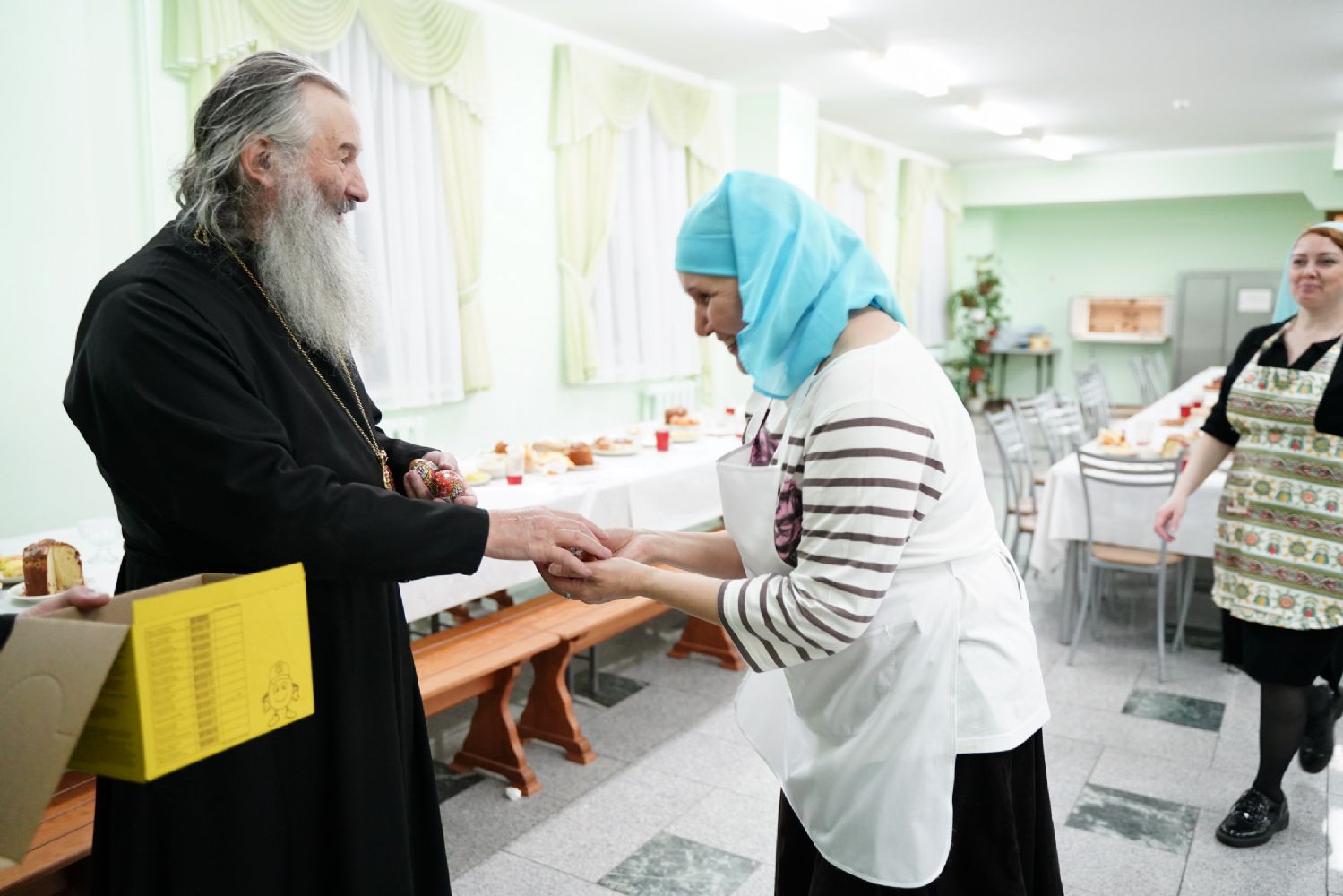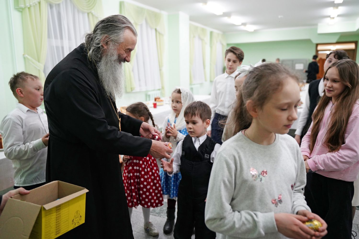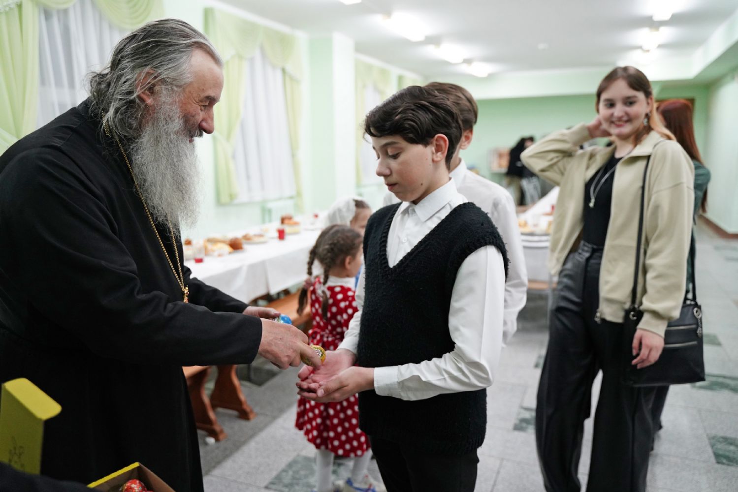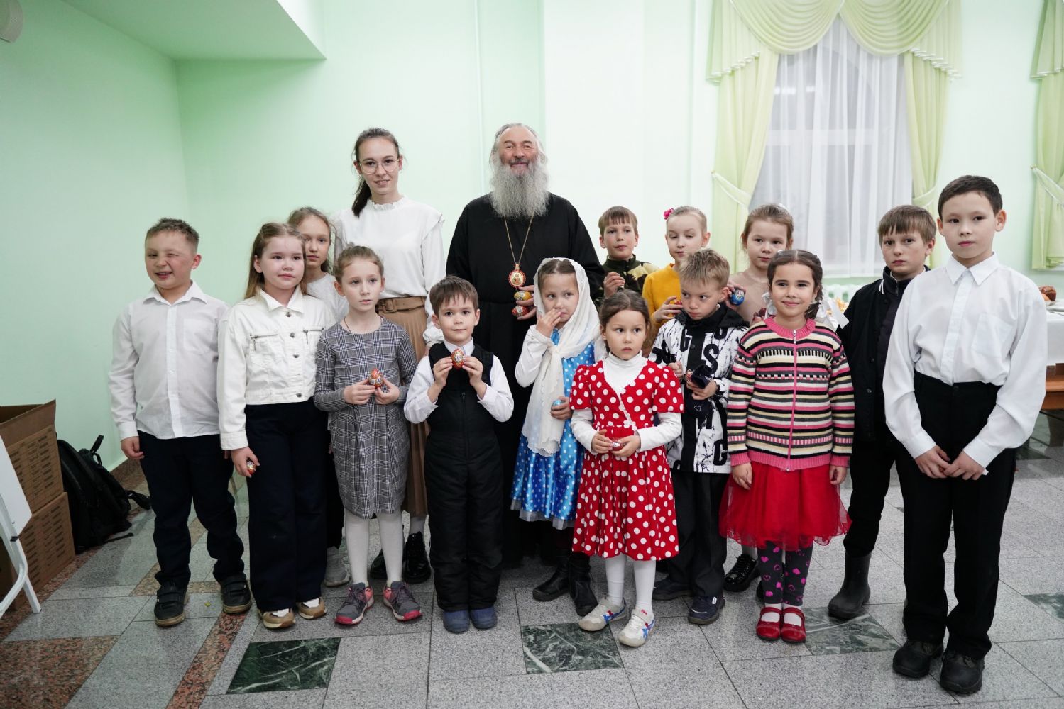Завершился праздник чаепитием в трапезной Православного центра, после которого митрополит Иоанн всем участникам концерта вручил шоколадные пасхальные яйца.