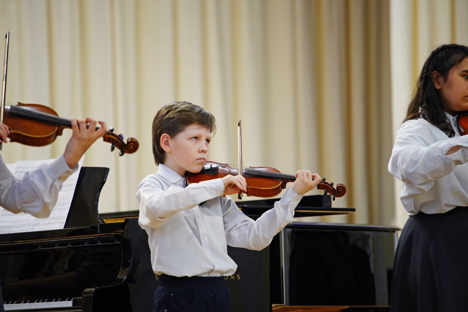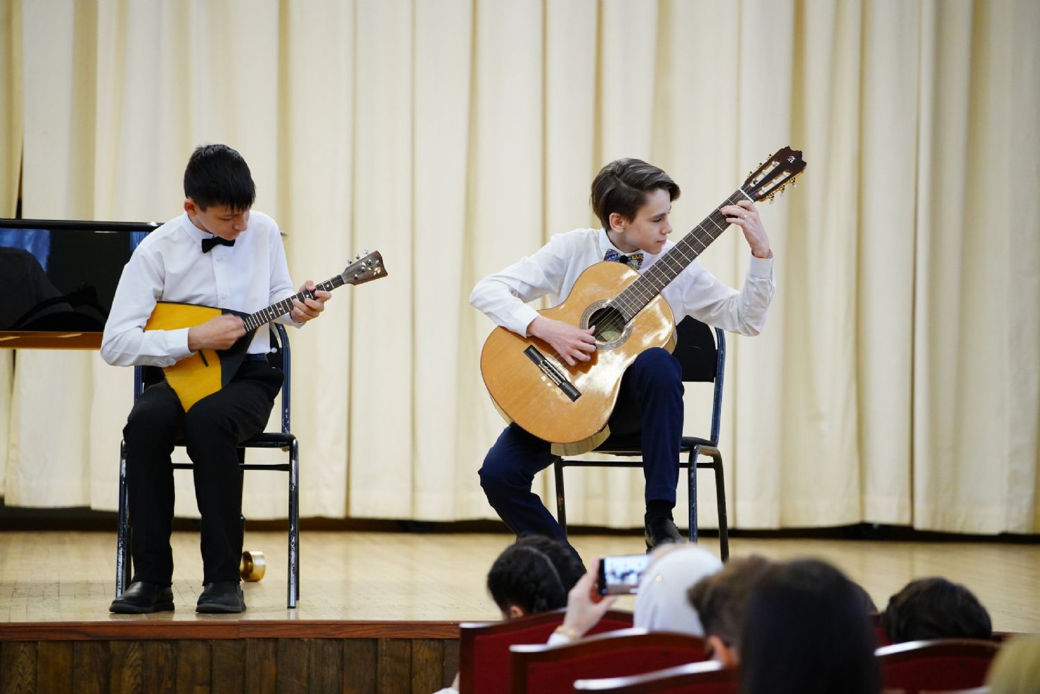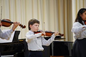 Музыкальная программа началась с выступления сводного детского хора из учащихся Национальной гимназии искусств и воспитанников воскресной школы храма иконы «Всех скорбящих Радость». Далее свои выступления представили ансамбли, солисты и хоровые коллективы студентов и преподавателей факультета академической музыки колледжа. Порадовали зрителей и артисты музыкального проекта «Русская песня» и ансамбля народной песни «Жар-птица».
